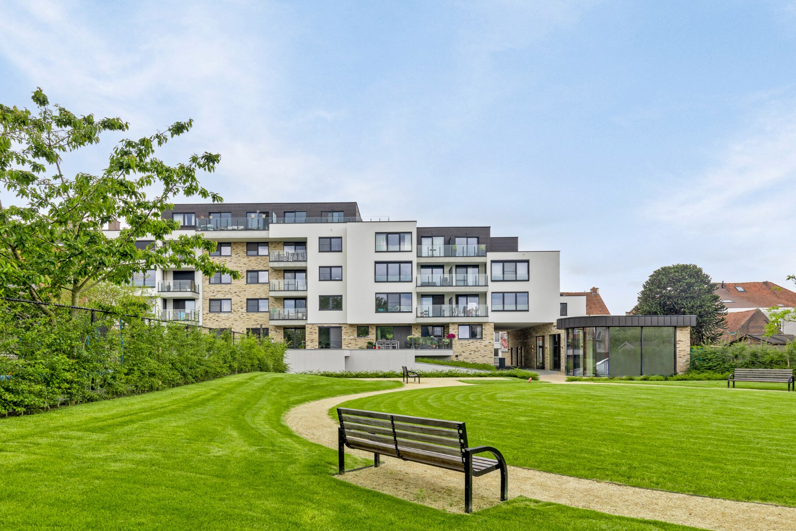 De grote, groene tuin is het paradepaardje van dit unieke woonconcept. U kan er zalig genieten van de wandelpaden en de petanquebaan.