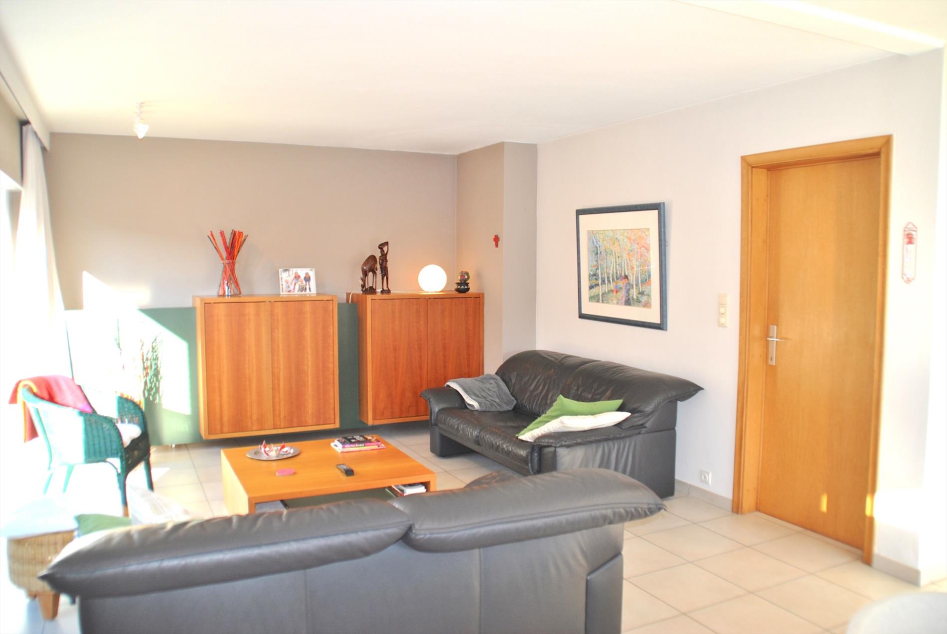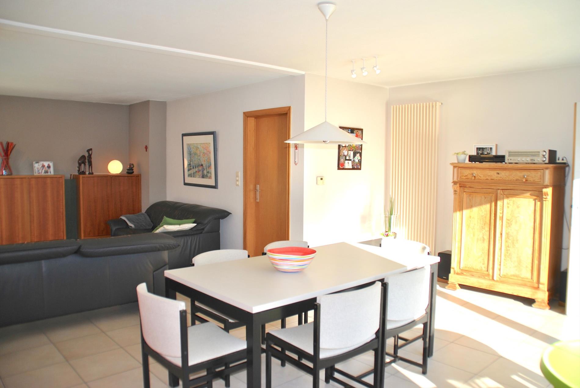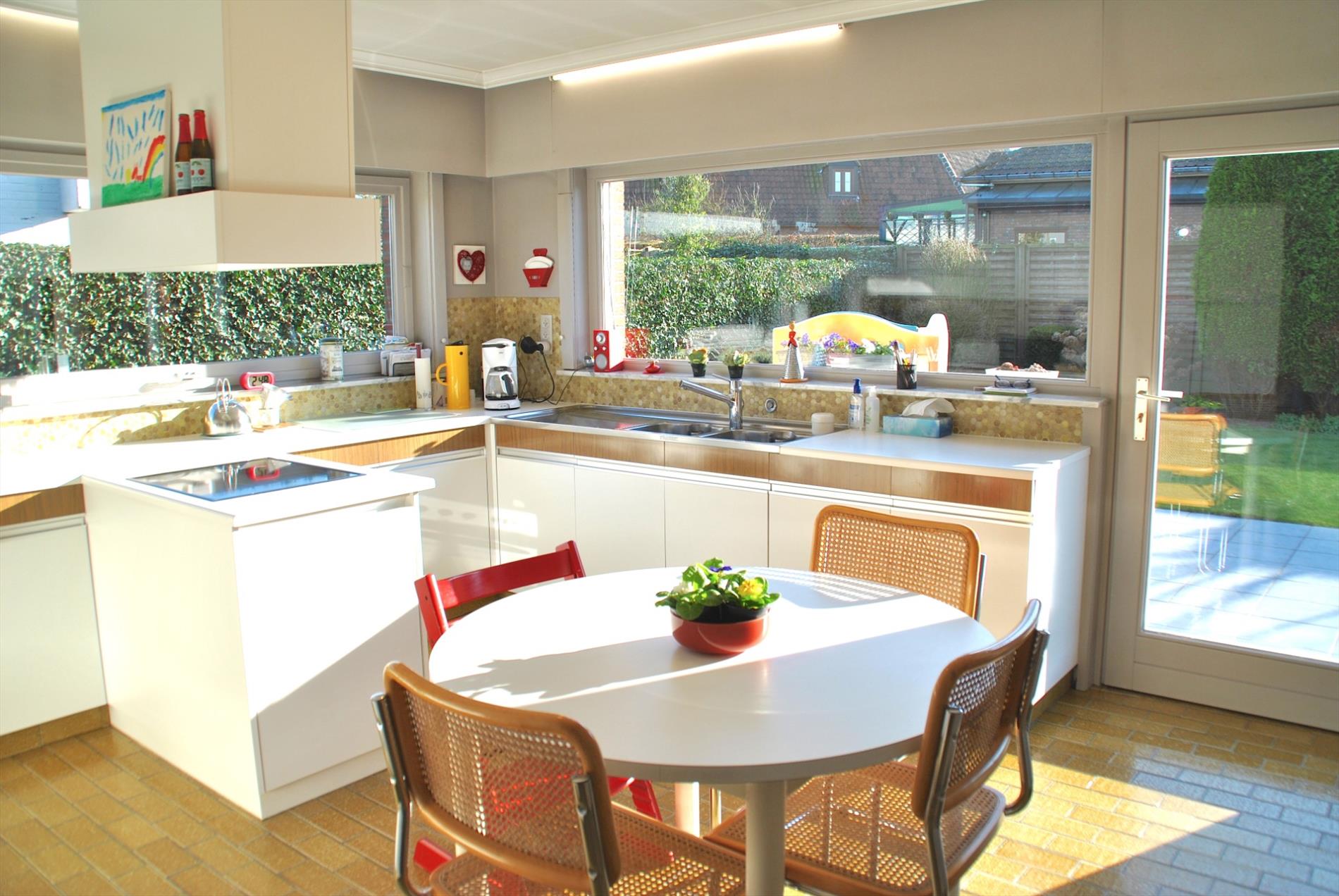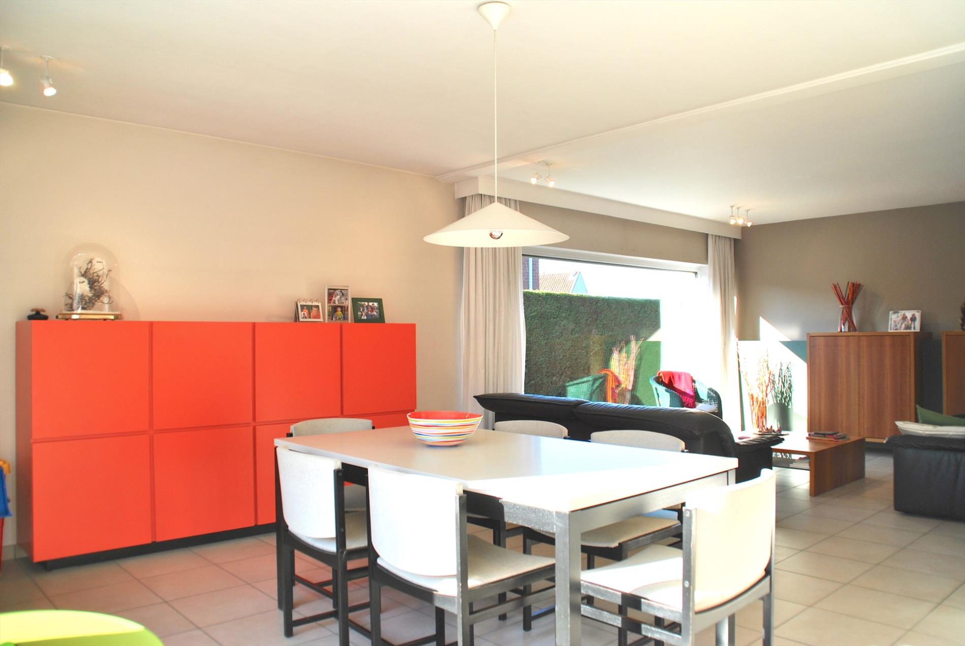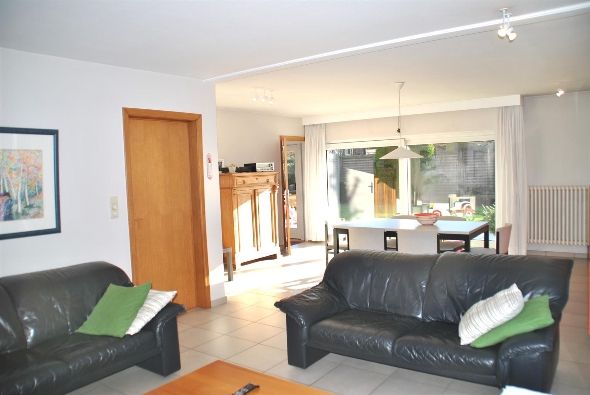De living is ruim en baadt, door de grote glaspartijen, de volledige dag in het zonlicht. Aansluitend is er een ruime, enorm gezellige keuken. Vanuit de living en de keuken hebben we toegang tot de zuid-tuin. Deze onderhoudsvriendelijke tuin is de perfecte plaats voor wie graag van de zon geniet!