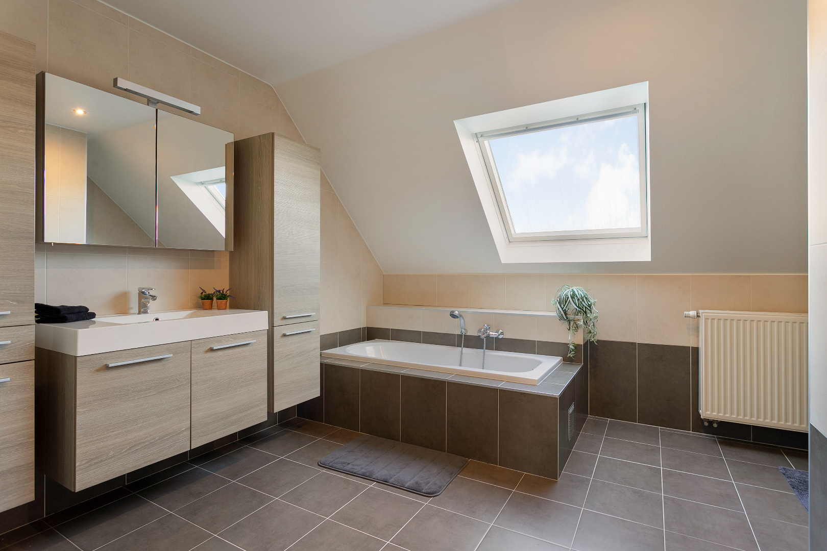 Op de bovenverdieping zijn er 4 mooie, uiterst grote kamers. De badkamer beschikt over een lavabo, douche, bad en toilet.