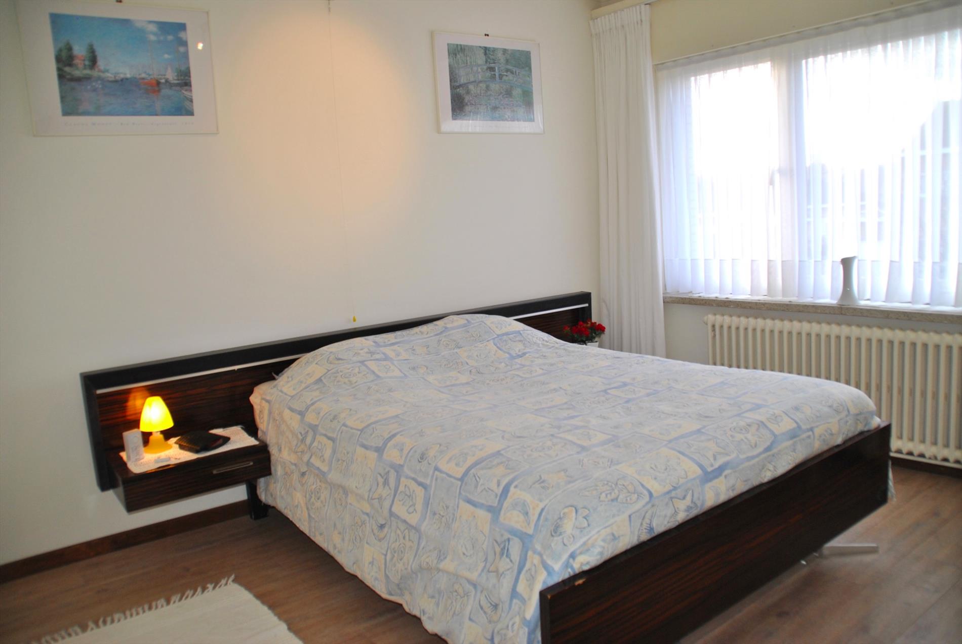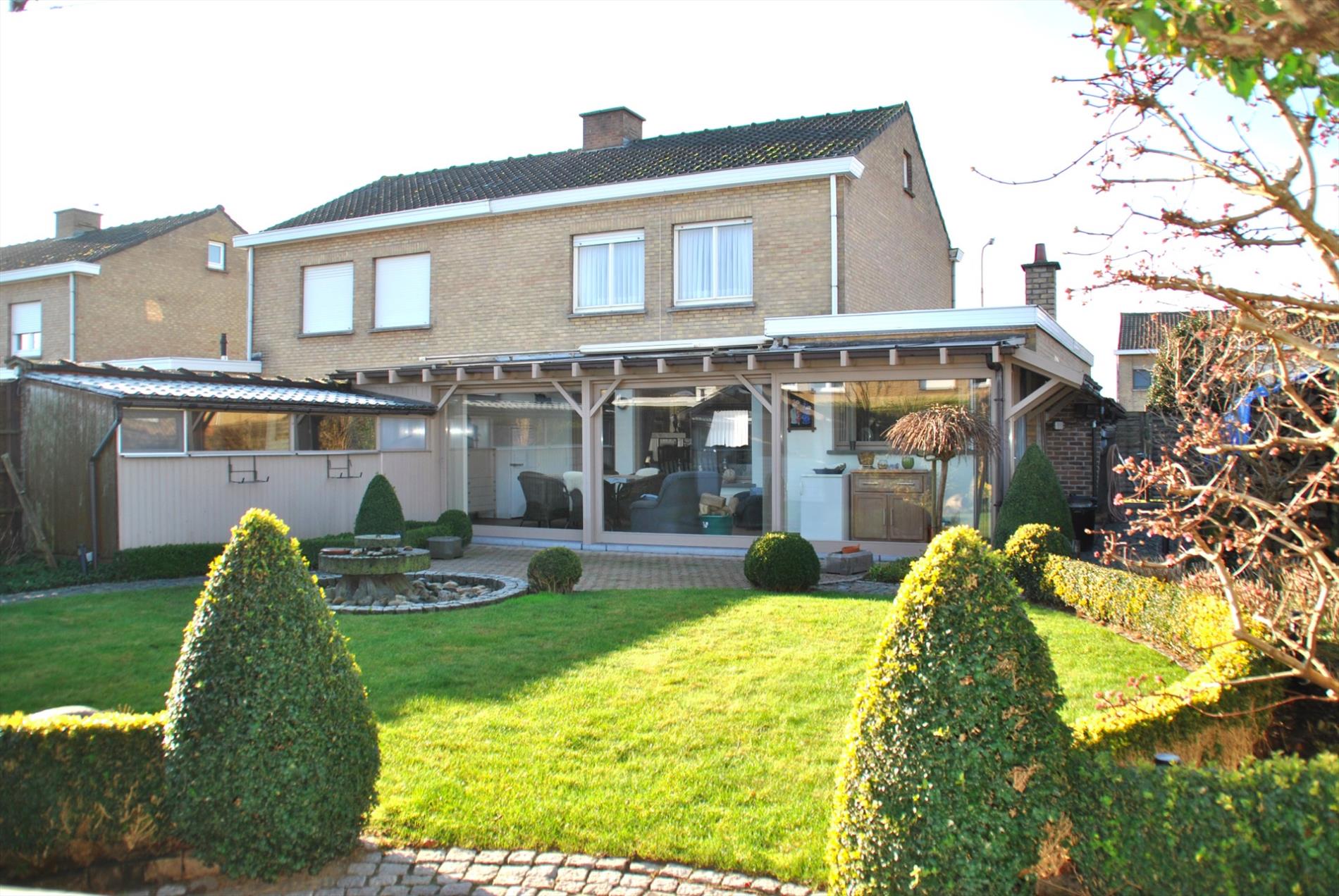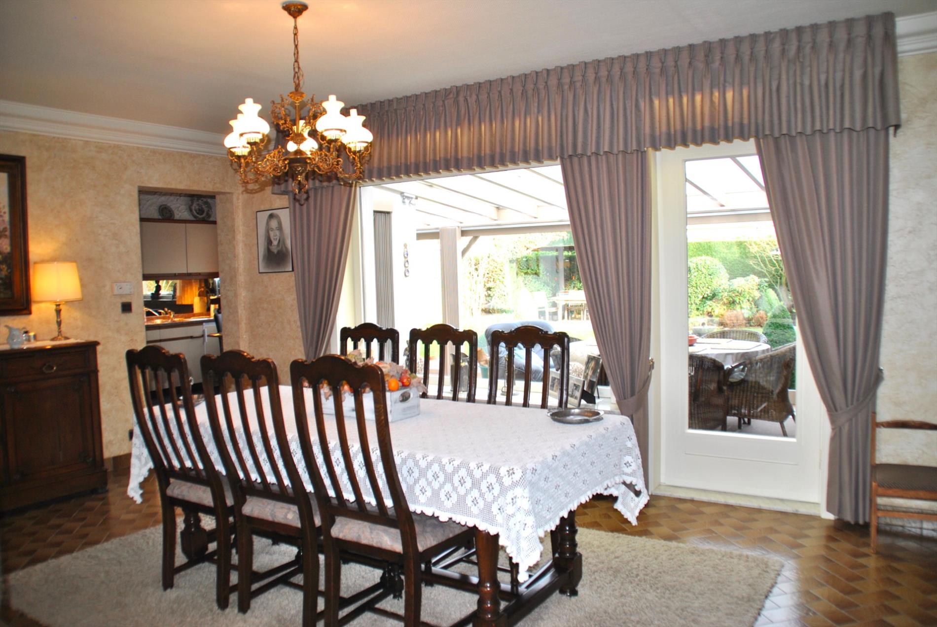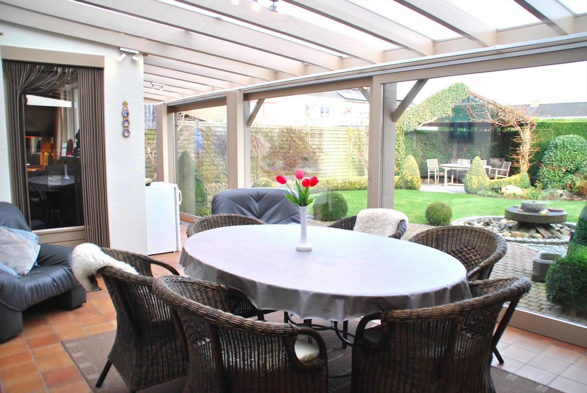 Bij het binnenrijden van de wijk merken we meteen het rustige karakter van deze aangename buurt. We komen de woning binnen in de hal met apart toilet om verder te gaan naar de living. Deze is door de L-vorm en houtcassette heel gezellig en zeer lichtrijk. Er paalt een grote veranda aan de leefruimte. Van hieruit hebben we een mooi zicht op de gezellige tuin.