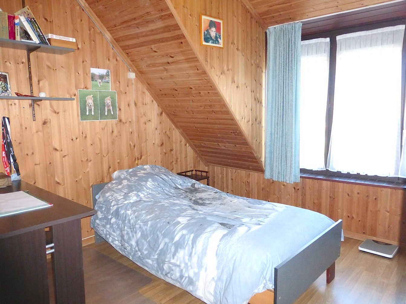 De verdieping beschikt over 3 slaapkamers, waarvan 1 ruime en 2 kleinere. Via een uitschuiftrap kunnen we naar de bergzolder.