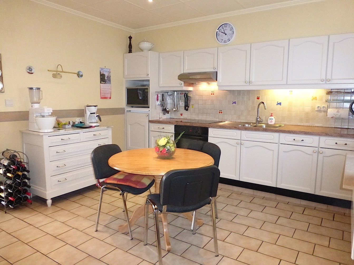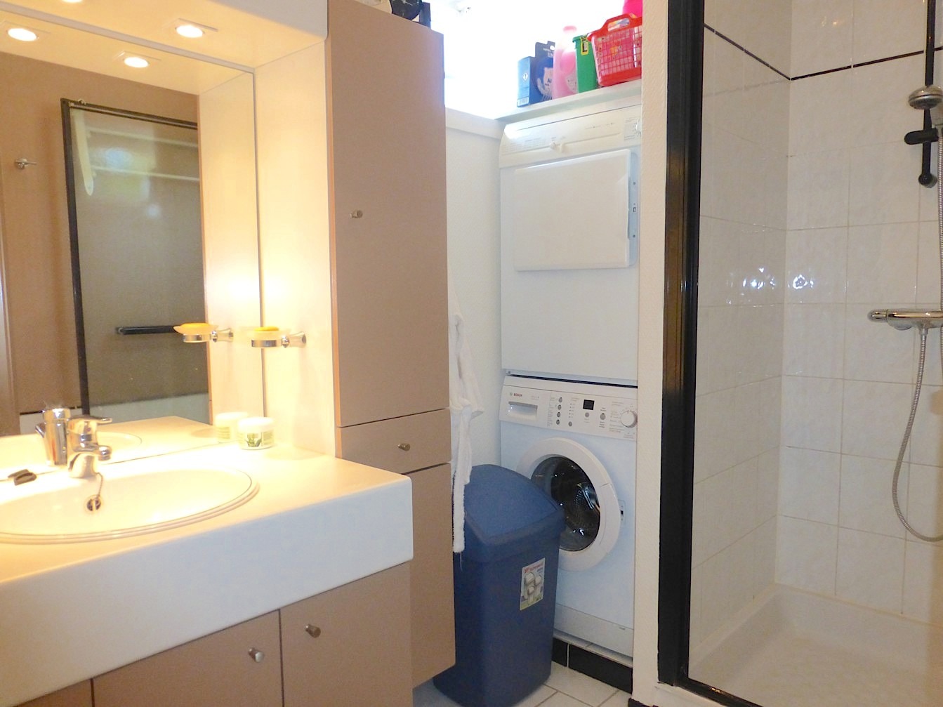 We betreden de woning in de leefruimte met open keuken. Het geheel is ingericht met een leuke zithoek, eetkamer en een volledig ingericht keuken. De gashaard zorgt voor een gezellige toets. Op de benedenverdieping vinden we tevens een handige berging, apart toilet en de badkamer met lavabo en douche. Er is tevens plaats voor een wasmachine.