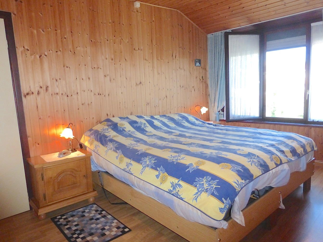 Overal houten ramen met dubbele beglazing en rolluiken.