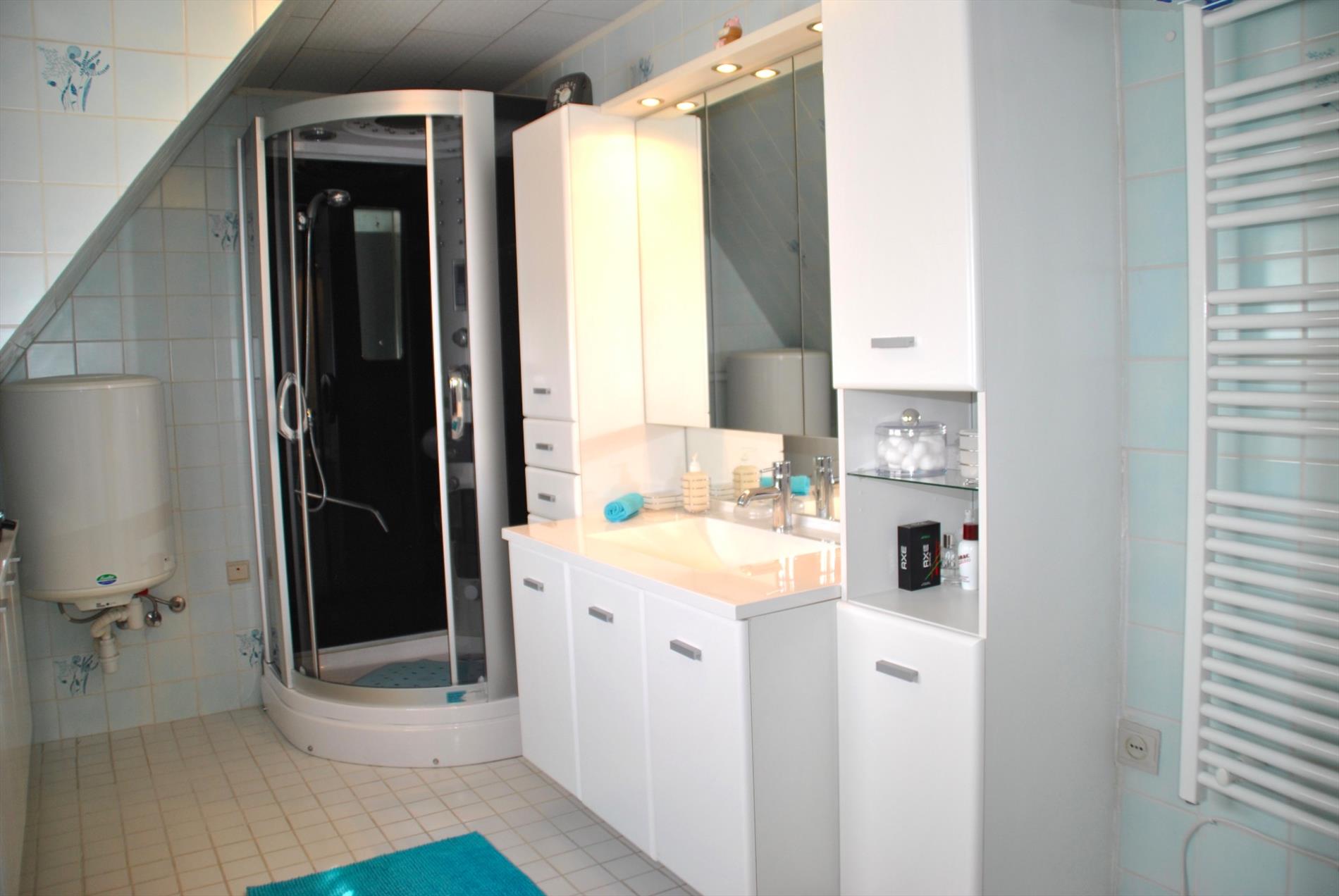 De bovenverdieping beschikt over 3 slaapkamers, een badkamer en ruime nachthal. In de badkamer is er een lavabo, douche en toilet.