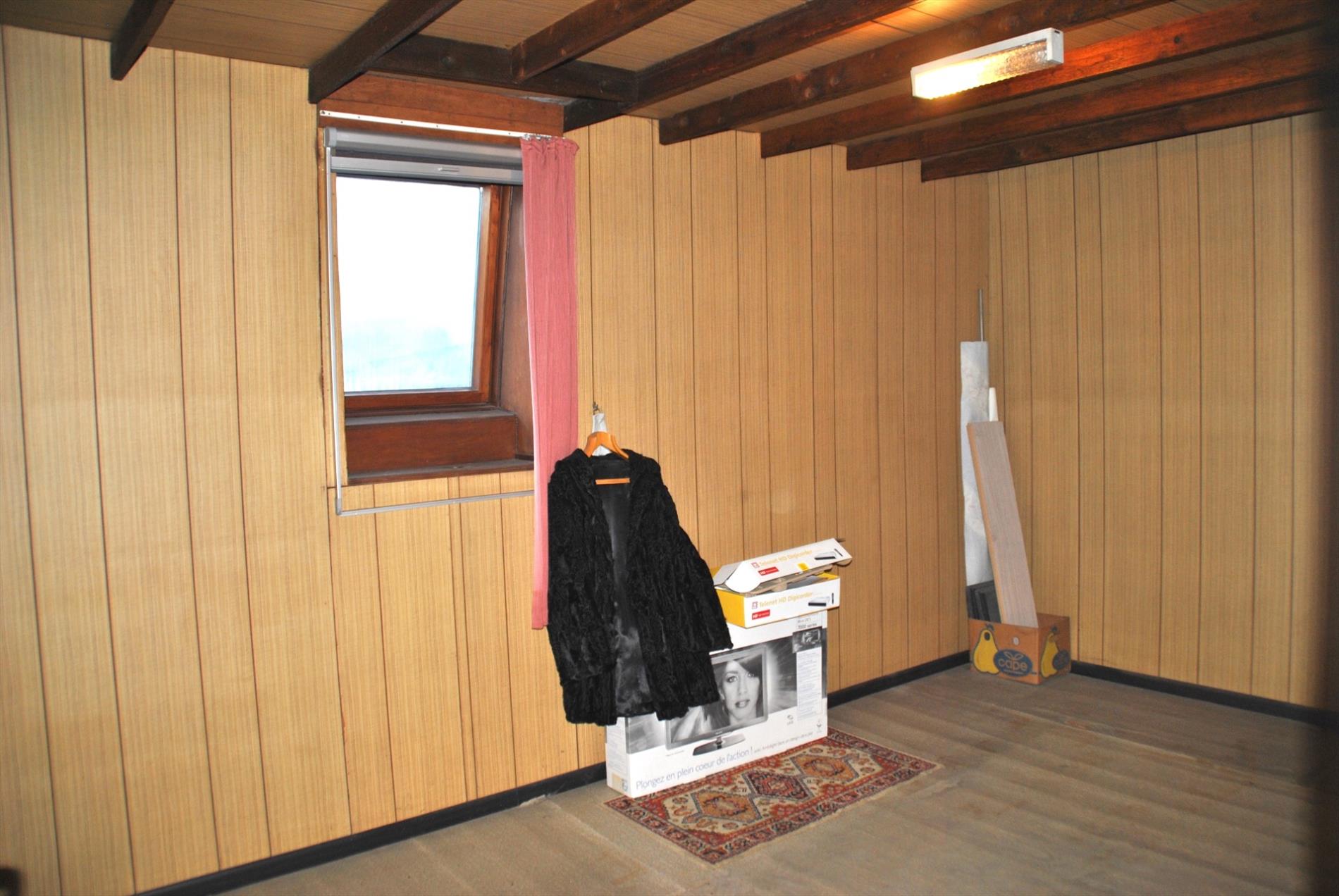 We stappen het huis binnen via de inkomhal met toegang naar de bovenverdieping en de ‘voorplaats’ langs de straatzijde. Aansluitend hebben we de leefruimte met keukentje. Boven vinden we 2 slaapkamers terug.