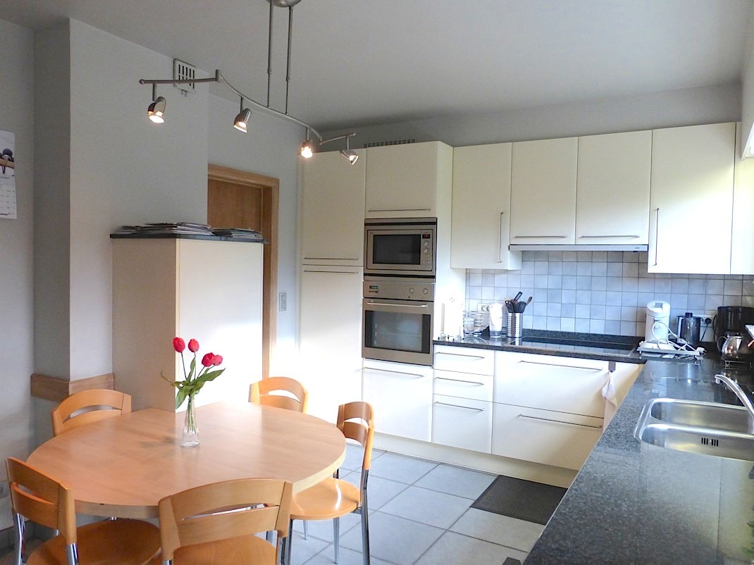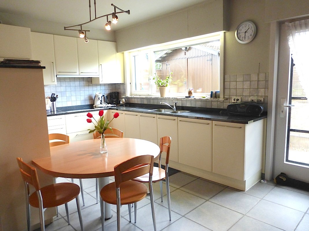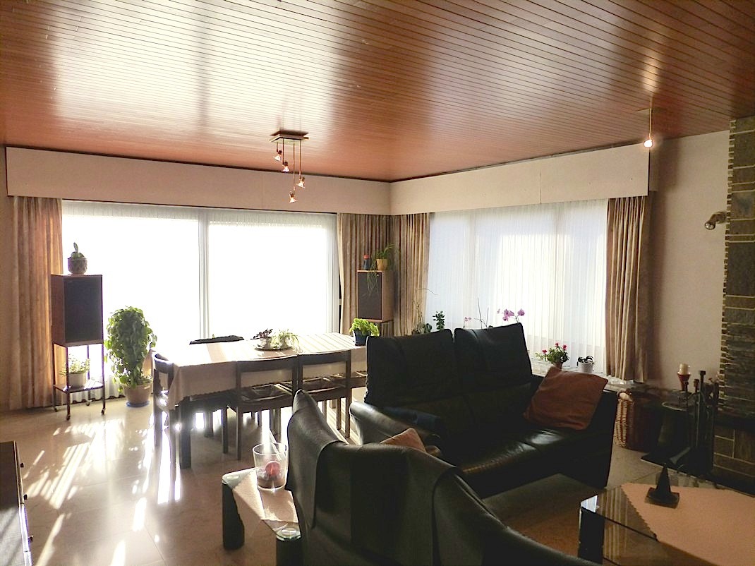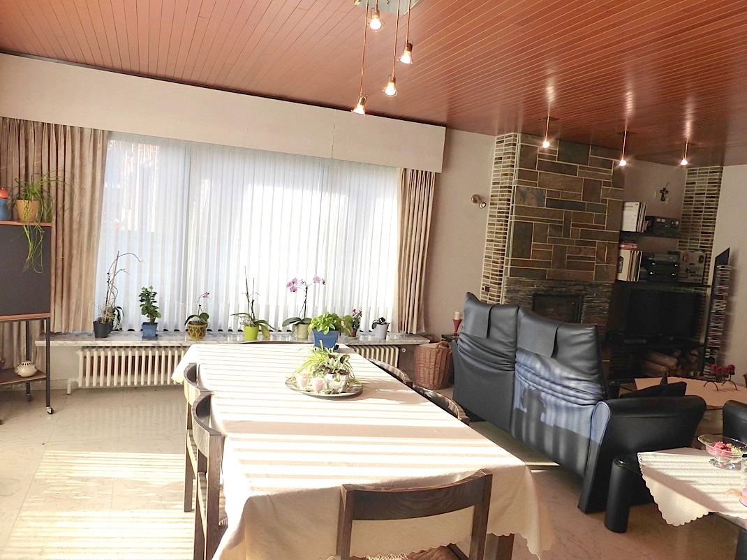De living is ruim, lichtrijk en oa door de cassettehaard zeer gezellig... Aansluitend is er de vernieuwde keuken, die voorzien is van alle nodige toestellen. Zowel vanuit de keuken als de living hebben we toegang tot de aangename zuid tuin met groot tuinhuis. Het is er gans de dag genieten van de zon in alle privacy!