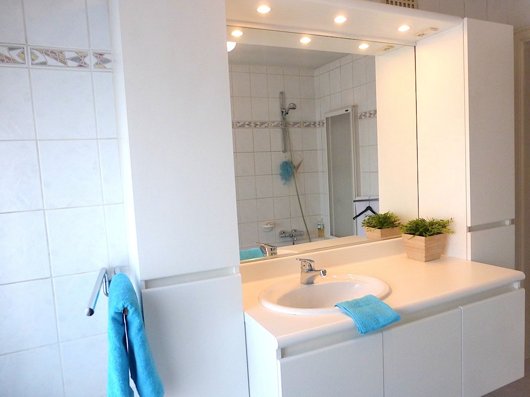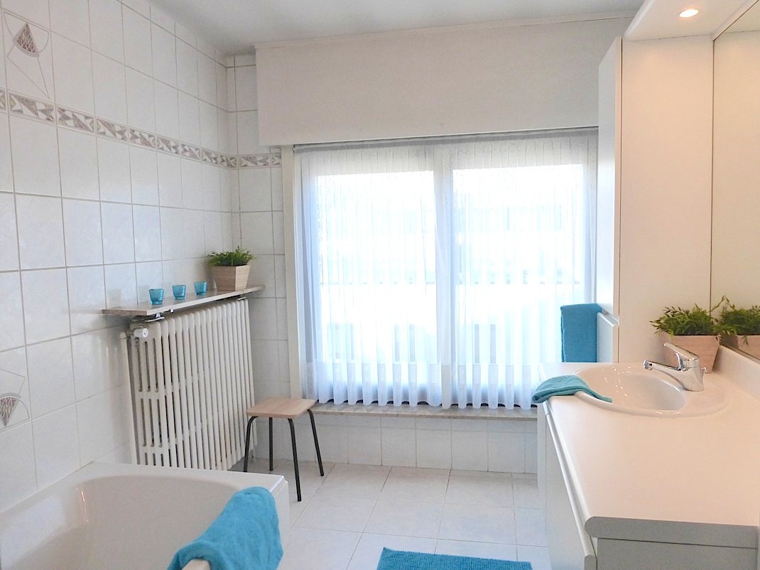 De verdieping beschikt verder over 3 volwaardige slaapkamers en een mooie badkamer, ingericht met een ligbad en lavabomeubel. Het toilet is apart. We vinden er tevens een handige zolder.
