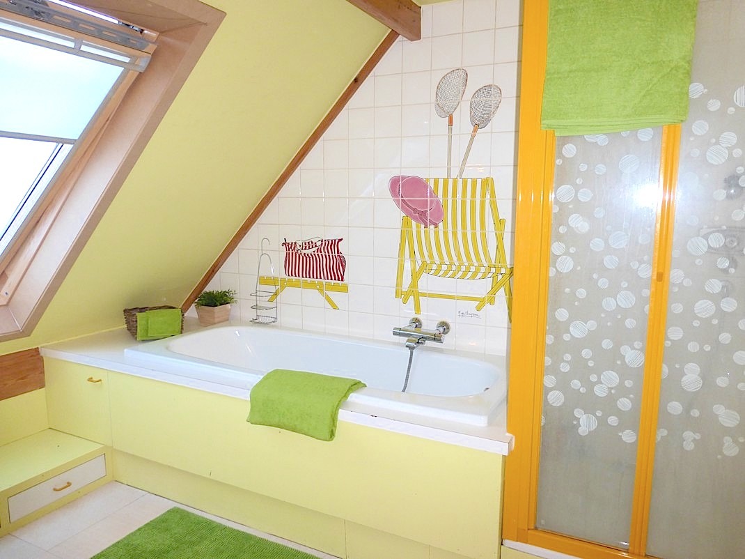 De eerste verdieping beschikt over 3 slaapkamers, een berging en badkamer met lavabomeubel, ligbad, douche en toilet.