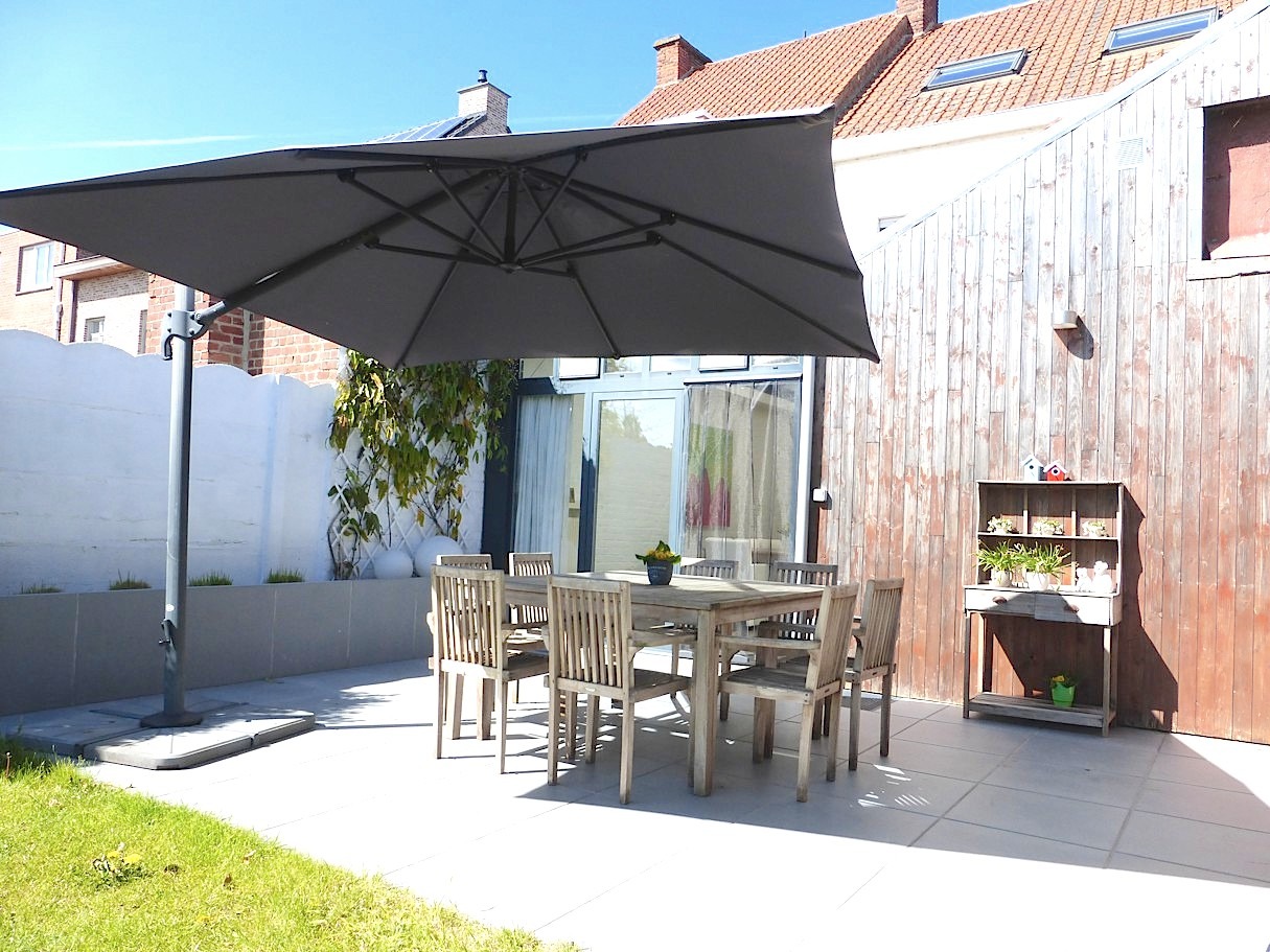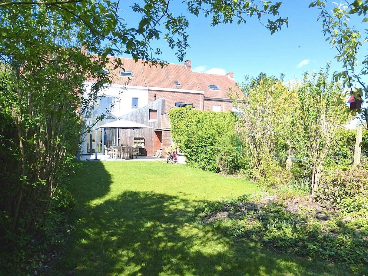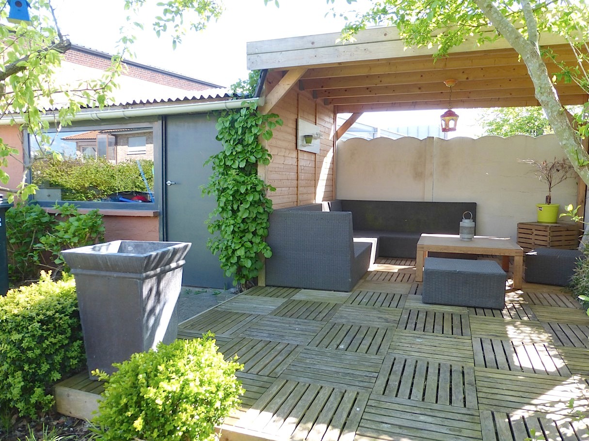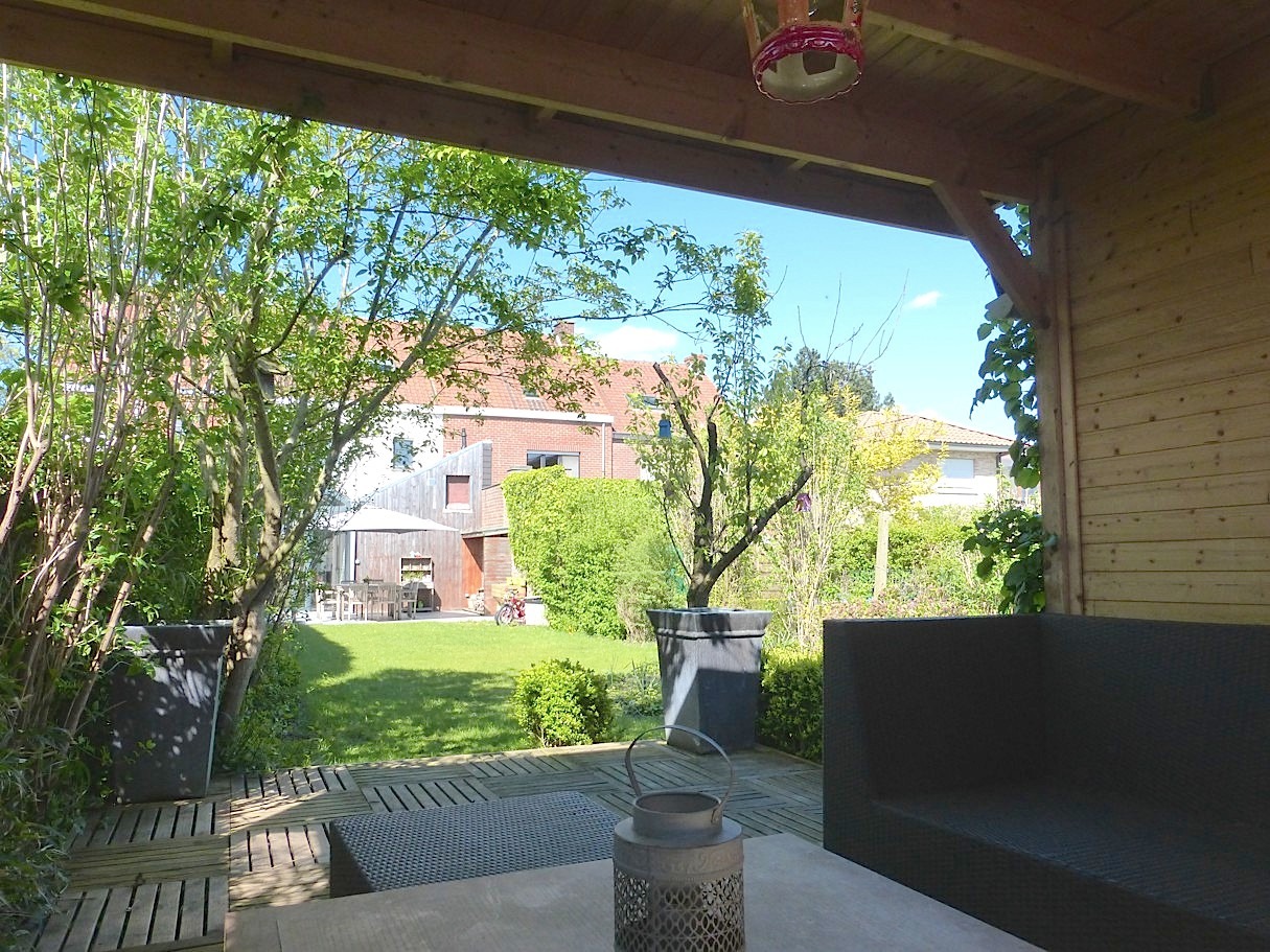 Vanuit de veranda hebben we een zicht op de zeer fraaie zuidtuin met terras. Achteraan is er een lounge hoek ingericht bij het tuinhuis. Er is geen inkijk, rust en altijd zon!