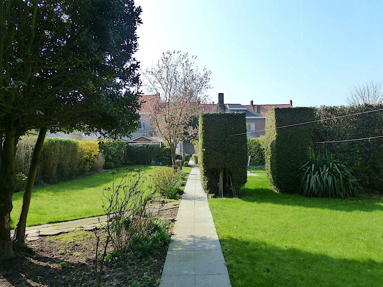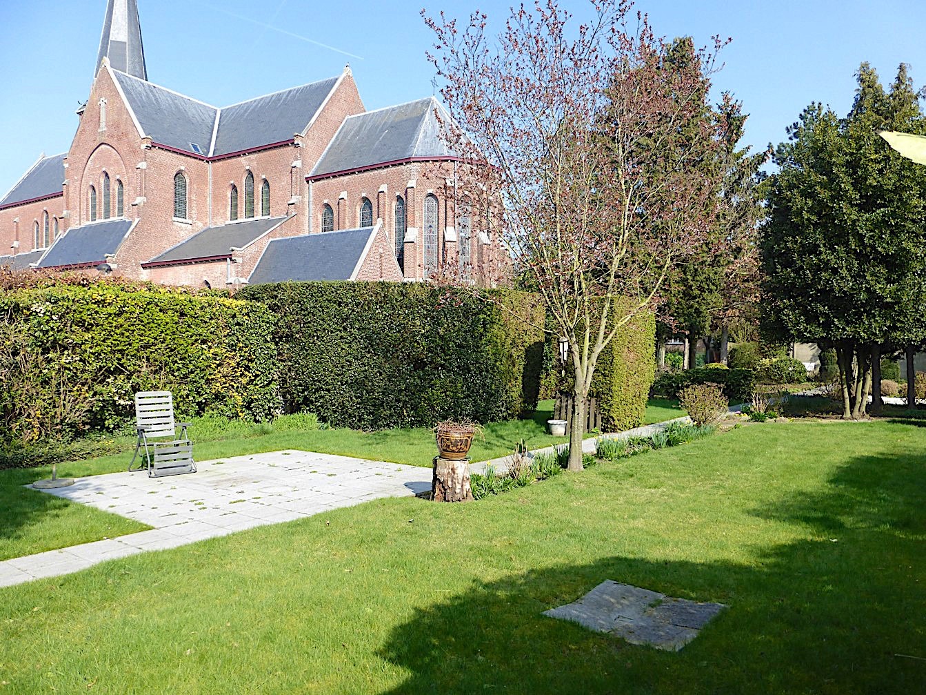 Bij het buitengaan achteraan komen we in een andere wereld terecht... De pittoreske bijgebouwen, de prachtige grote tuin en gezellige hoekjes maken dit eigendom tot iets uniek! De tuin reikt tot aan het gemeenteplein aan de achterkant van de kerk. Via de poort langs de straat is er een doorgang naar achteren, waardoor de tuin rechtstreeks bereikbaar is.
