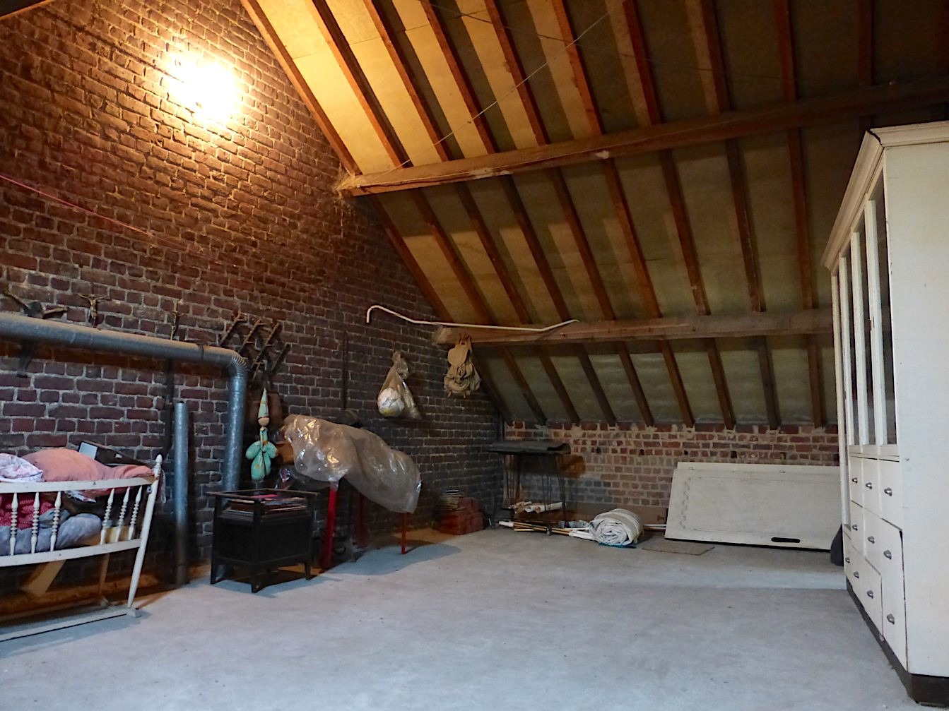 Achter deze aantrekkelijke gevel vinden we de ene verrassing na de andere. We komen binnen in de leefruimte met mooie trap naar boven. Erachter is er een eetkamer met beperkte keuken. Er is tevens een toilet op het gelijkvloers. De eerste verdieping beschikt over 3 kamers, een badkamer en toilet. Via een vaste trap kunnen we naar de ruime zolderverdieping, waar er nog mogelijkheden zijn om de woonst verder uit te breiden.