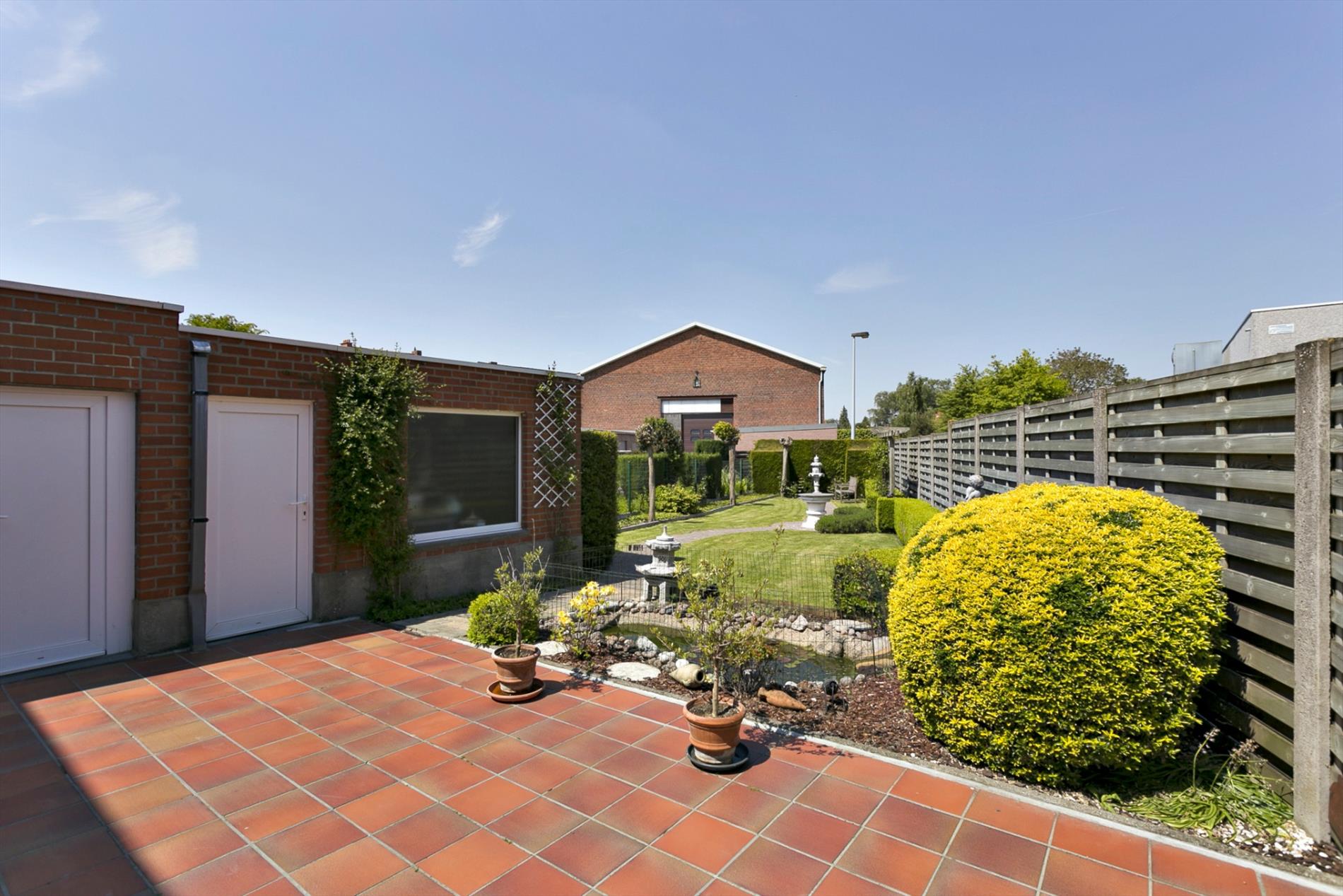 Buiten hebben we vanop het terras zicht op de mooie tuin. Een handige berging biedt voldoende bergruimte. De tuin is eveneens bereikbaar via een zij-ingang. Dit is superhandig voor laden en lossen, klussen in de tuin, …