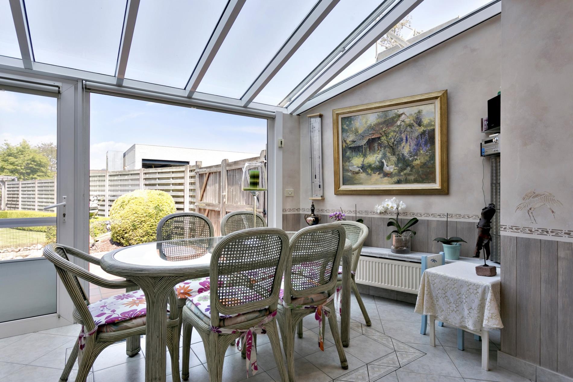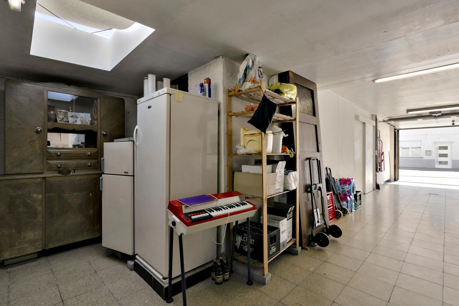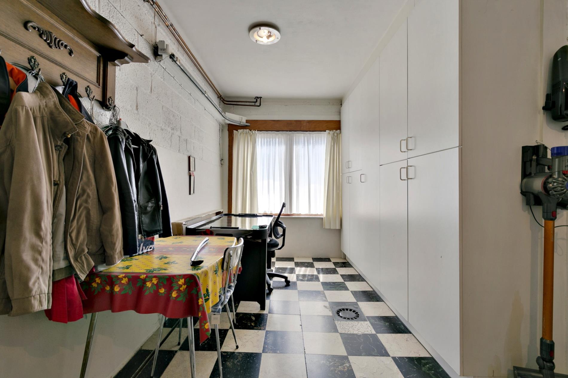 Achter de mooie gevel schuilt dit gezellig eigendom. De living is ruim en lichtrijk dankzij de grote raampartijen. In de leefruimte is een schouw zodat er perfect een cassette of haard kan worden geïnstalleerd. Dit zorgt voor een extra gezellige toets. De woonkamer gaat naadloos over in de veranda met eethoek en zicht op de tuin. Aanpalend is een grote keuken met eveneens zicht op buiten. Vanuit de keuken treffen we een heel grote, naastgelegen berging/wasplaats. Hier is er ook een eerste badkamer met toilet, douche en lavabo. Naast deze berging bevindt zich een heel ruime garage met elektrische sectionaalpoort. Deze garage bevindt zich onder de bovenverdieping van de naastgelegen woning maar is bereikbaar vanuit de woning. Deze garage loopt helemaal door te achteraan en geeft eveneens toegang tot de tuin.