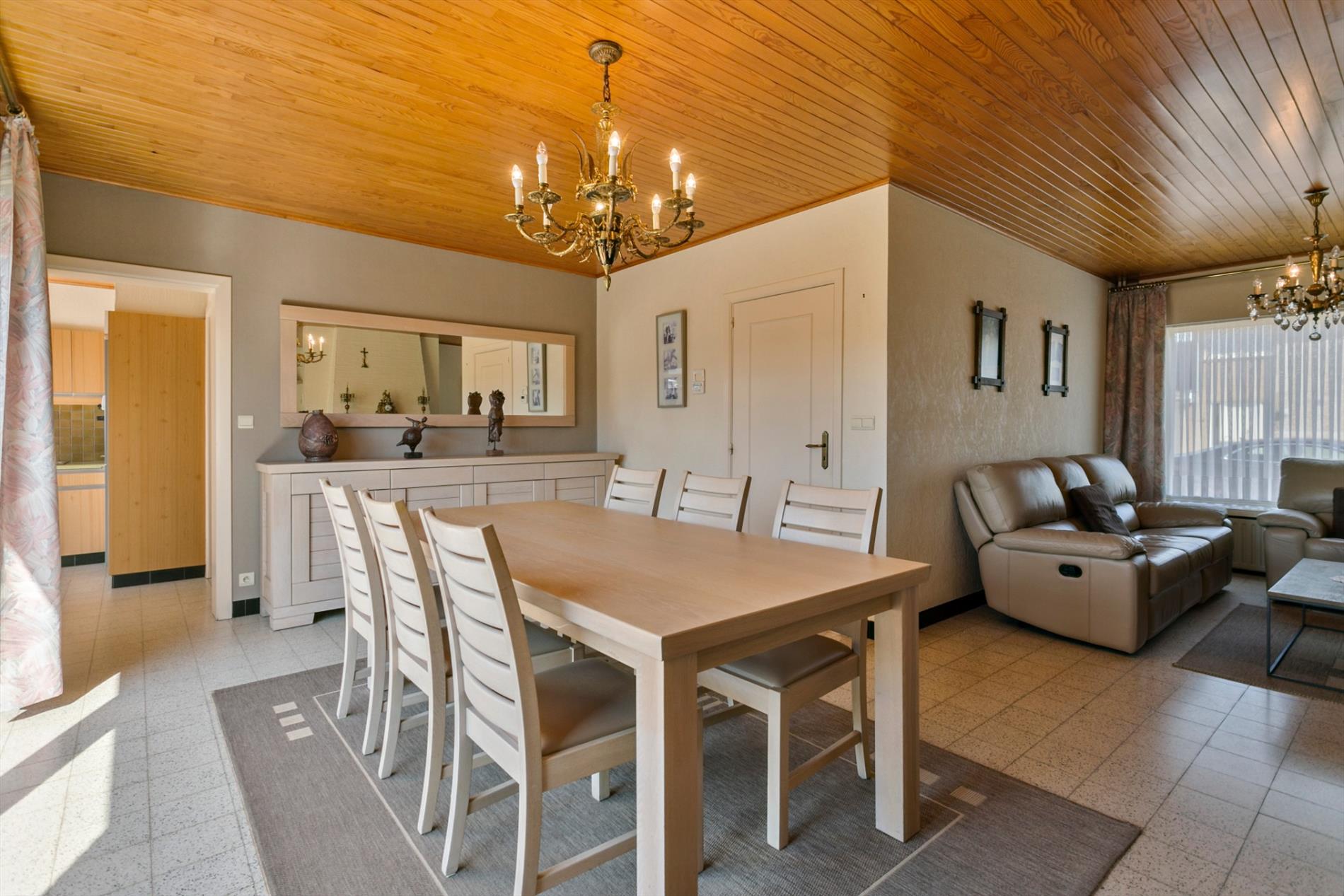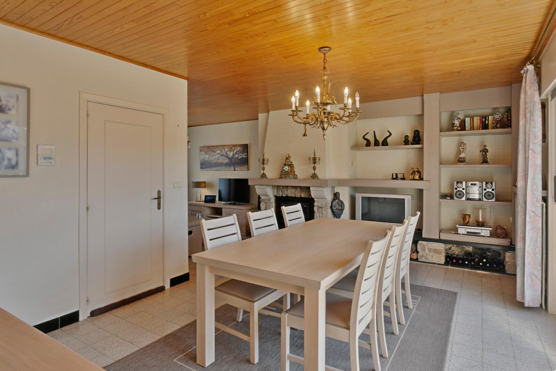 Bij het binnenrijden van de wijk merken we meteen het rustige karakter van deze aangename buurt op. We parkeren de wagen op de oprit en komen de woning binnen in de stijlvolle hal met apart toilet om verder te gaan naar de living. Deze is door de L-vorm gezellig en zeer lichtrijk. Er is ook een houtkachel voor de extra gezellige noot. Van hieruit hebben we een zicht op de zuidgerichte tuin.