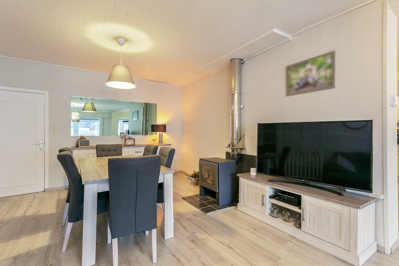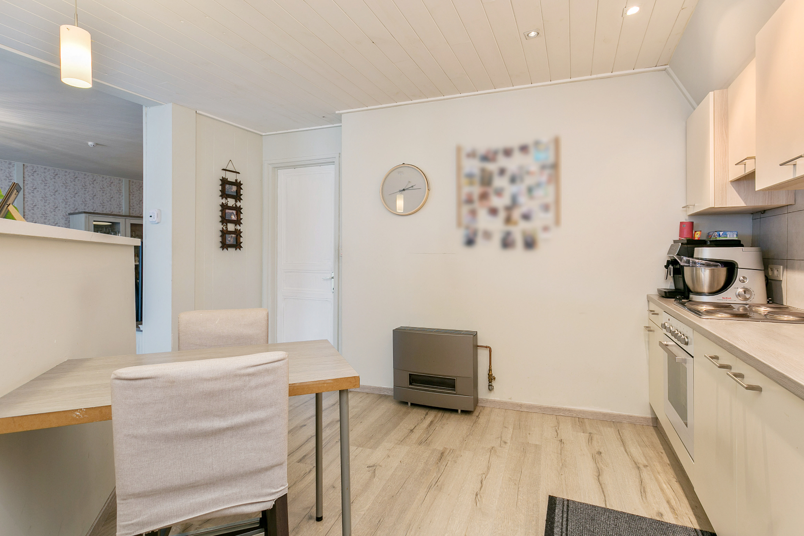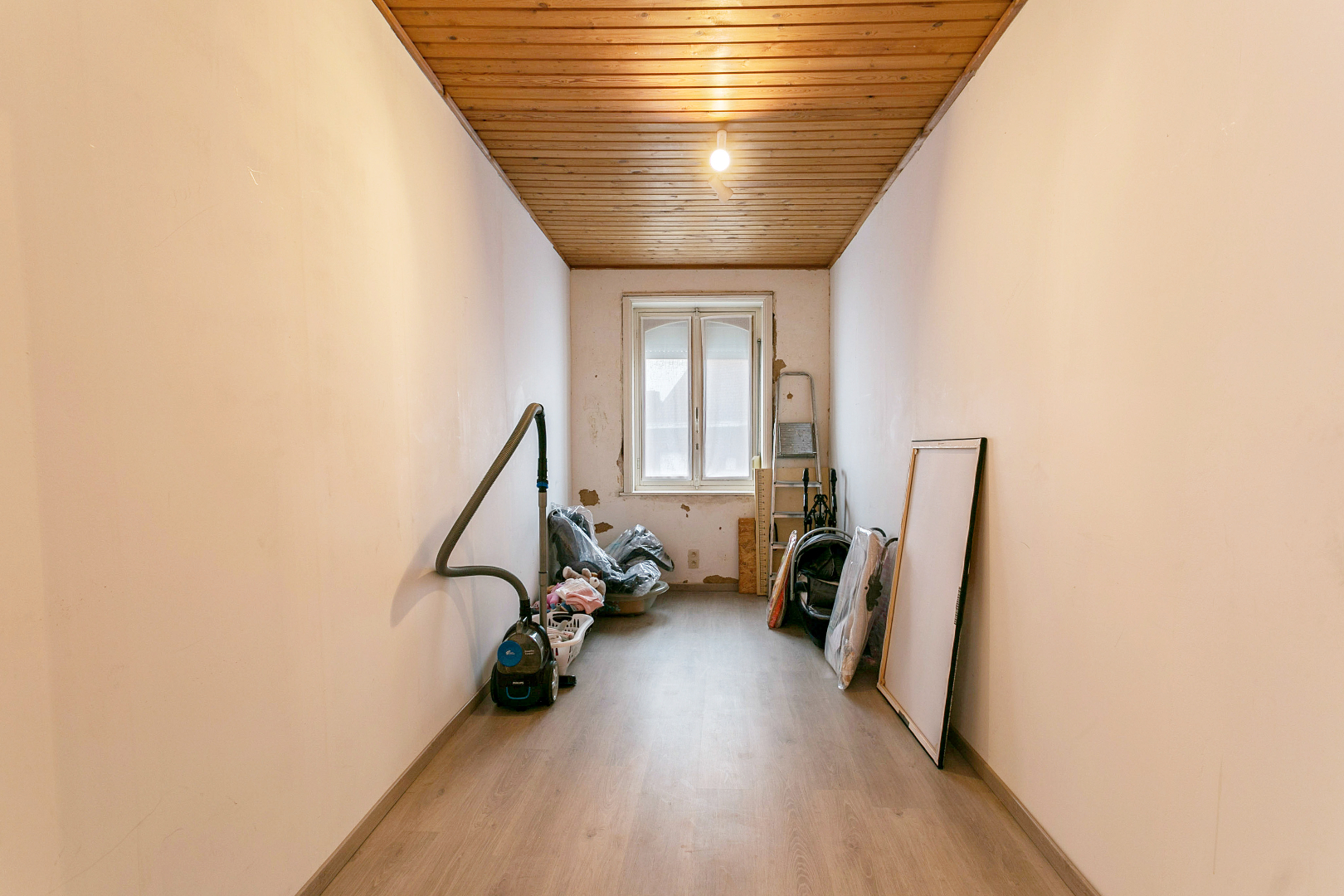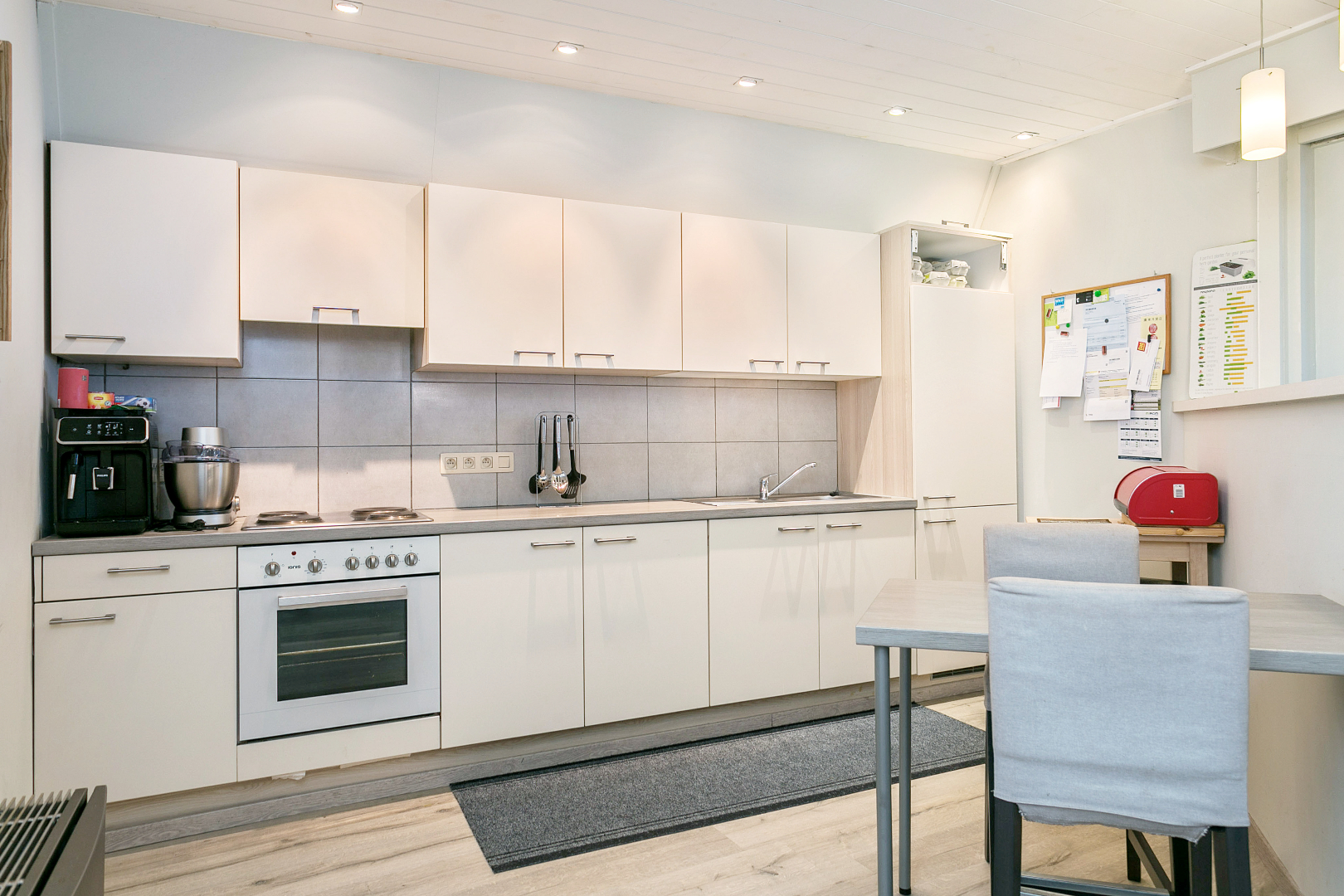 Vanuit de handelszaak kunnen we ook naar het woongedeelte. Maar het woongedeelte is ook rechtstreeks toegankelijk via de garage met sectionale poort. De woning is momenteel verhuurd maar komt binnenkort vrij.