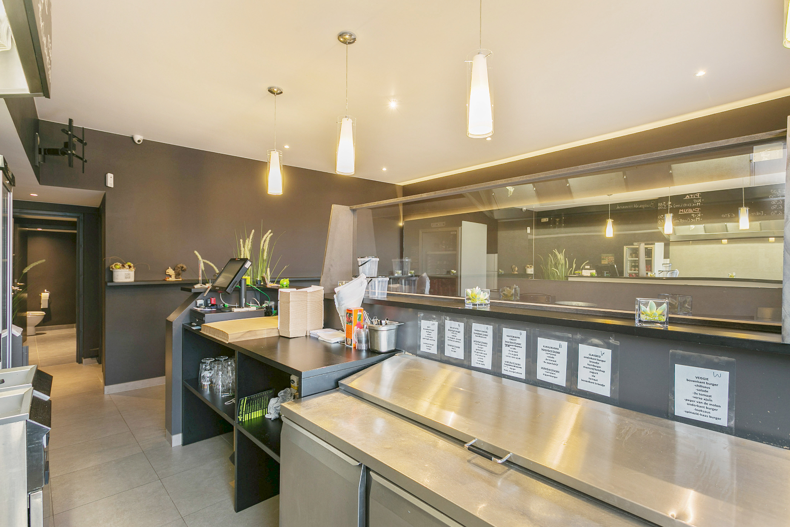 Werkelijk in het centrum van Lauwe treffen we deze mooie zaak. Momenteel wordt deze uitgebaat als pita-/pasta-/burgerzaak. Uiteraard kan u dit pand ook een andere bestemming geven. De horecazaak bestaat uit een verbruiksgedeelte en toog met inboedel. Achteraan is er een sanitair blok bestaande uit 2 toiletten met lavabo. Er is eveneens een berging die ook kan worden omgevormd tot keuken. In de droge kelder is er veel bergruimte. De zaak wordt verkocht met de aanwezige inboedel : tafels, stoelen, toog, friteuses, bakplaten, frigo, …. Klaar om meteen te starten dus!