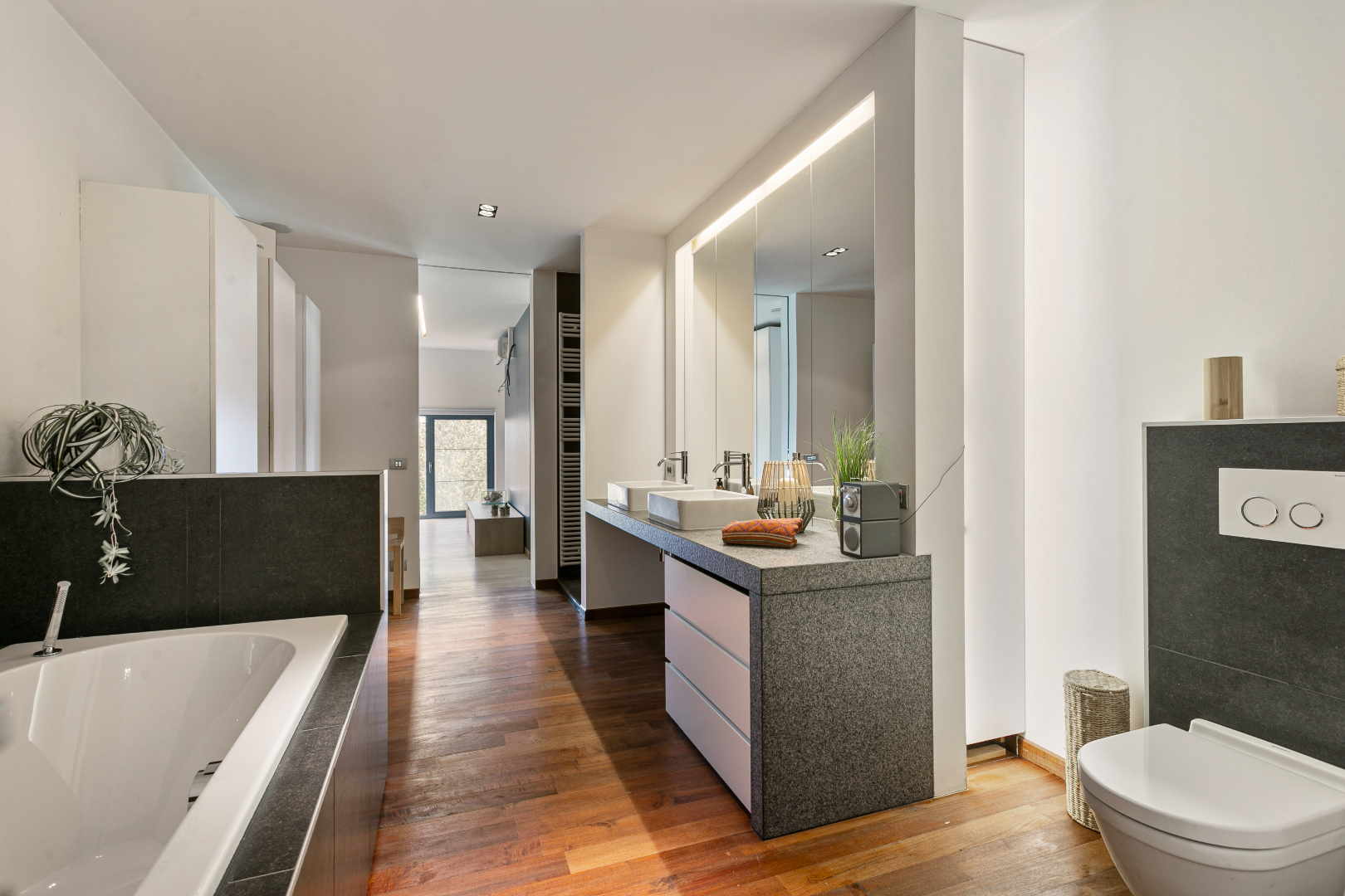 Deze parel is uitgerust met domotica, airconditioning, zonnepanelen met groenestroomcertificaten en een alarminstallatie.