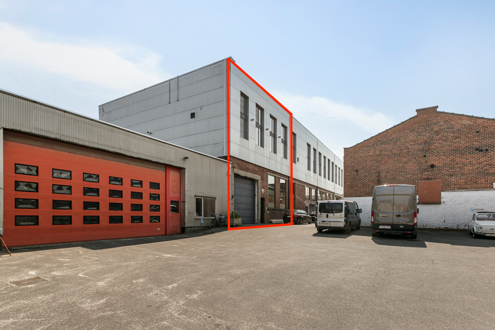 We vinden dit eigendom terug in het centrum op de oude ‘Solidor-site’. Via een private parking rijden we naar het pand. De wagen kunnen we voor de deur parkeren of ook binnenrijden door de 4 meter hoge poort in het atelier.