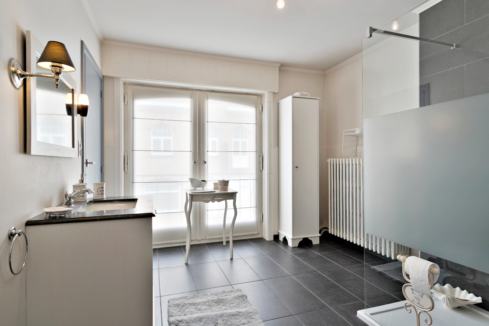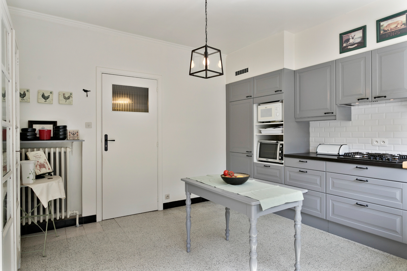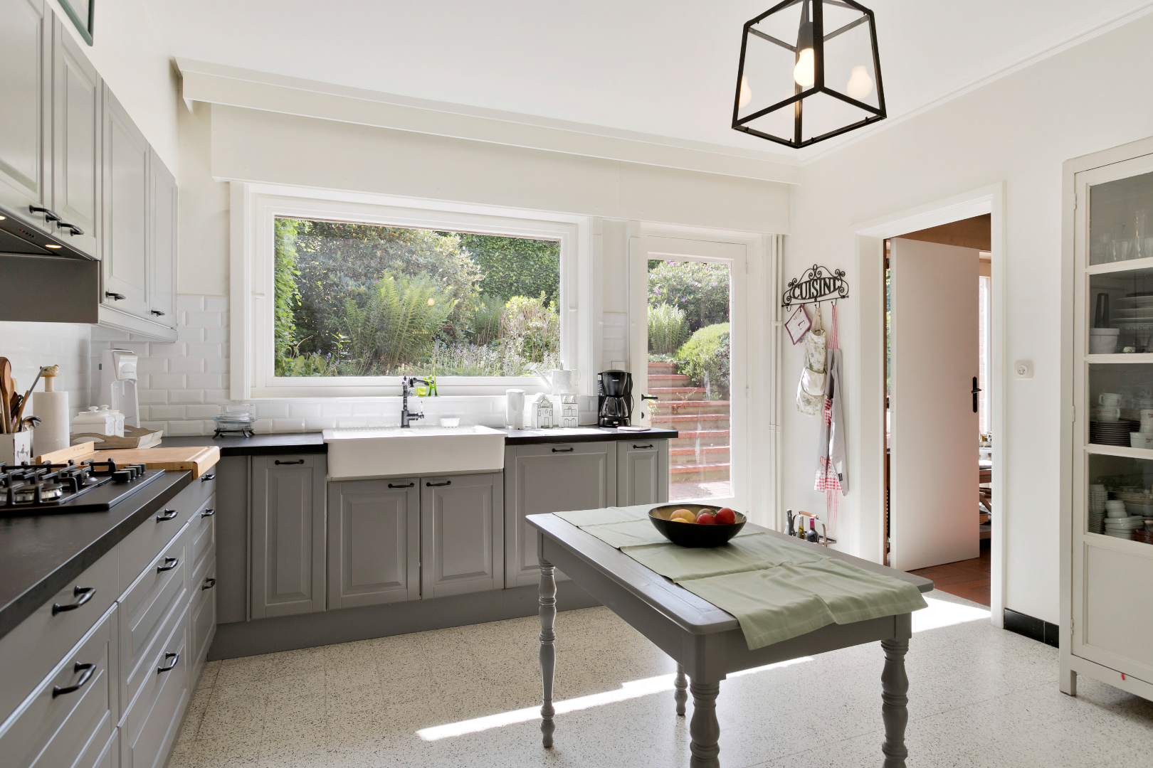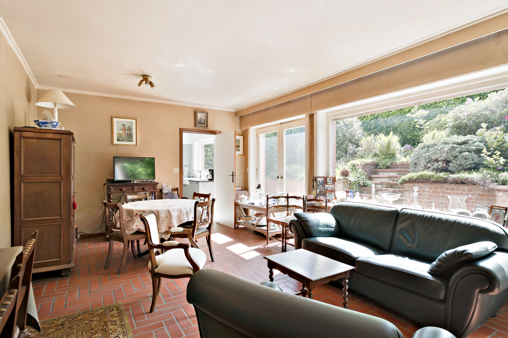 In het bruisende Lauwe vinden we dit karaktervol pand terug. De mooie inkomhal met indrukwekkende trap leidt ons naar alle ruimtes op de gelijkvloerse verdieping. Langs de straatzijde is er een aparte zitruimte of buro. Deze paalt aan de achtergelegen living. Het zou dus mogelijk zijn om een opening te maken en deze ruimtes samen te voegen tot één grote leefruimte. Langs de voorzijde is er ook nog een kleine wachtruimte/buro en gastentoilet. De leefruimte achteraan is heel lichtrijk en kijkt uit op de kleine maar gezellige stadstuin. Daarnaast vinden we er de ruime, gerenoveerde keuken. Er is ook nog een garage met elektrische sectionaalpoort.
