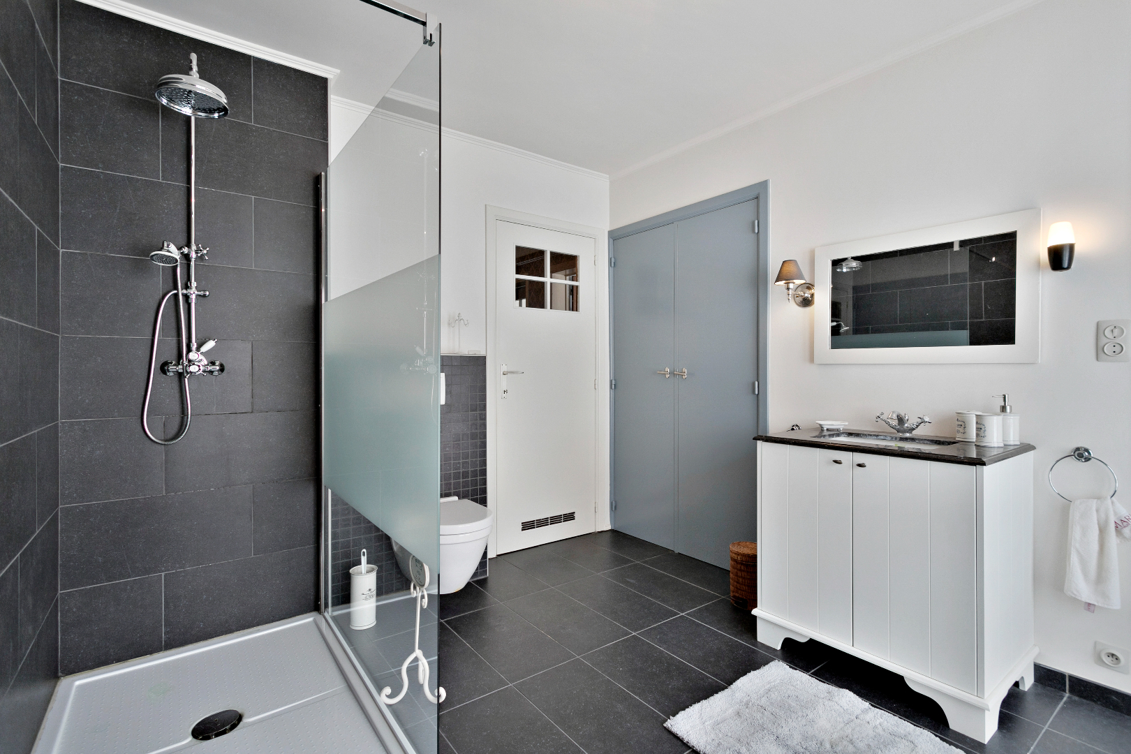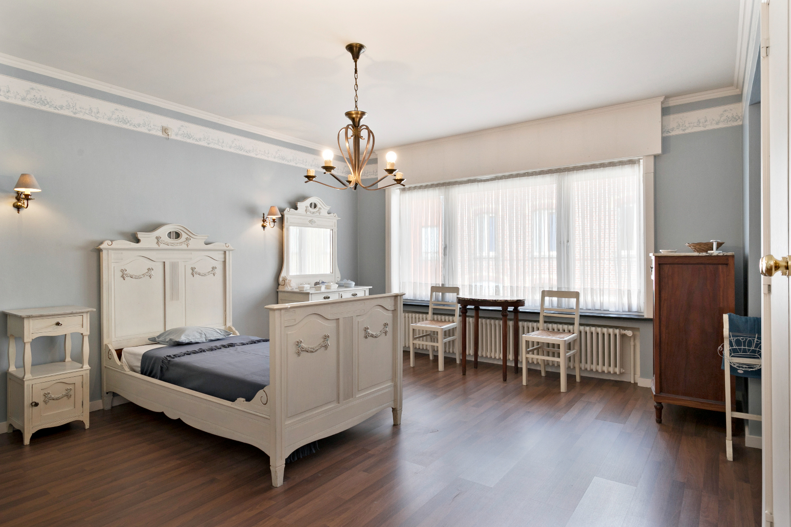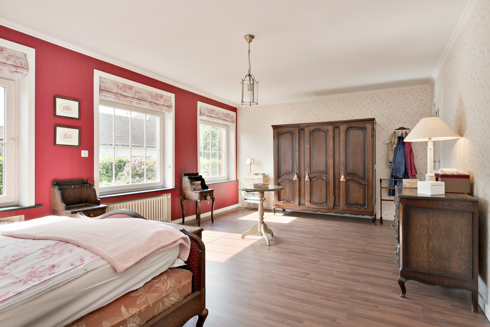 De nachthal boven straalt klasse uit. Langs de voorzijde bevindt zich de grote, vernieuwde badkamer met toilet, grote inloopdouche en lavabo. De ingemaakte kasten bieden veel bergruimte. Langs de voorzijde is er nog een grote slaapkamer. Langs de achterzijde nemen we een kijkje in een uiterst smaakvol gerenoveerde kamer met mooie, vaste, blauwe bibliotheekkast. De ramen zijn hier vernieuwd. Naast deze kamer bevindt zich de master bedroom. Ook hier zijn de ramen vernieuwd. Alle kamers en de nachthal hebben een mooie laminaatvloer. Boven de garage bevindt zich nog een grote kamer die momenteel gebruikt wordt als berging. Van hieruit is er ook een valtrap naar de grote, niet-geïsoleerde zolder. Hier is nog een zee aan ruimte!