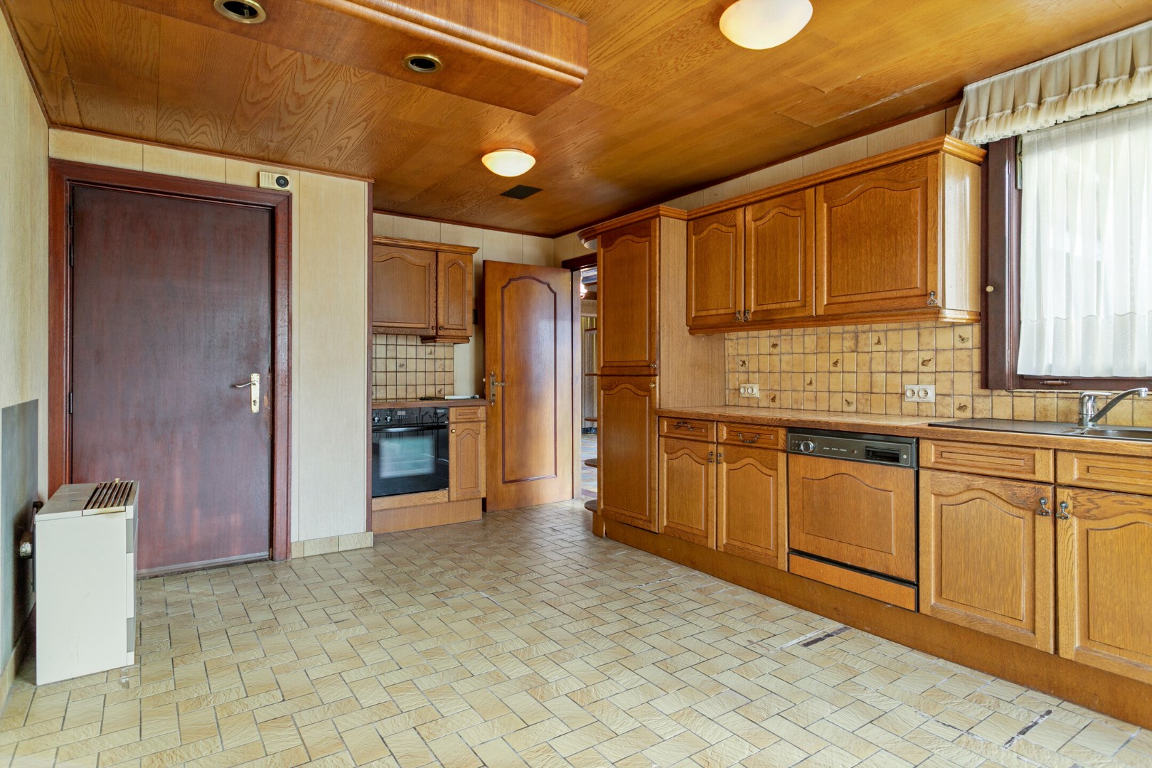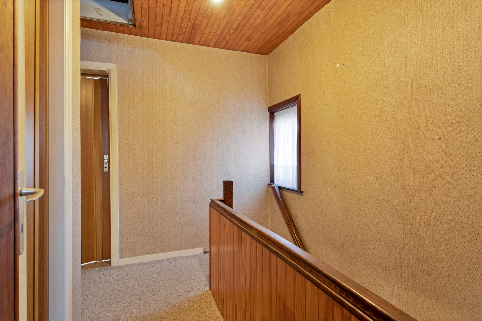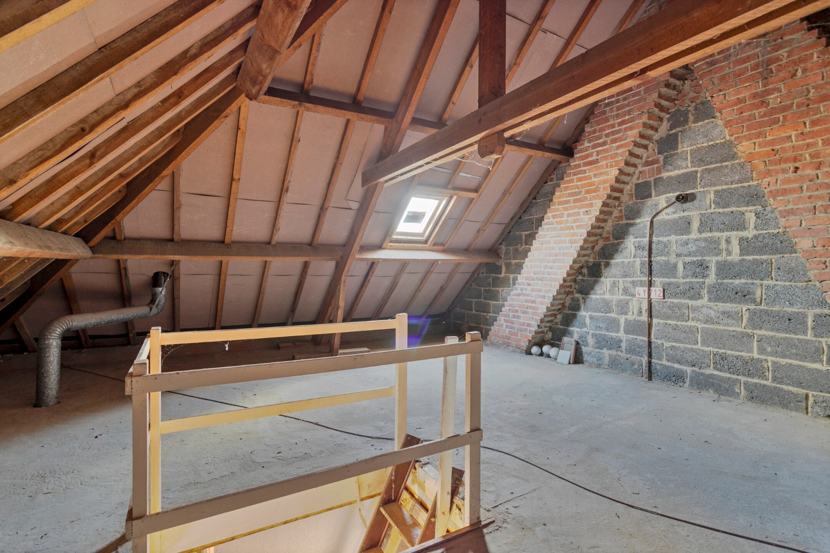 Via een valtrap kunnen we naar de grote, niet-geïsoleerde zolder.