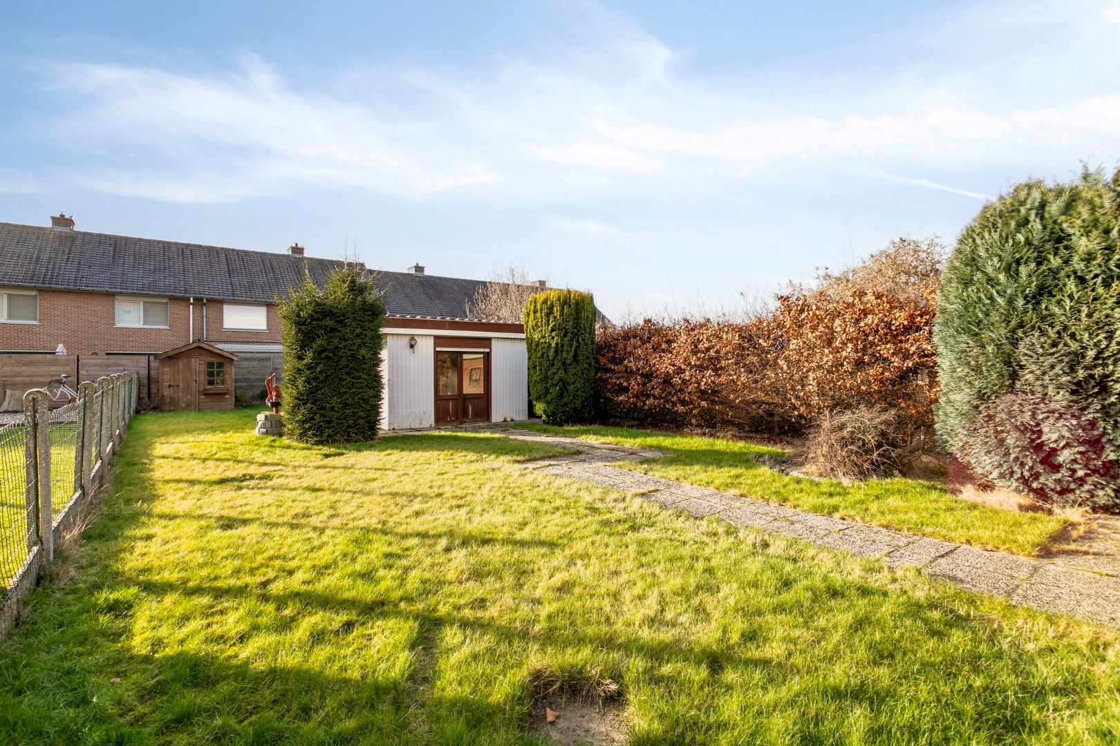 In de grote tuin is het zalig genieten van de namiddag- en avondzon. Achteraan staat er een groot tuinhuis.