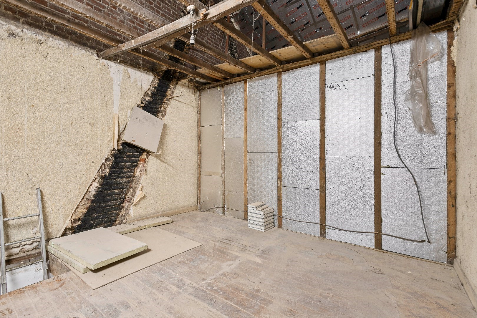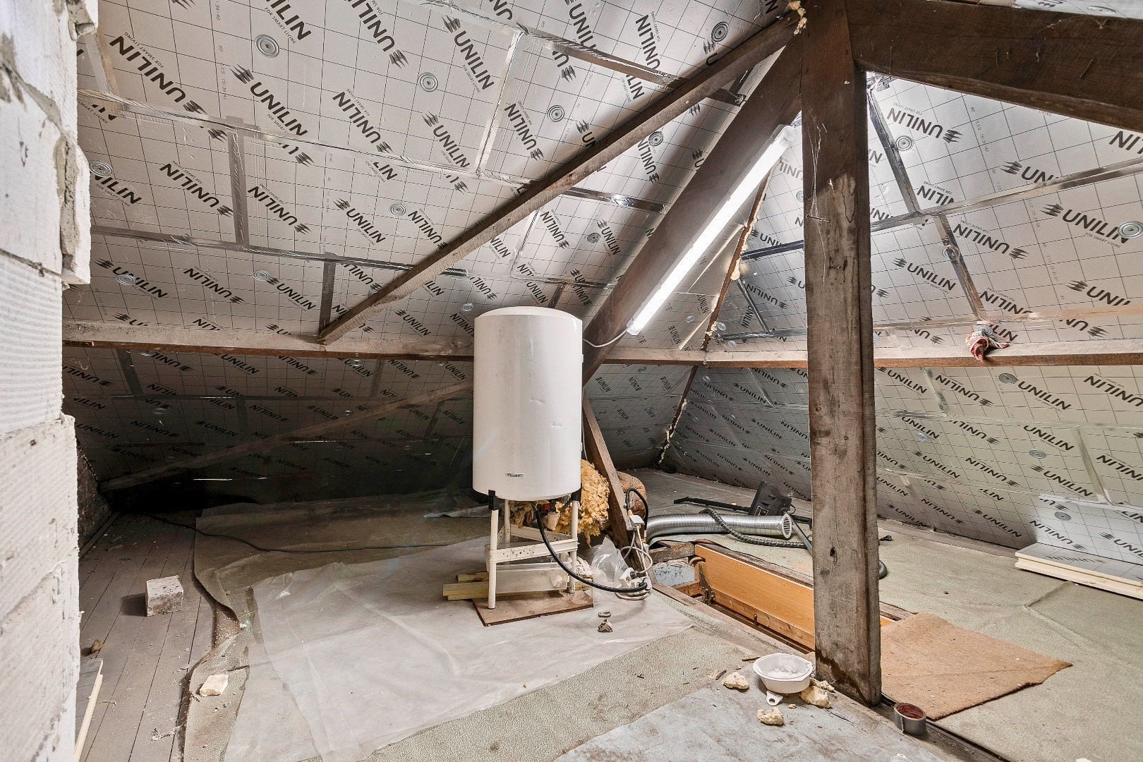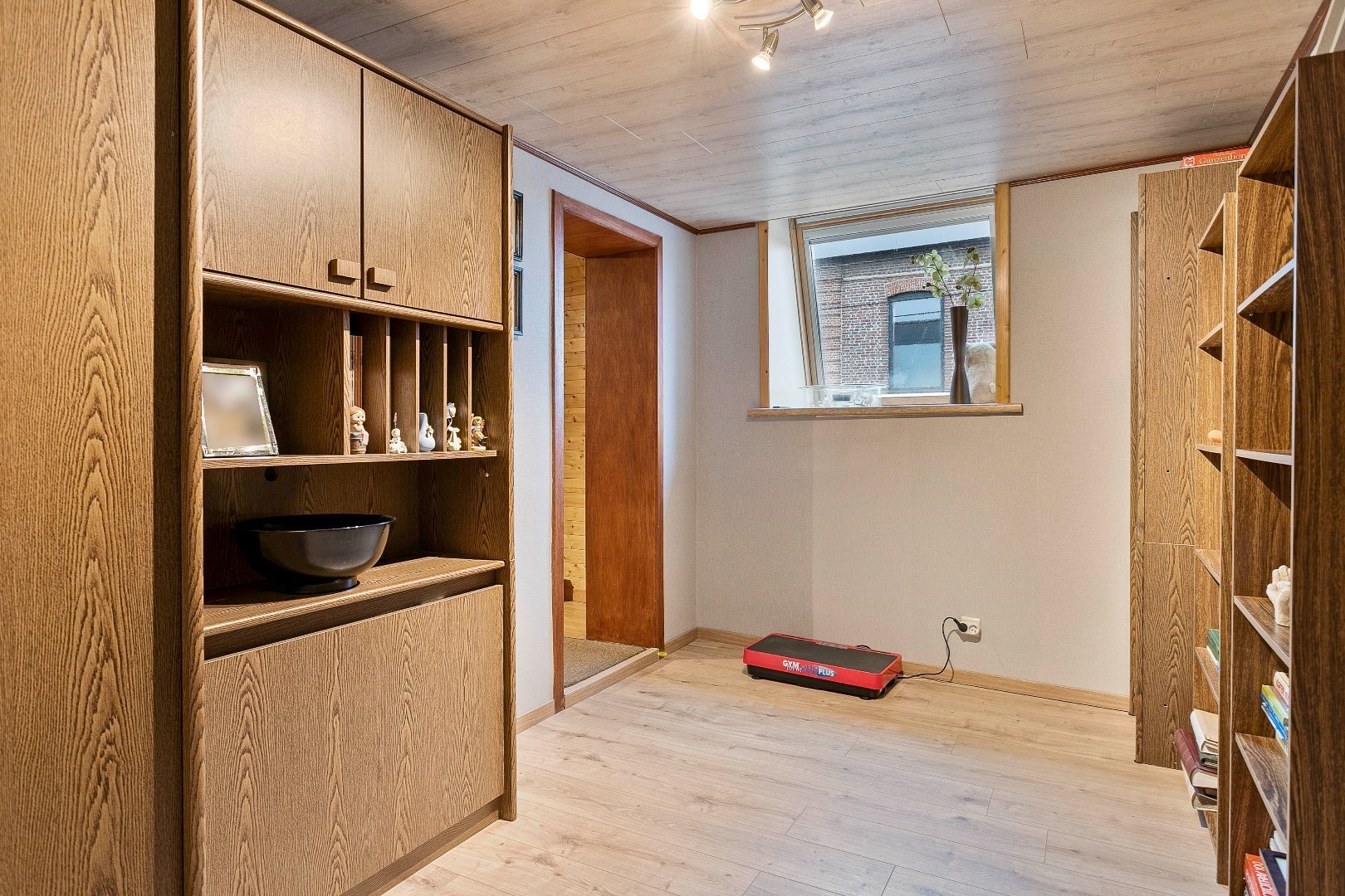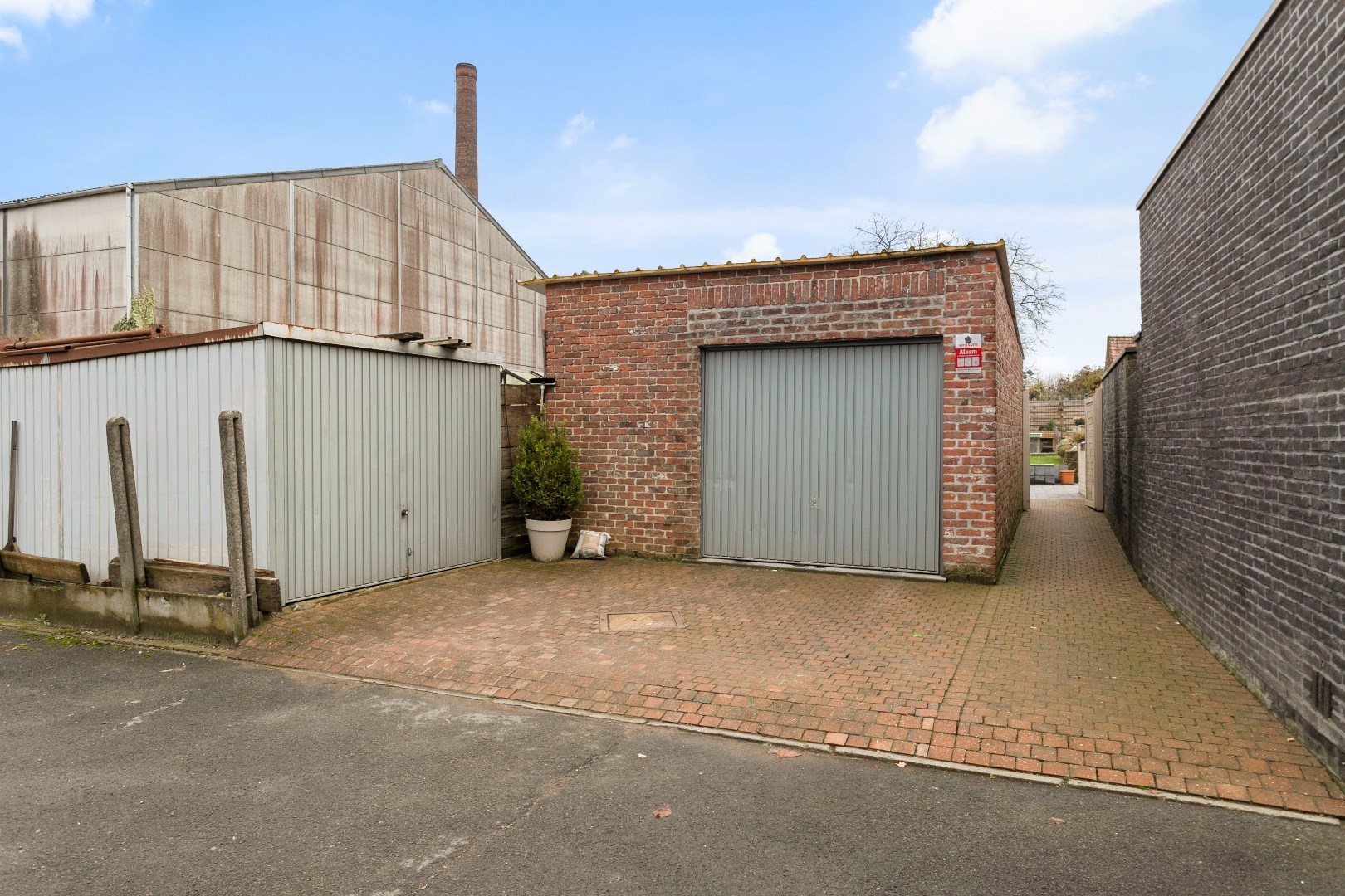 Terug op de gelijkvloerse verdieping vinden we de eerste garage met elektrische poort terug langs de voorzijde. Achter deze garage is er een berging met daarboven een tweede zolder. Op deze zolder kan eventueel nog een kamer worden gemaakt die dan kan bereikt worden via de nachthal vanuit de woning.