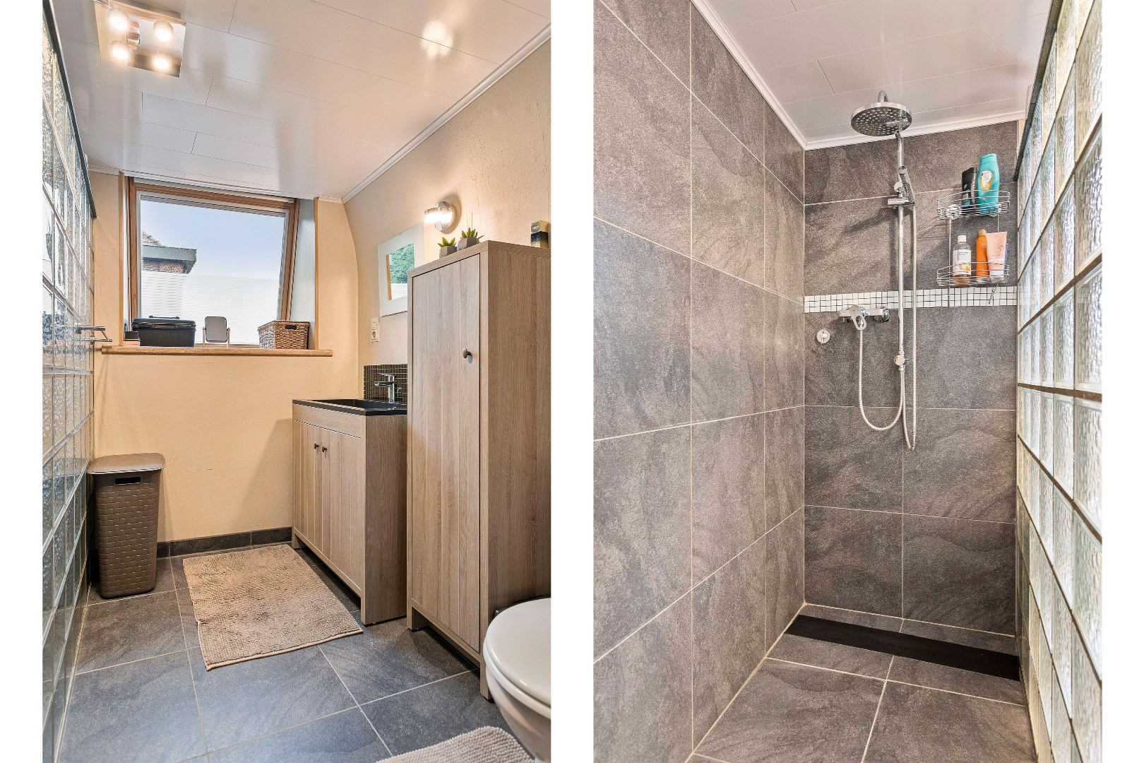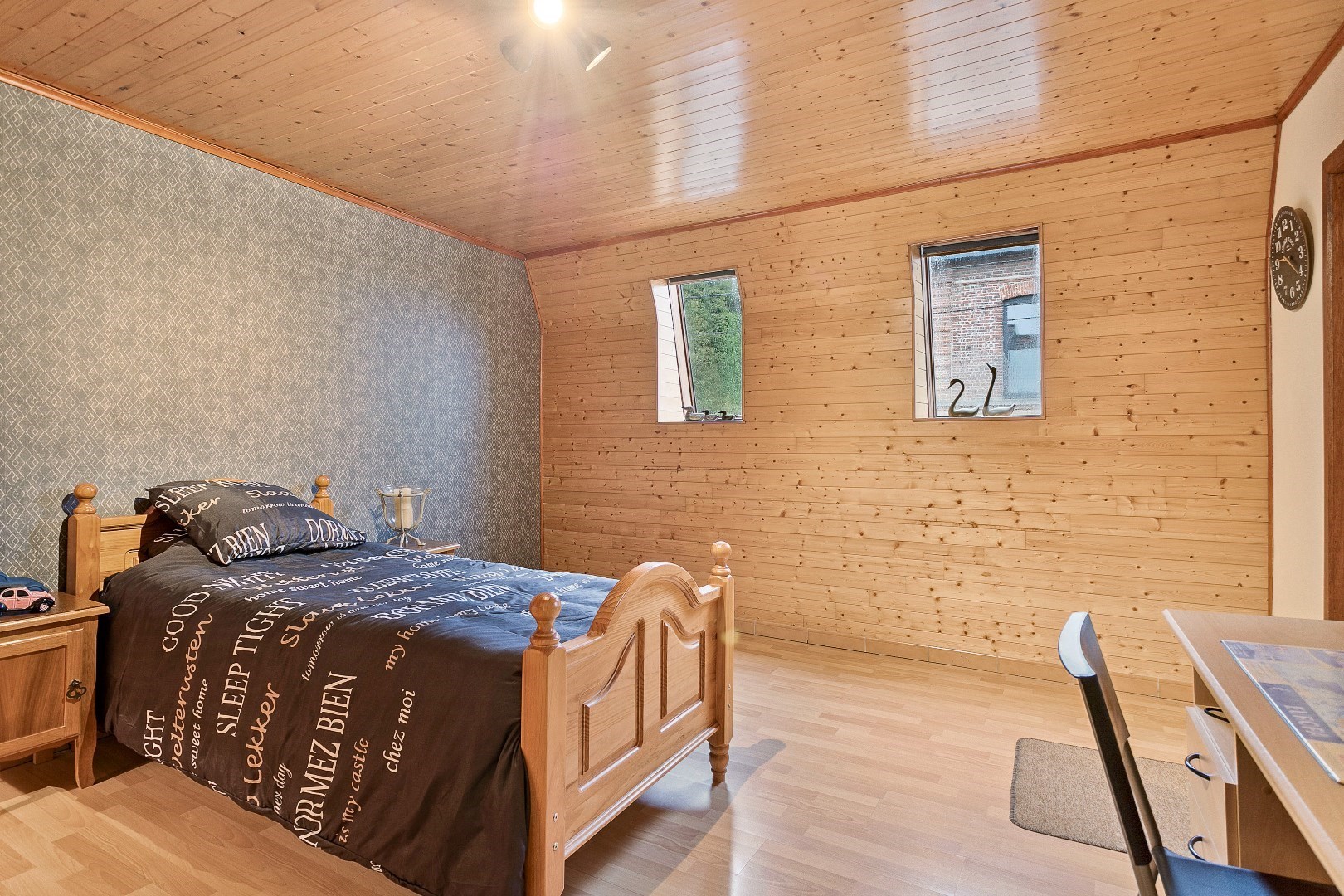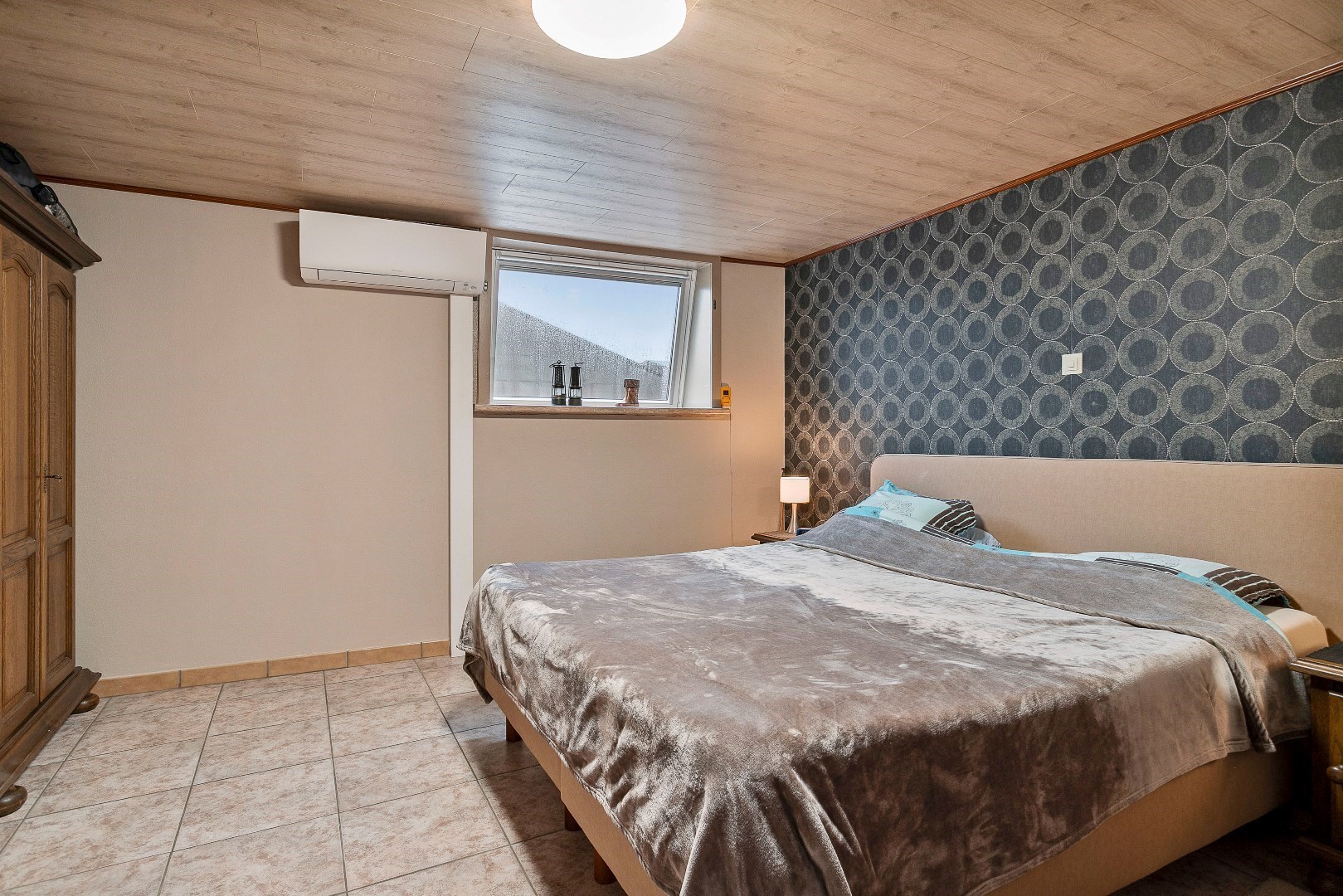 Op de bovenverdieping zijn er 4 kamers. Men moet wel door de derde kamer om in de vierde te komen. Er kan eventueel nog een extra kamer bijgemaakt worden. De belangrijkste slaapkamer beschikt over airconditioning die zowel zorgt voor de nodige verwarming als verkoeling. De mooie badkamer werd 2 jaar geleden gerenoveerd. Er is hier een grote inloopdouche, lavabo en toilet. Vanuit de nachthal kunnen we naar de eerste zolder.