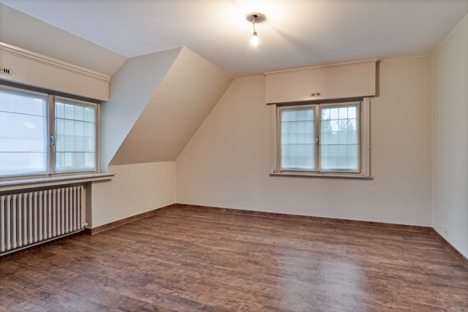 Via een vaste trap kunnen we naar de 2 ruime zolders. Hier kunnen nog extra kamers van gemaakt worden.