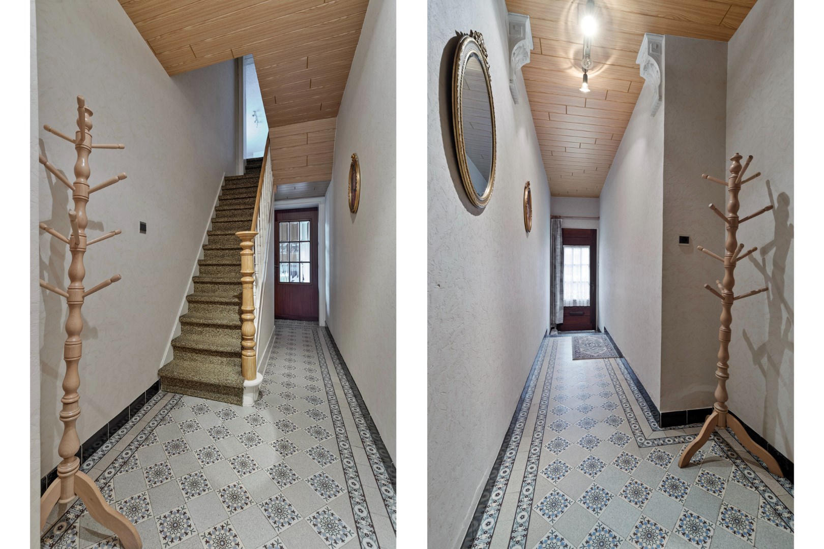We komen binnen in de stijlvolle hal. De mooie originele vloer en de mooie trap geven de inkom uitstraling!