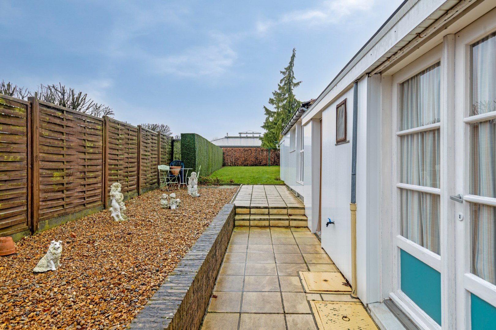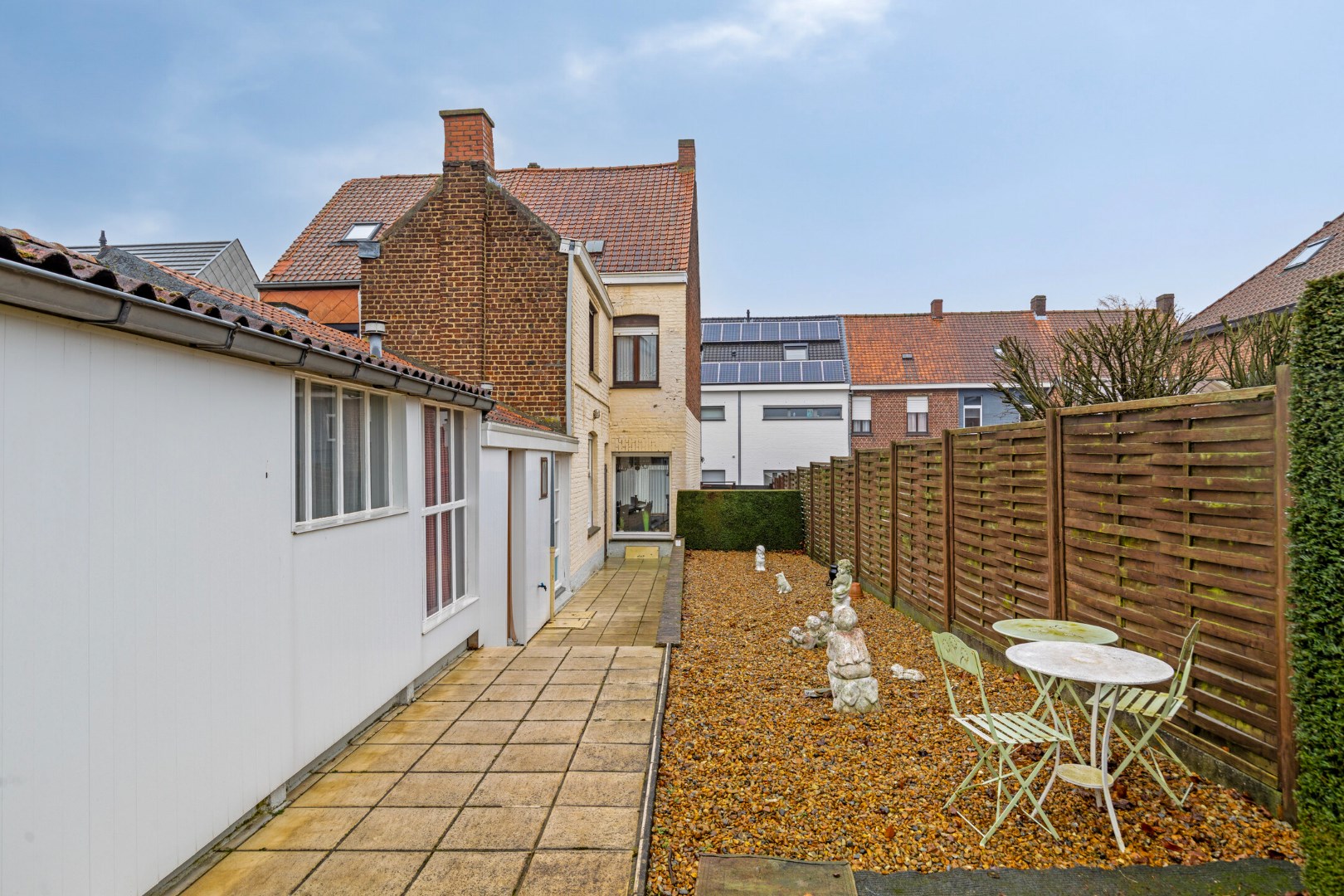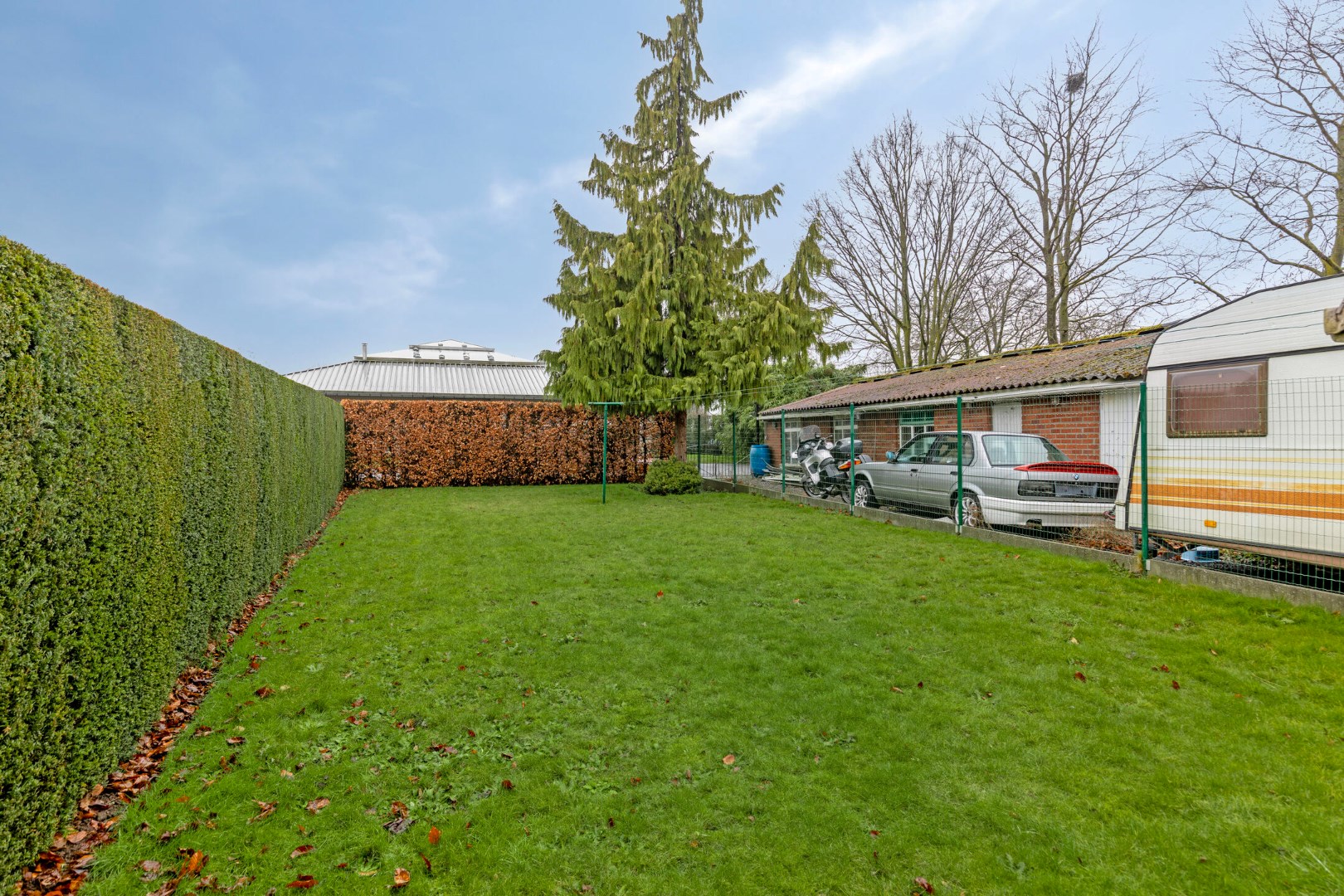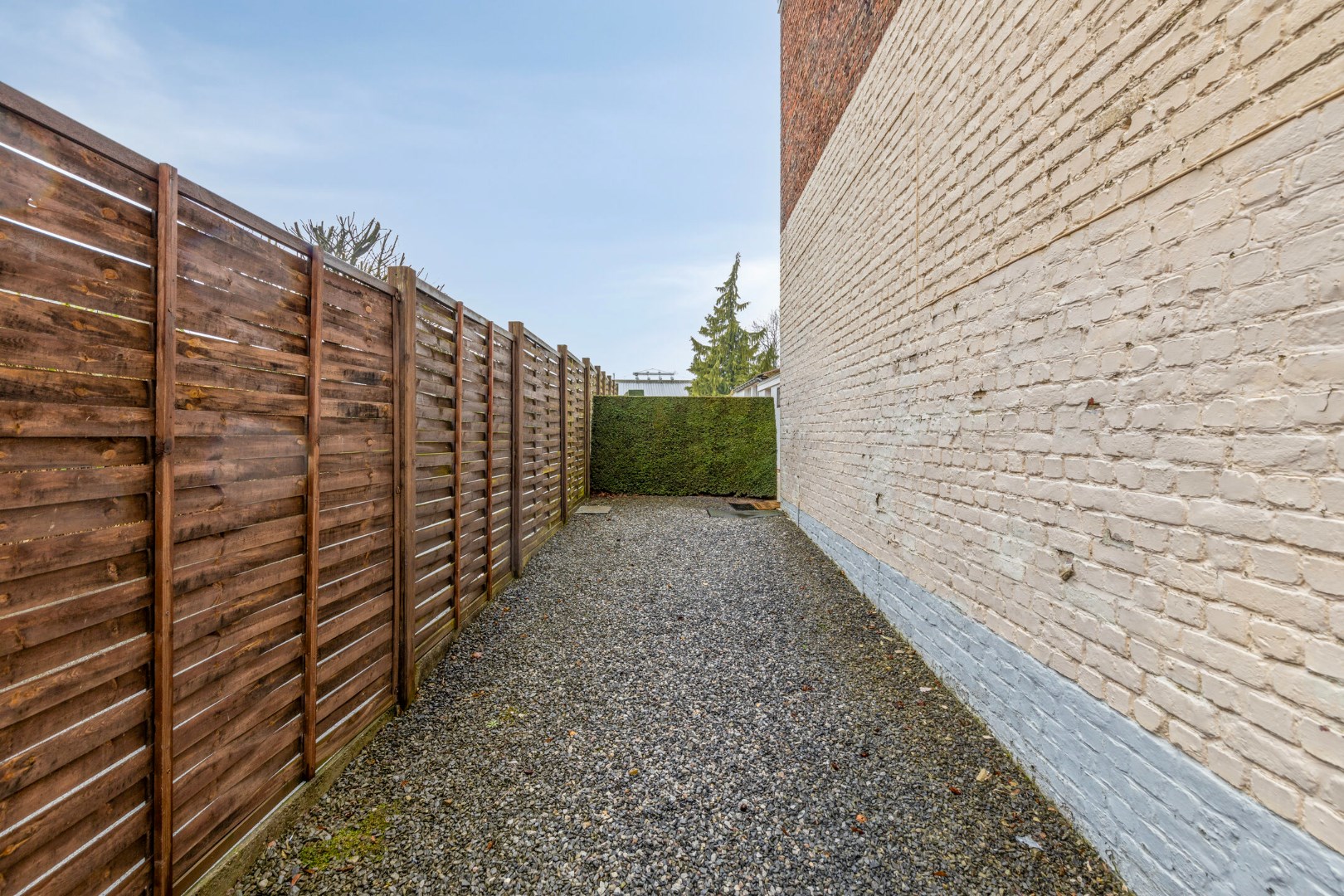 Een heel grote troef van de woning is de oprit langs de woning. Deze is nu afgesloten met een poort zodat er een wagen kan geparkeerd worden. Hierlangs komen we ook in de verzorgde tuin. In de tuin zijn er nog 2 ruime bergingen.
