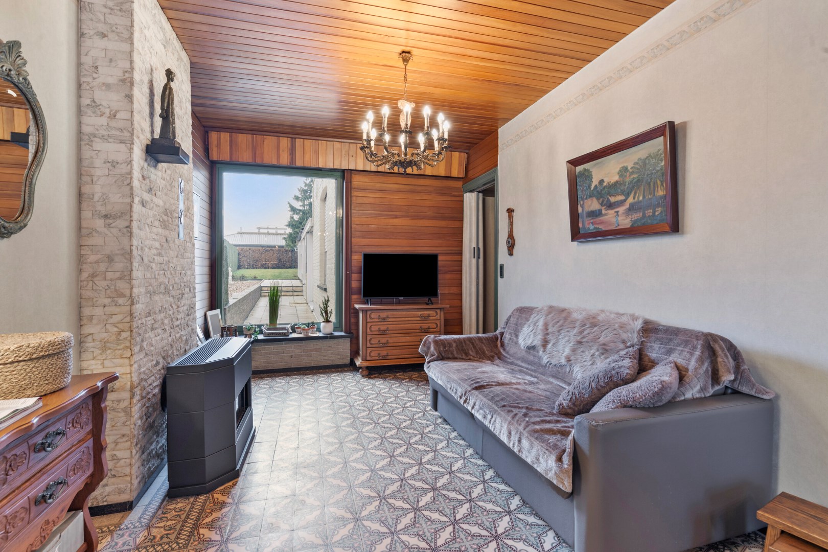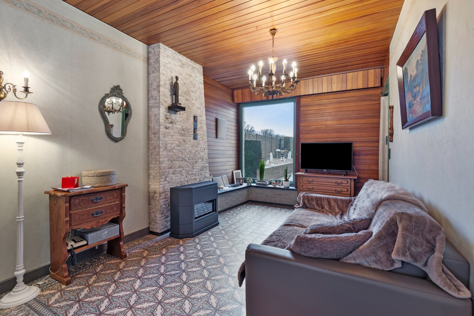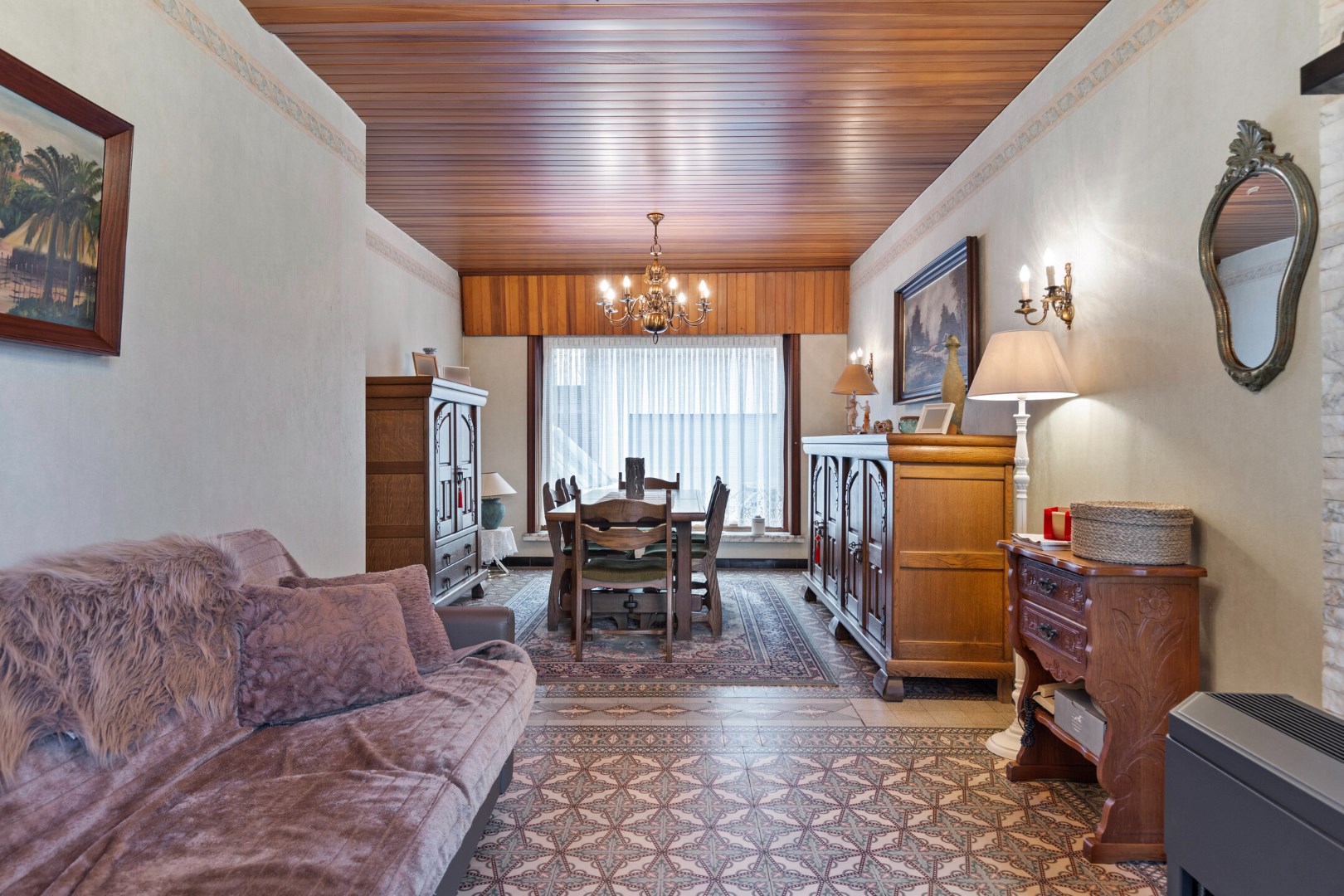 De leefruimte is door de grote ramen zeer lichtrijk en aangenaam. Ook hier is er terug een mooie originele vloer. Er is zowel zicht op de straatzijde én op de mooie tuin. De keuken is achteraan gelegen en heeft aanpalend een bijkeuken met daarachter de badkamer bestaande uit een douche, lavabo en toilet. Zowel vanuit de keuken als de bijkeuken is er toegang tot de tuin.