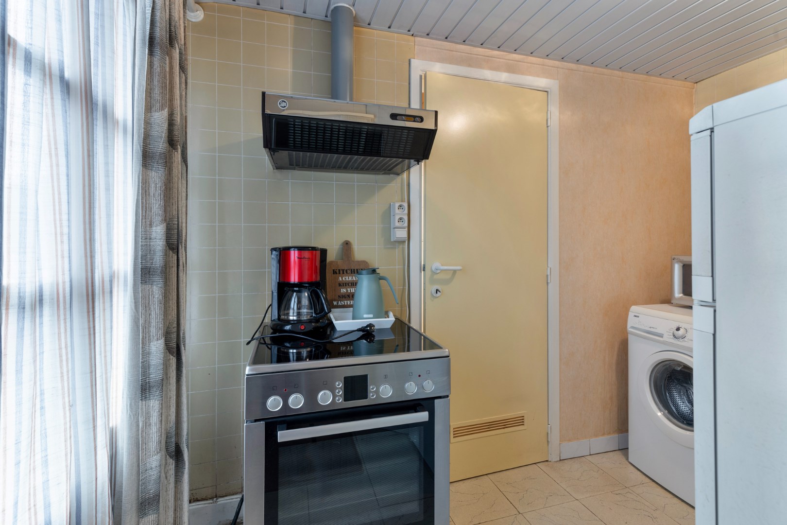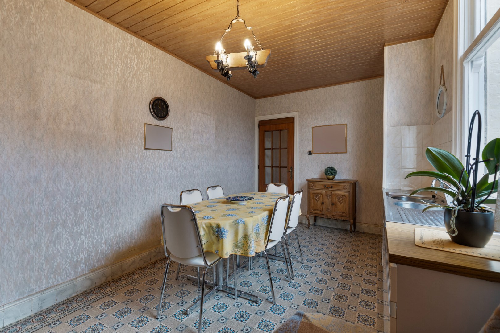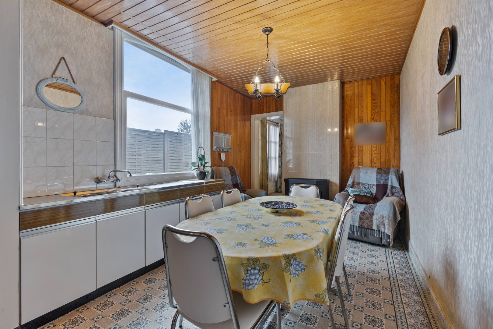 De leefruimte is door de grote ramen zeer lichtrijk en aangenaam. Ook hier is er terug een mooie originele vloer. Er is zowel zicht op de straatzijde én op de mooie tuin. De keuken is achteraan gelegen en heeft aanpalend een bijkeuken met daarachter de badkamer bestaande uit een douche, lavabo en toilet. Zowel vanuit de keuken als de bijkeuken is er toegang tot de tuin.