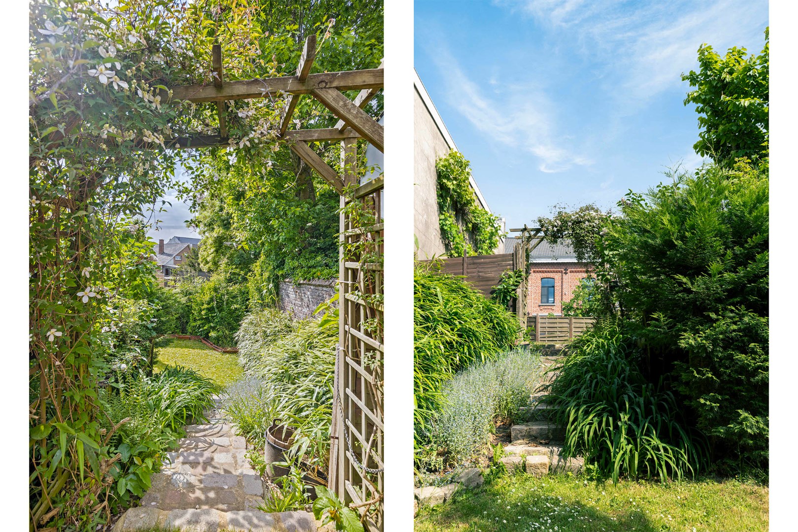 Buiten kunnen we allereerst ontspannen op het grote terras of in de mooie tuin. De tuin bestaat uit twee delen waarvan het tweede deel iets lager ligt. Dit zorgt voor een heel mooi effect.