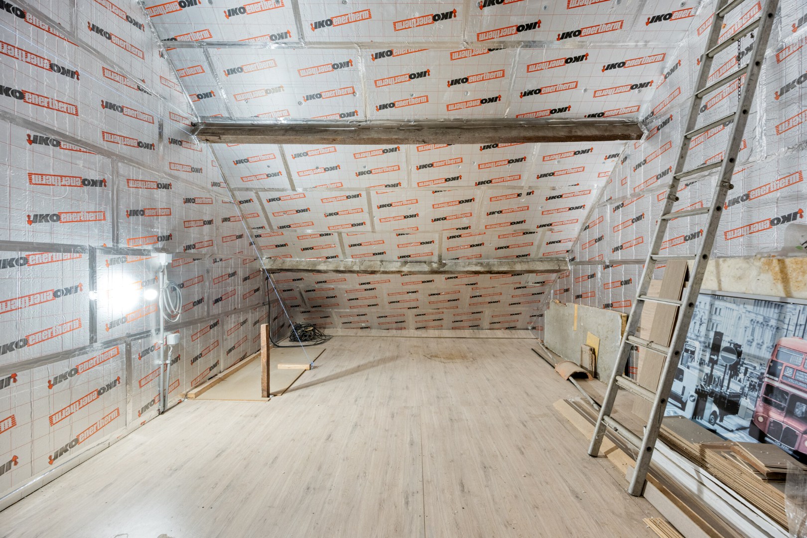 De eerste verdieping bestaat uit 3 mooie kamers. Een vaste trap brengt ons naar de geïsoleerde zolder. Hier kan eventueel nog een extra (hobby)kamer worden gemaakt.