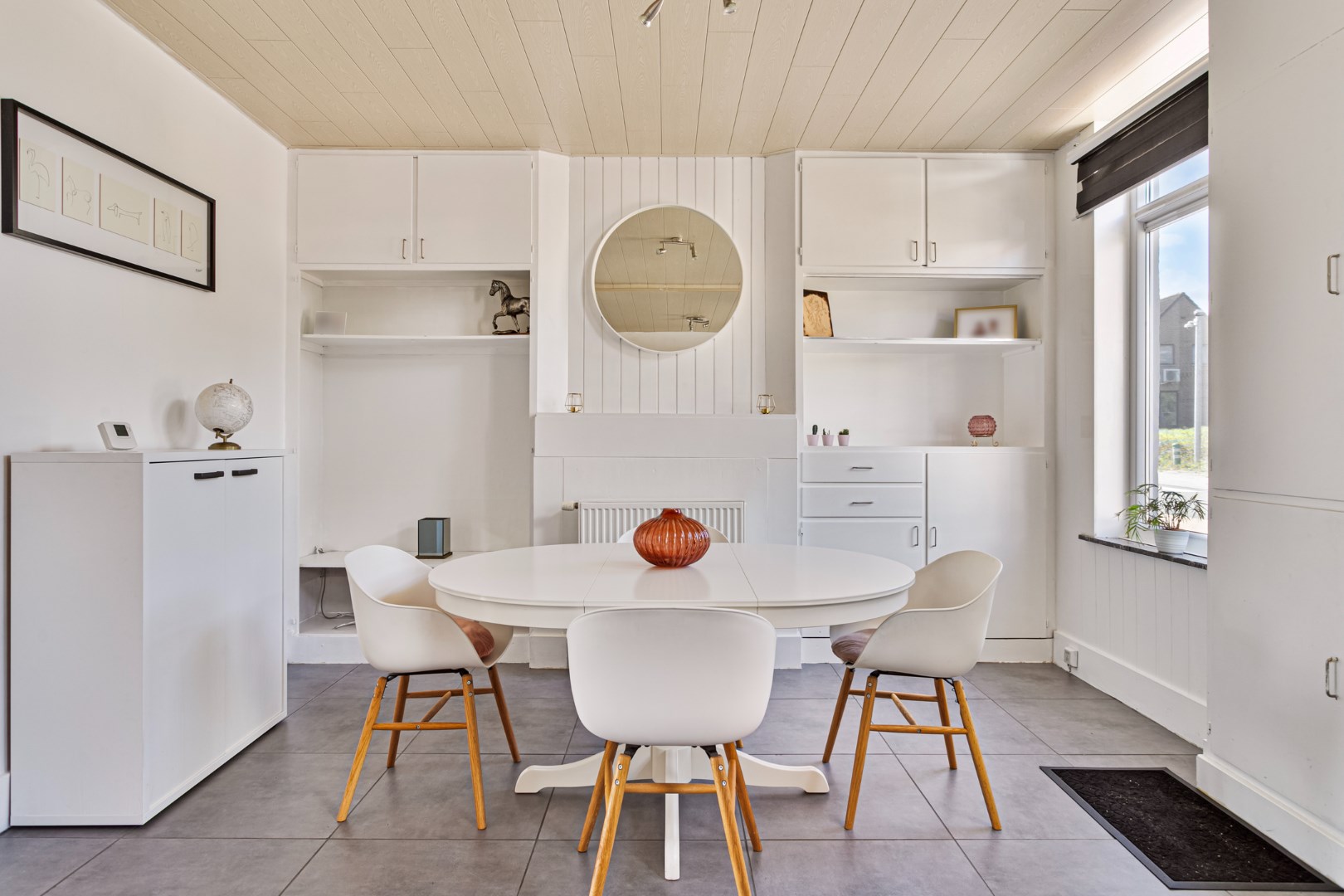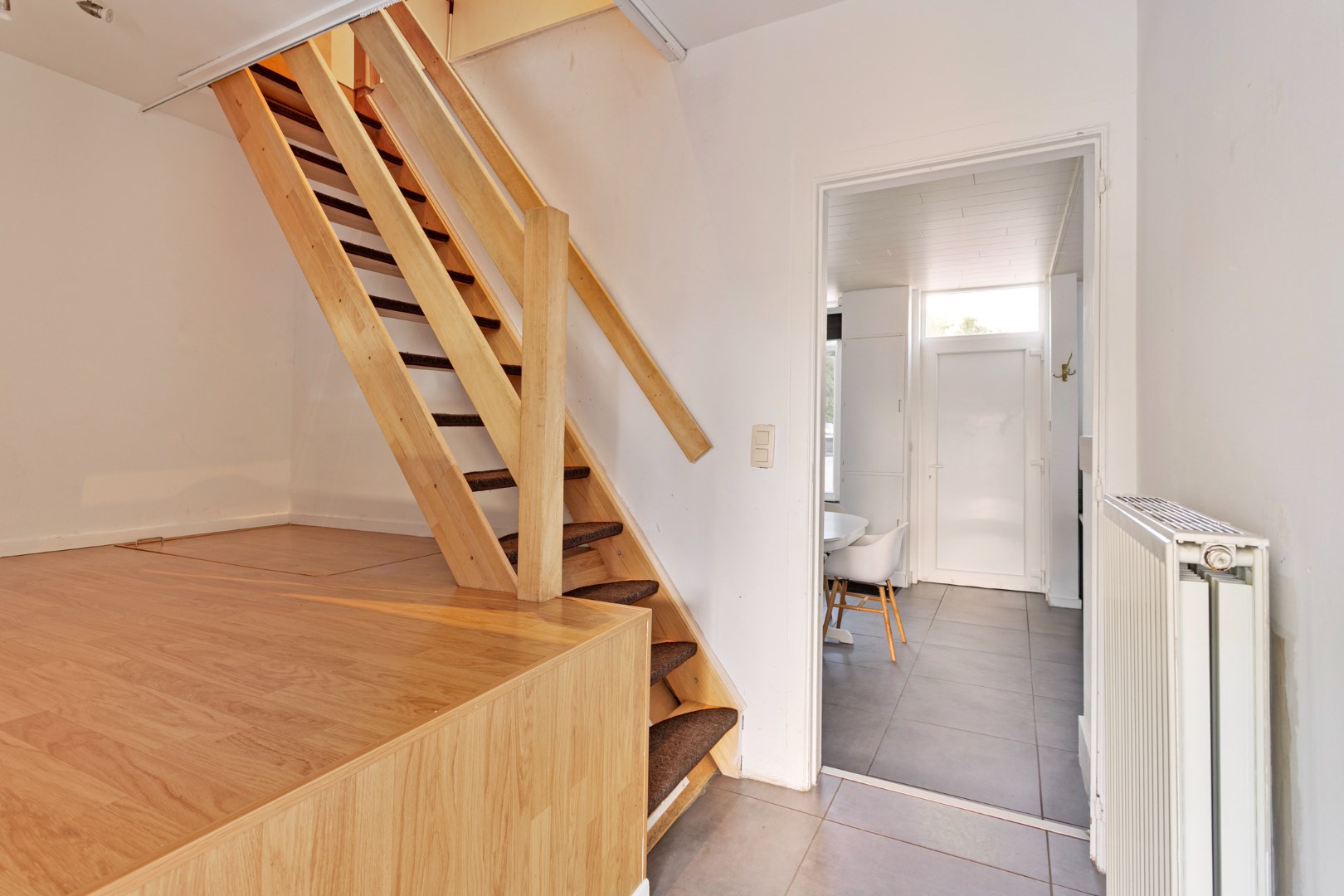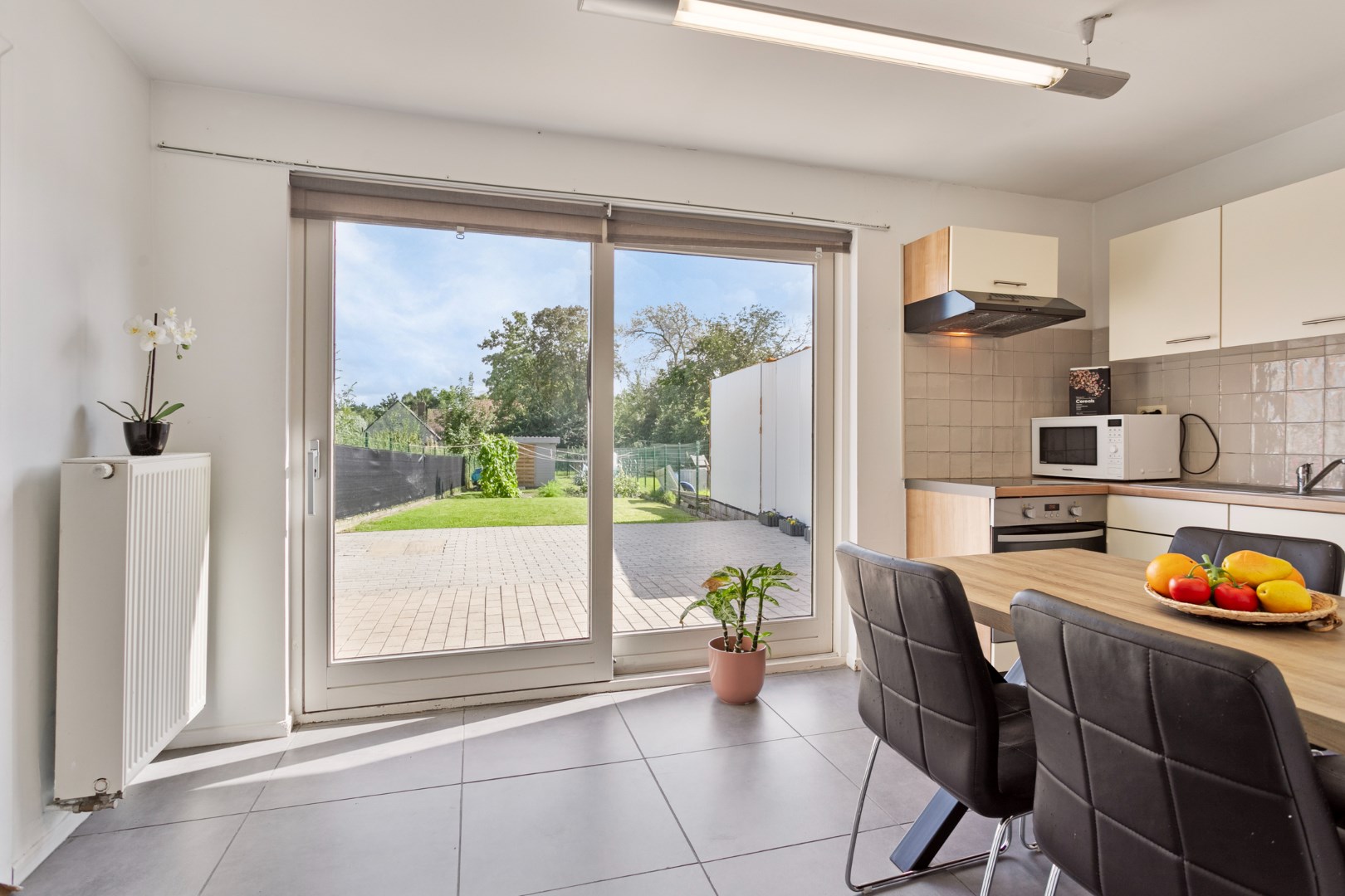 We komen binnen in de leefruimte van deze knusse woning. Het is hier heel lichtrijk.