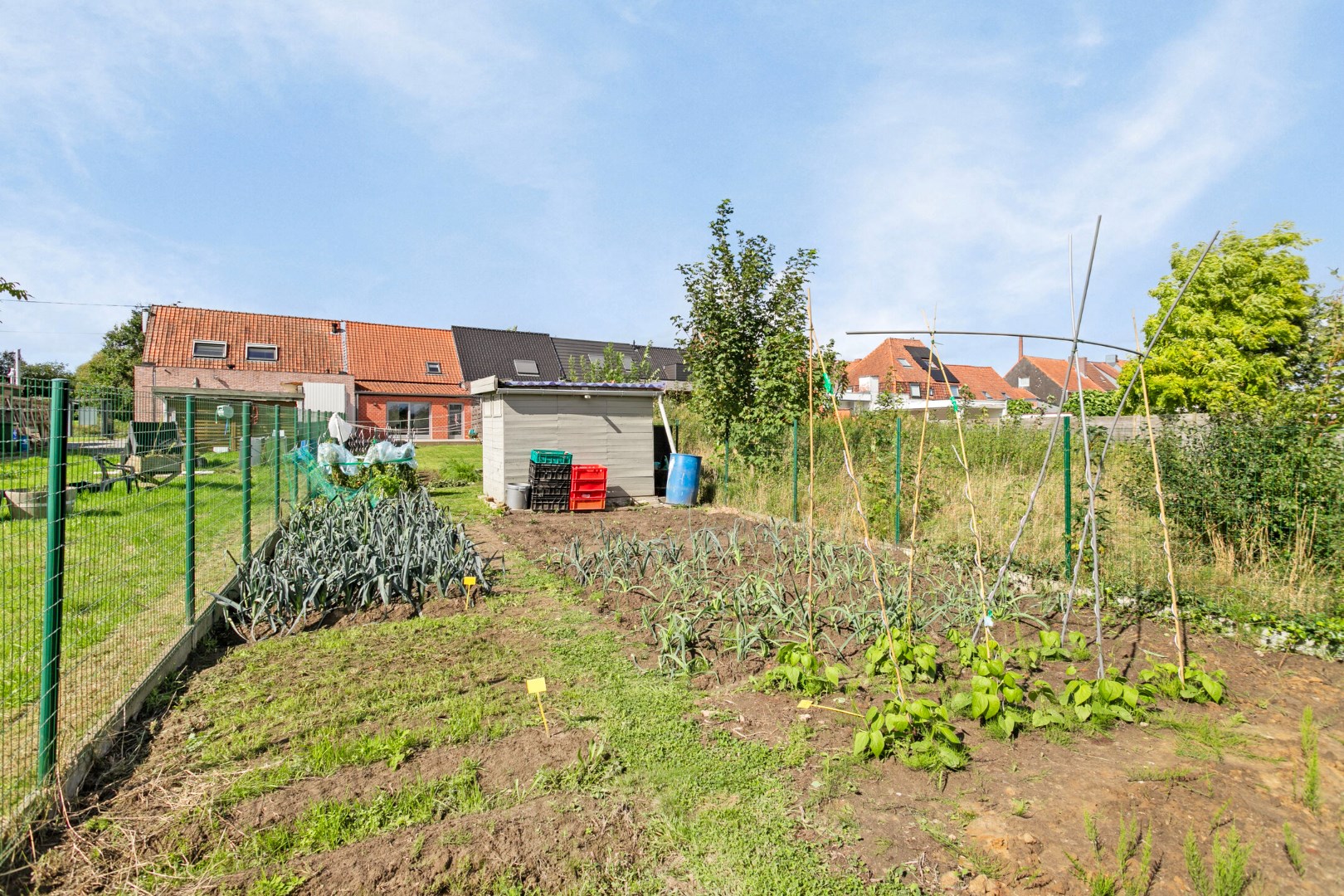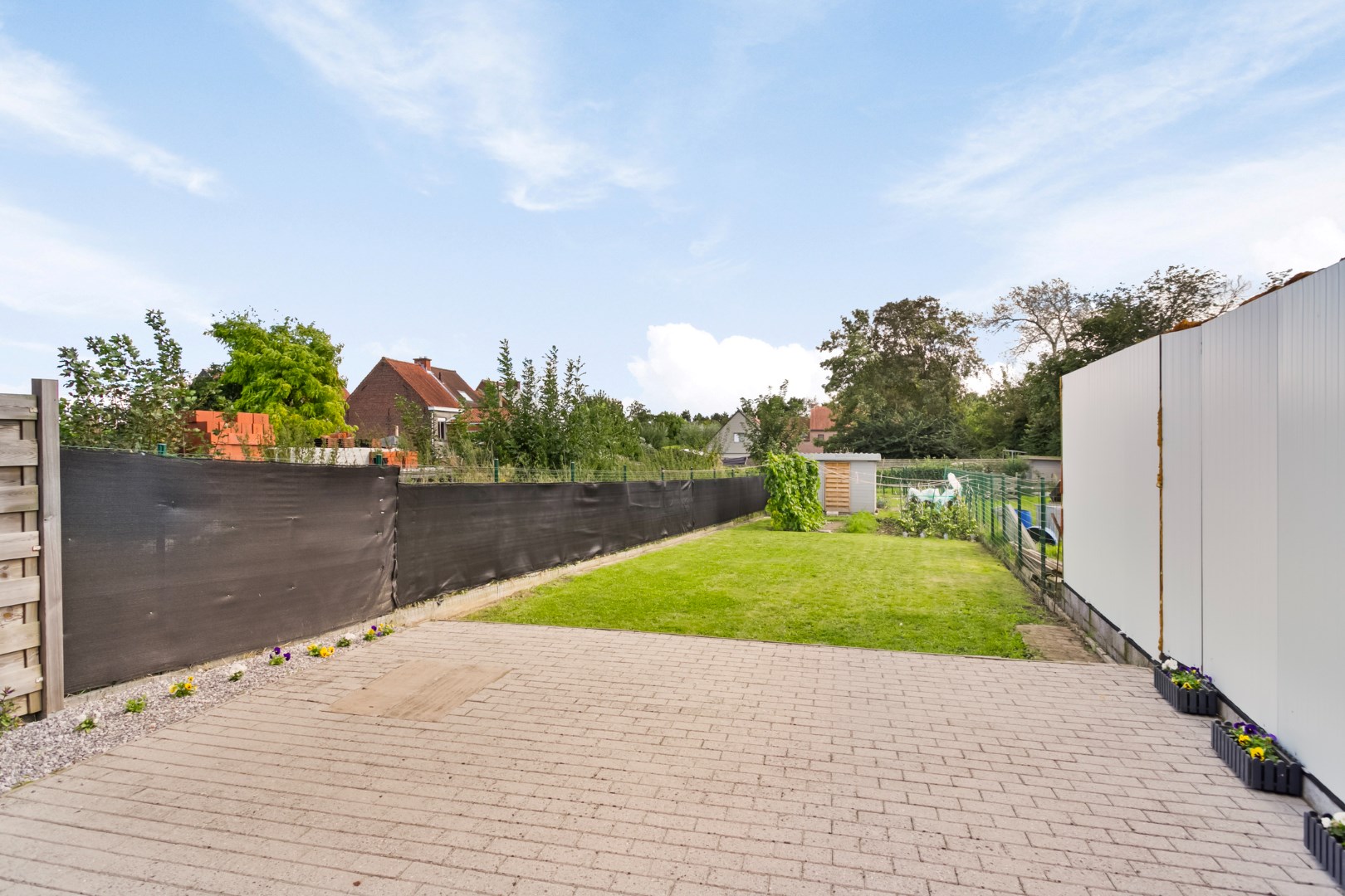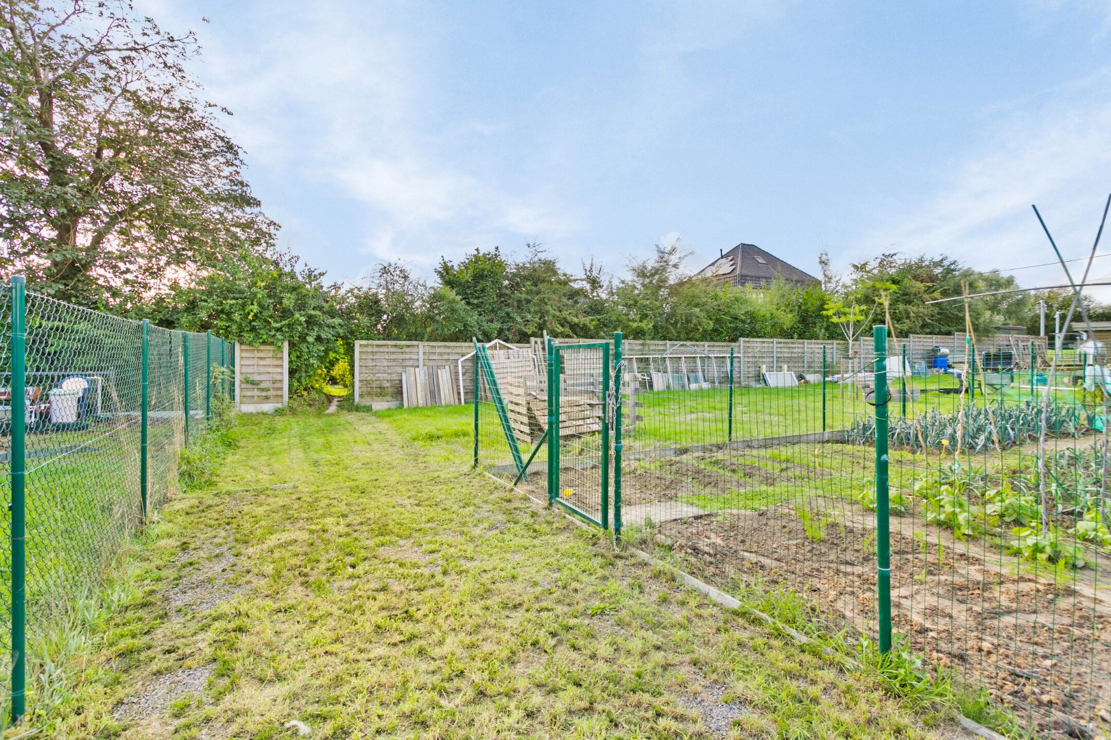 De grote oppervlakte van de tuin en het terras kunnen ook heel wat uitbreidingsmogelijkheden voor de woning opleveren.