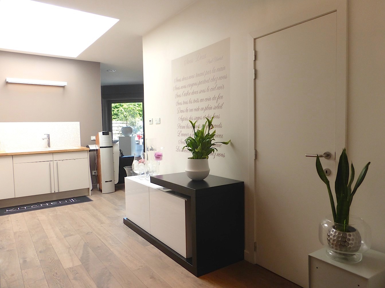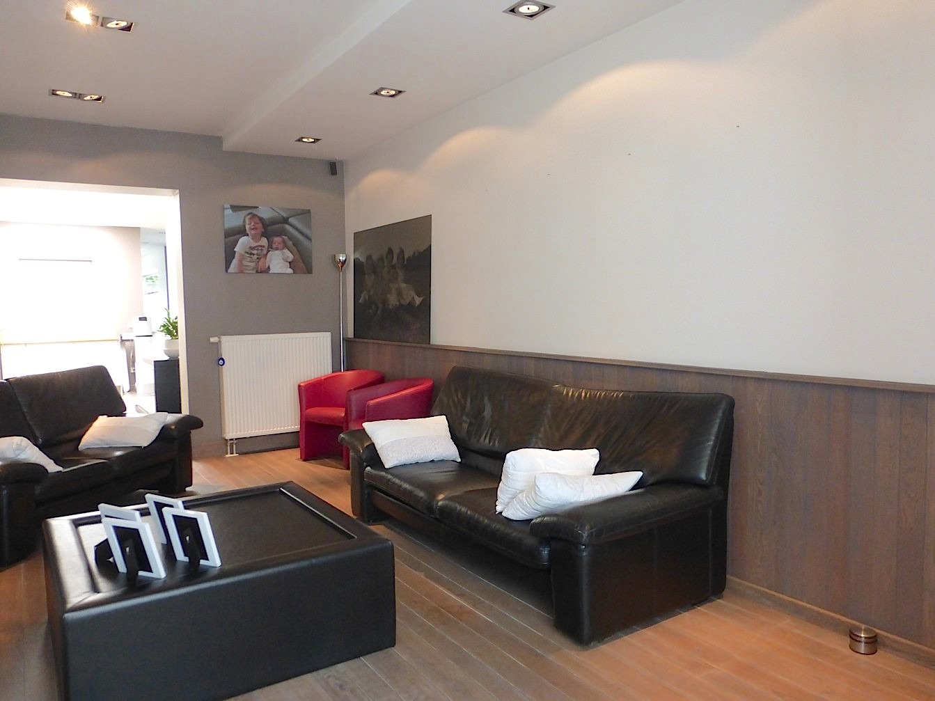 Via de hal komen we binnen in de gezellige zithoek, die gelegen is in het authentieke gedeelte van de woning. Dit loopt naadloos over in de mooie open keuken, die de verbinding maakt met de leefruimte die achteraan gelegen is. De mooie parketvloer zorgt voor een warm gevoel en door de vele ramen is het er zeer licht met zicht op het zeer gezellige en ruime terras. De leuke indeling en de goede oriëntatie zorgen ervoor dat het er genieten is in alle rust en privacy.