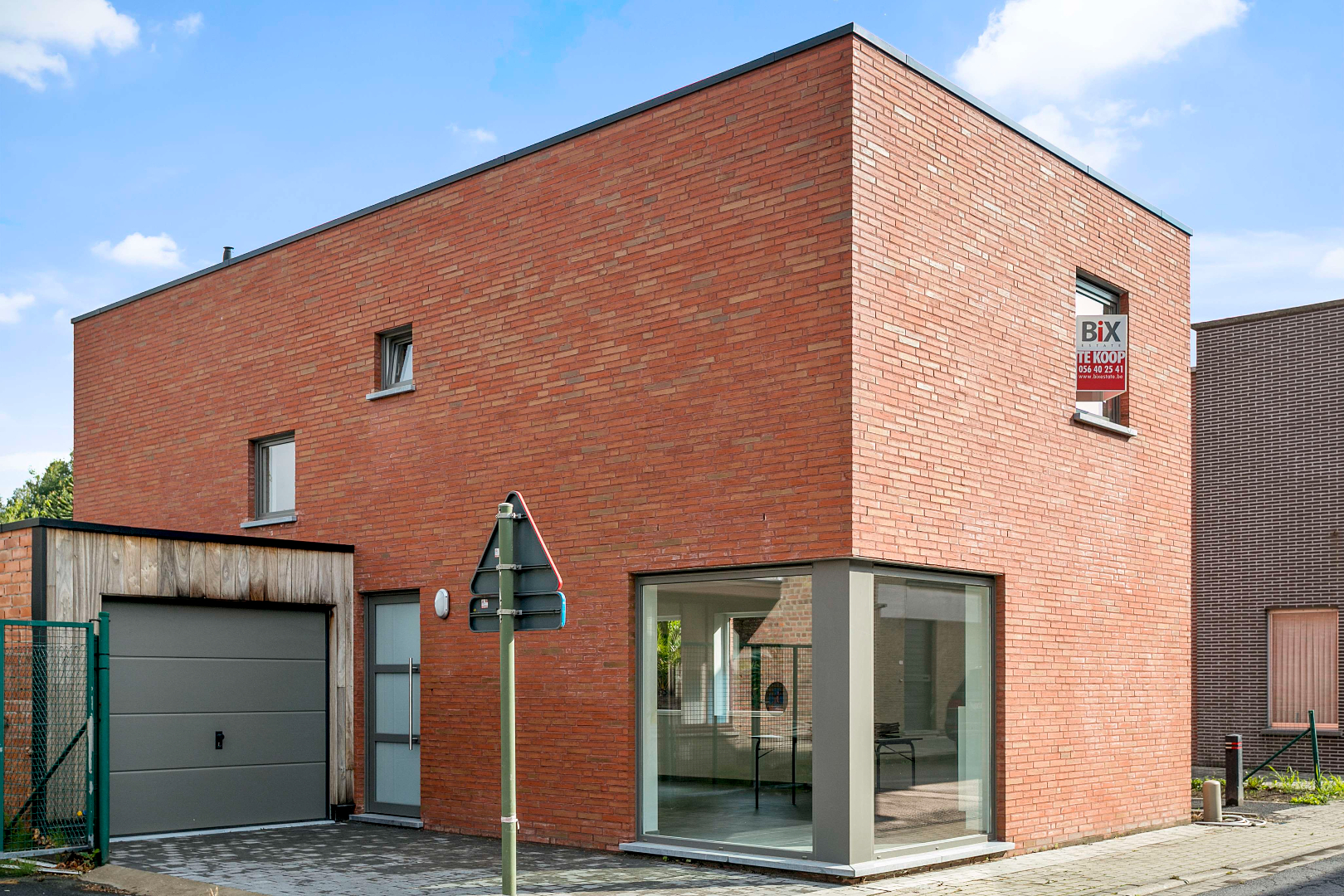 Langs de oprit komen we de woning binnen via de inkomhal met apart gastentoilet. De lichtrijke living strekt zich uit tot aan de open keuken. Deze is voorzien van alle nodige toestellen en een tof kookeiland! Aansluitend vinden we een ruime berging. Van hieruit is ook de garage met sectionale poort bereikbaar.