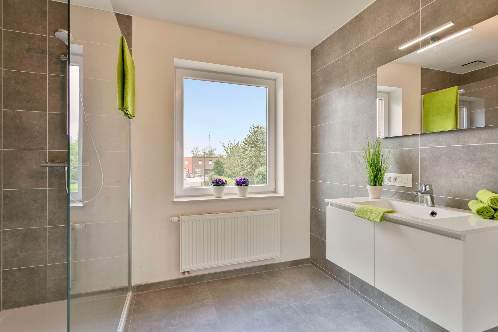 De eerste verdieping beschikt over 3 mooie, grote slaapkamers, een badkamer met lavabo en inloopdouche, apart toilet en een technische berging.