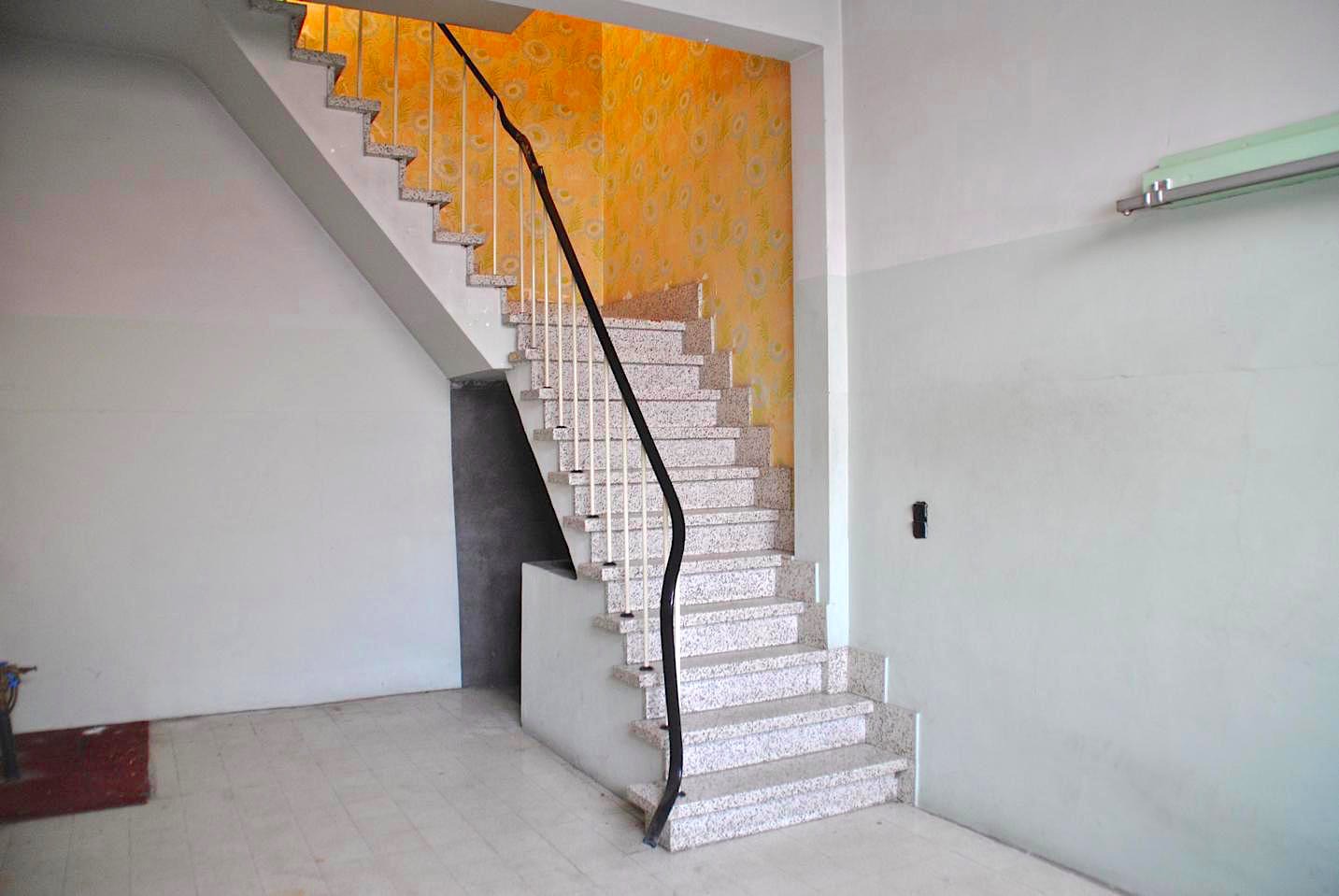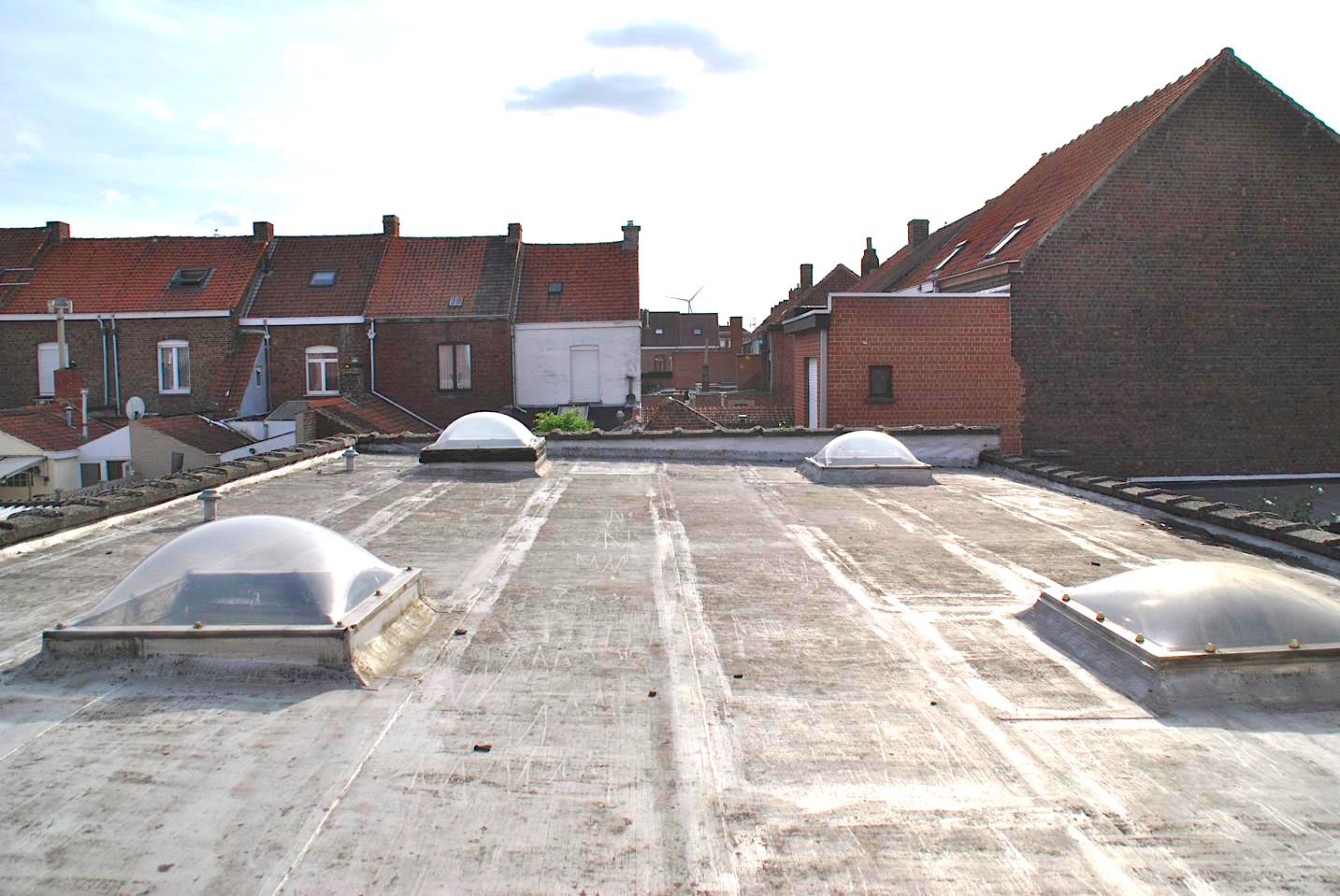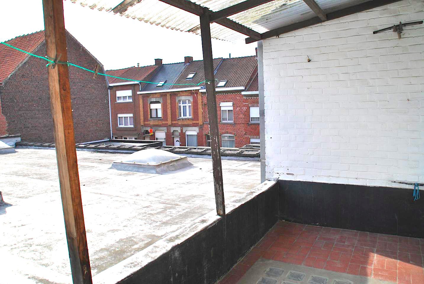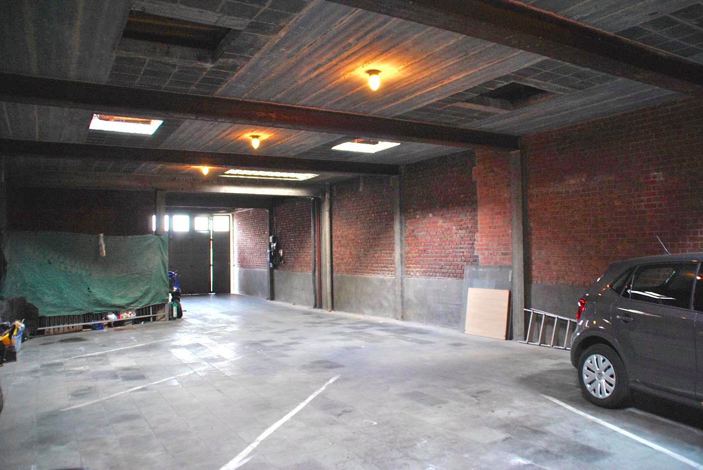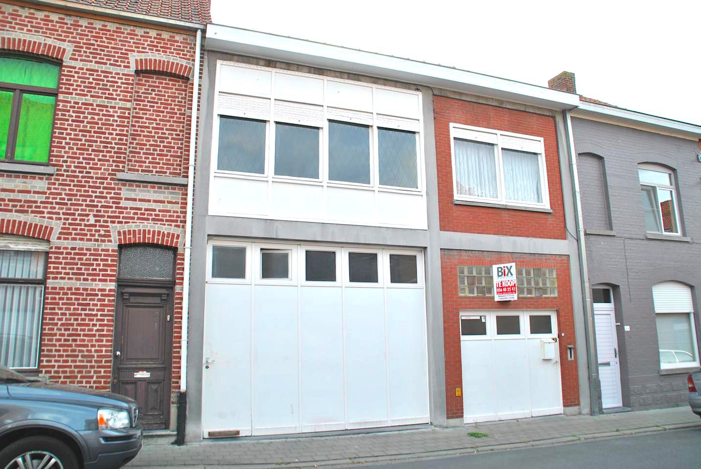 Dit eigendom bestaat uit een ruim magazijn dat apart bereikbaar is. Naast dit magzijn is er een garage die ook toegang heeft tot de boven gelegen woning. Vanuit de hal boven hebben we toegang tot een slaapkamer en de grote, lichtrijke living. Er zijn twee slaapkamers, een kleine keuken en badkamer. Een terrasje zorgt voor buitenlucht. Vanop het terras kijken we uit op het dak van het magazijn onderin. Er is ook een zolder die plaats kan bieden aan één of twee extra kamers.