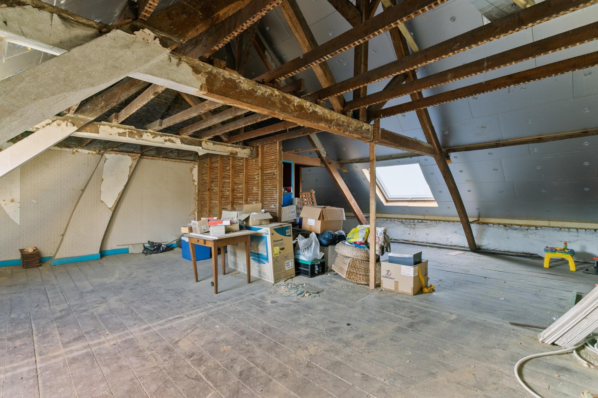 De 1e verdieping beschikt over 3 grote slaapkamers en een toilet. Er is eveneens een vaste trap naar de zolder. De geïsoleerde zolder is ontzettend groot. Er zitten 2 grote velux-ramen. Hier kan men met gemak nog een aantal kamers onderbrengen.