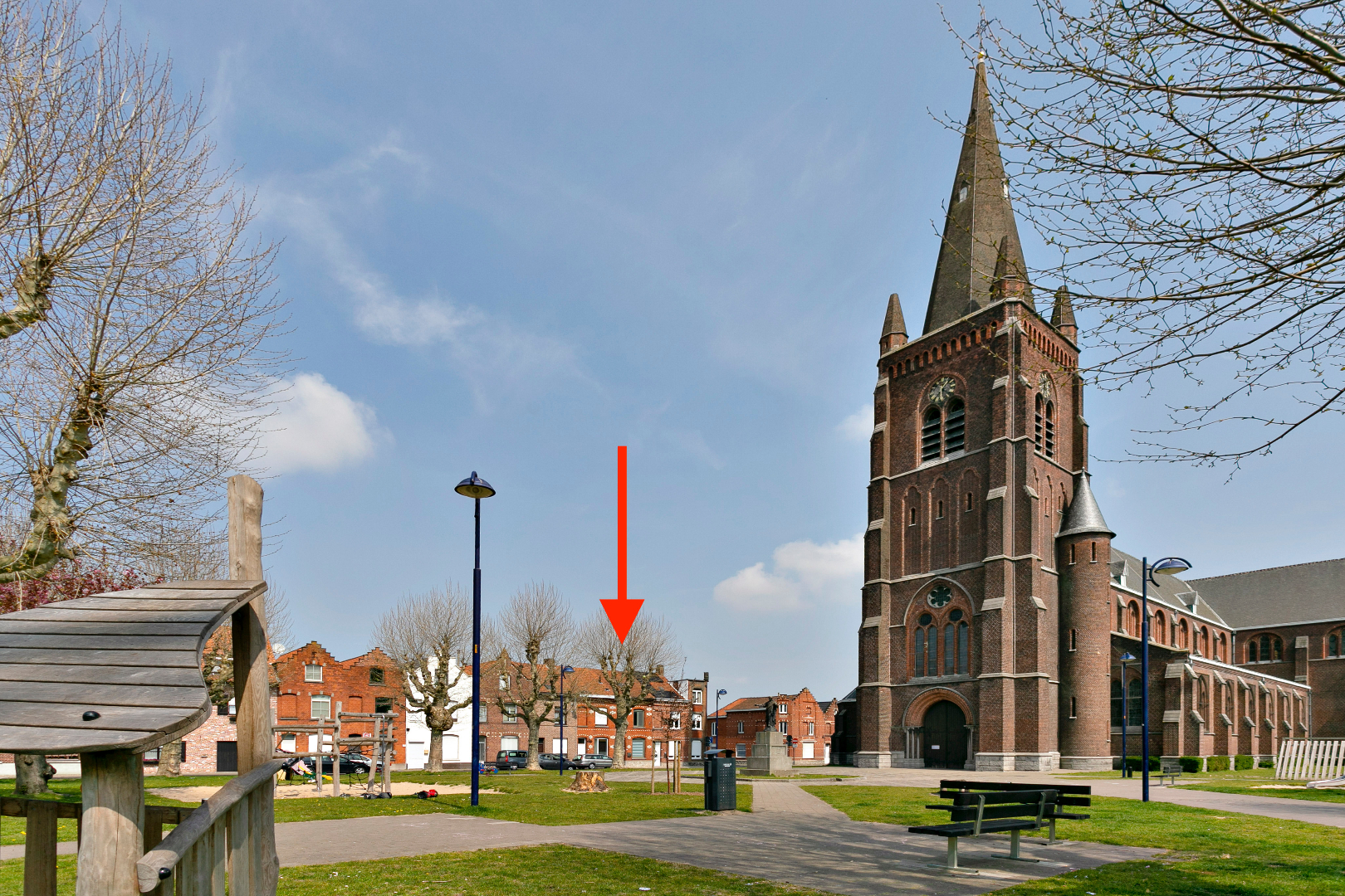 We vinden dit eigendom terug aan een zeer aangenaam en rustig pleintje voor de St-Jozefskerk.