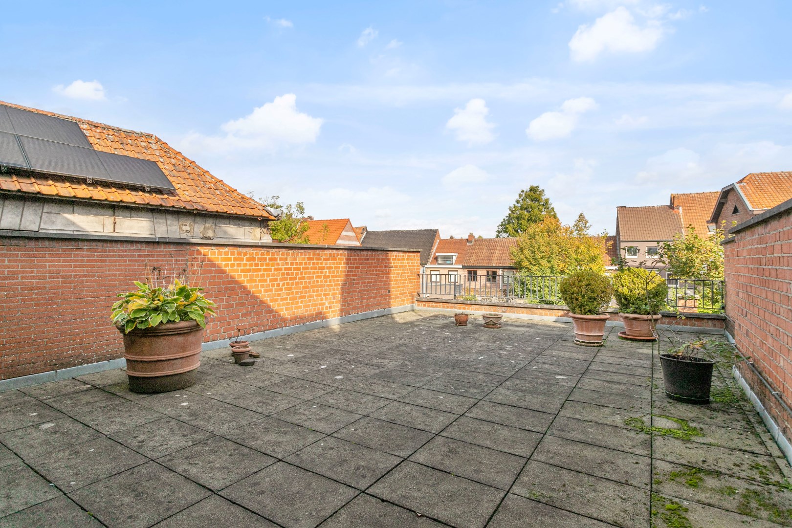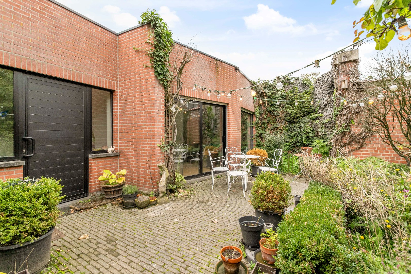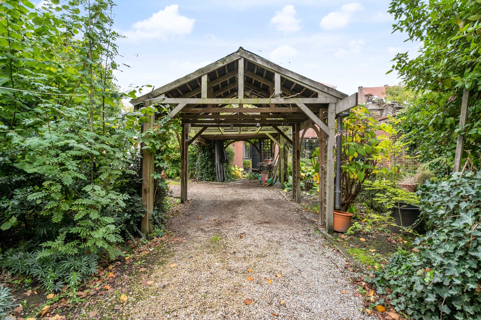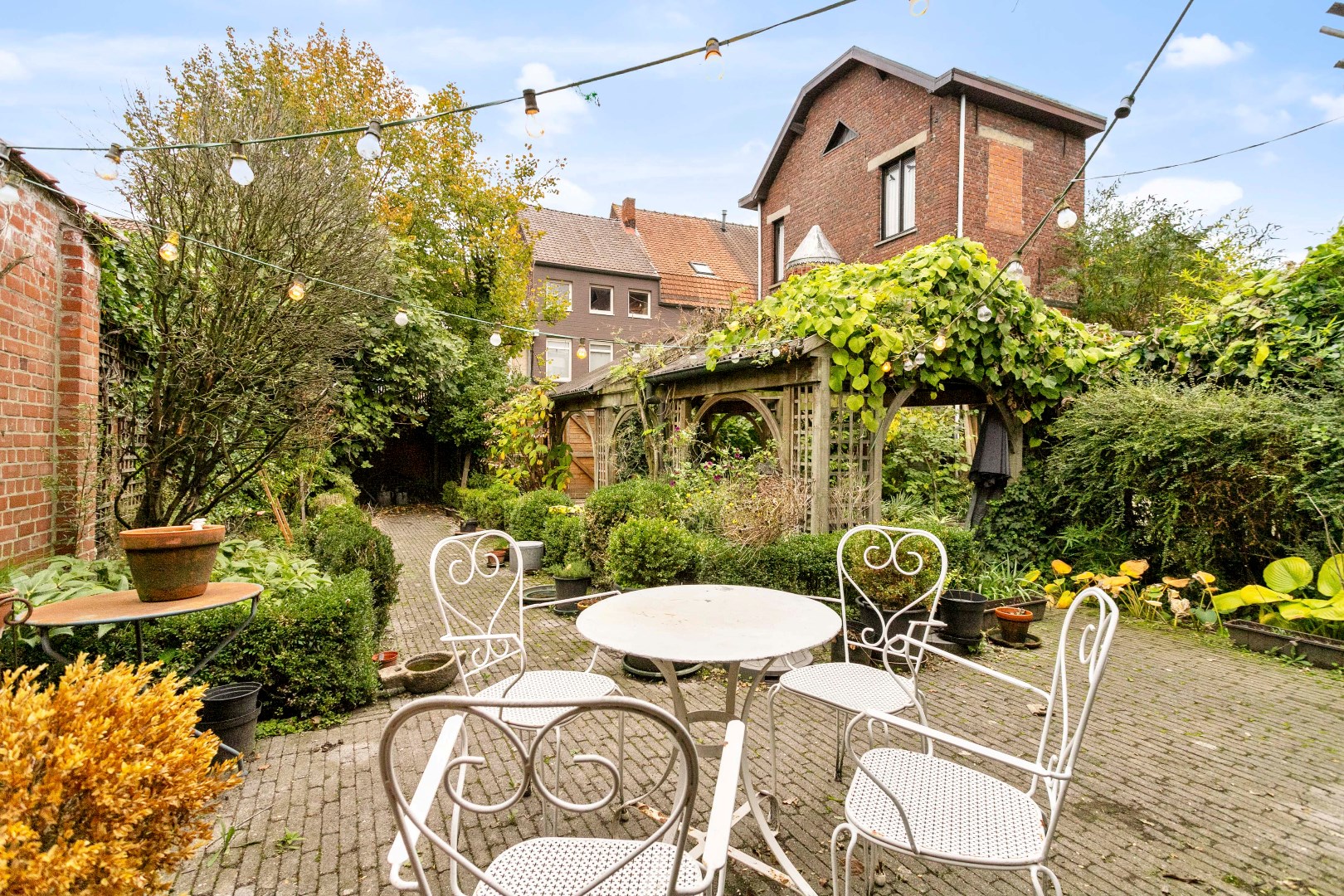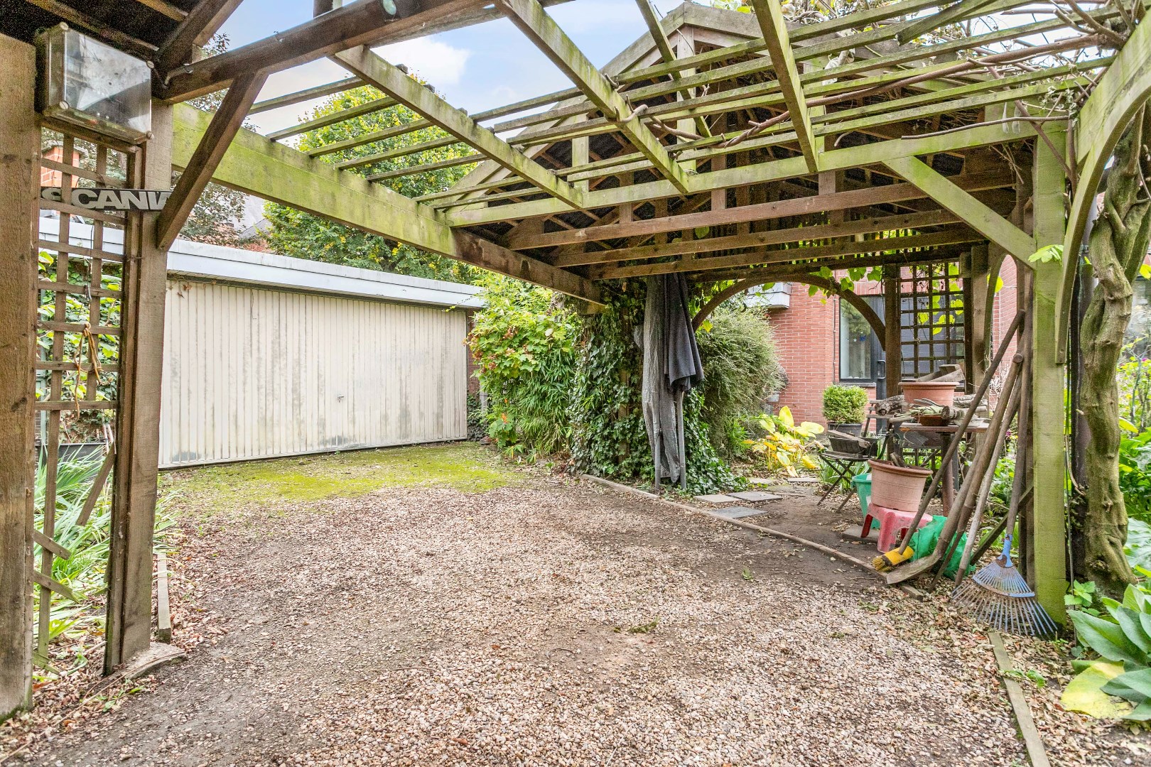 De stadstuin is gezellig ingericht en beschikt ook nog over een carport. Hier kunnen dus ook nog wagens geparkeerd worden. Van goudwaarde is de uitgang achteraan. Hierlangs kan u via Kerkstraat het eigendom binnenrijden!