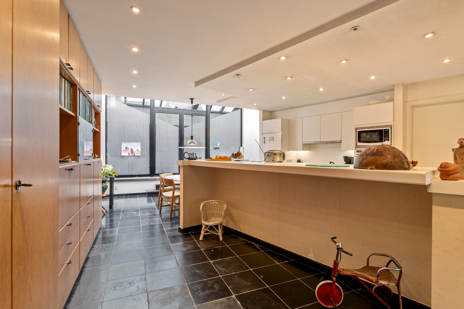 Geschikt als handelswoning, kantoor, project, … én met achteruitgang ….