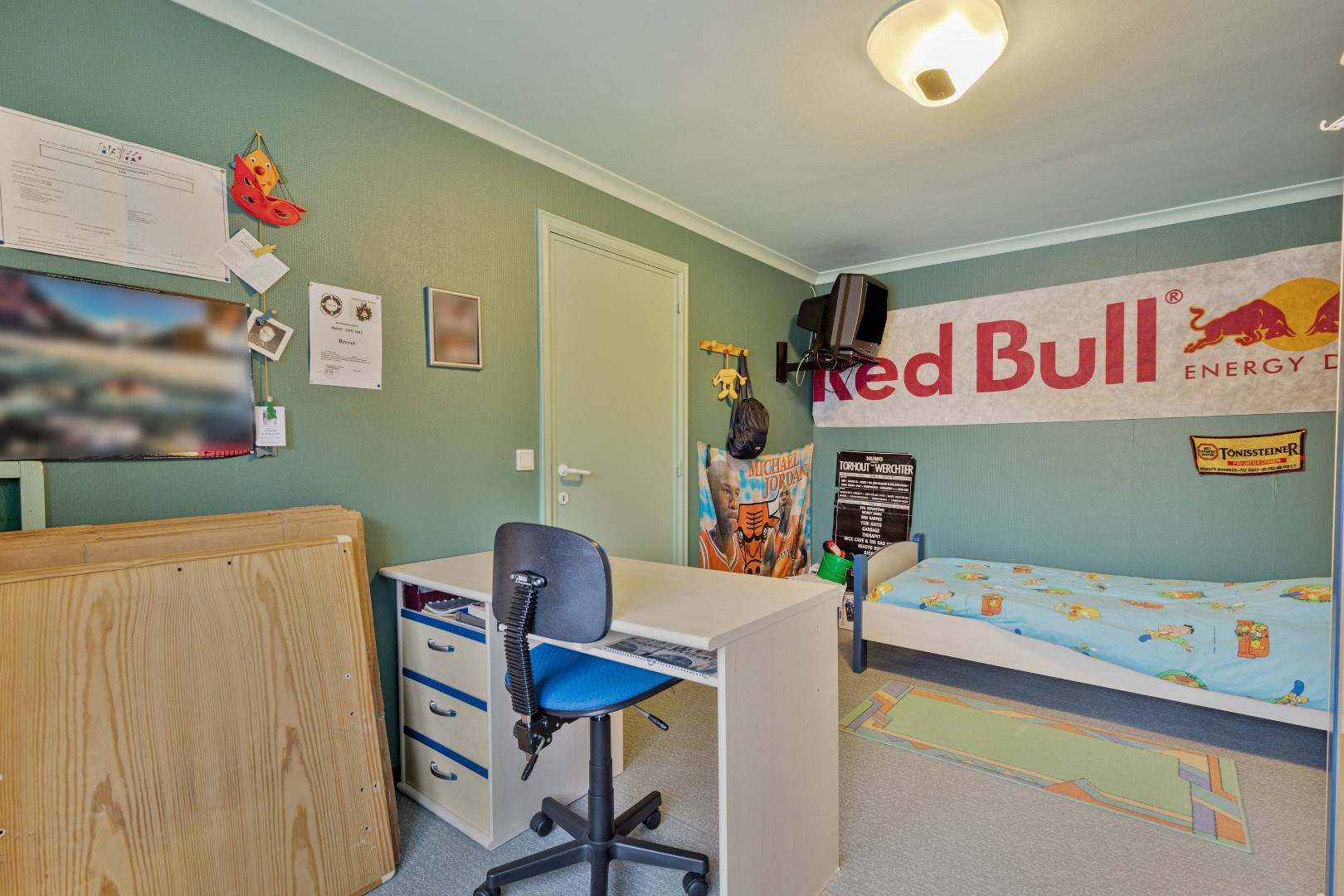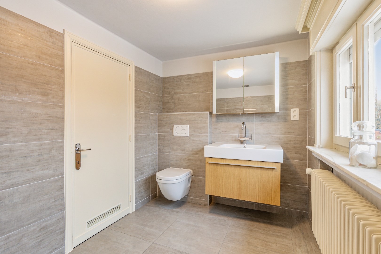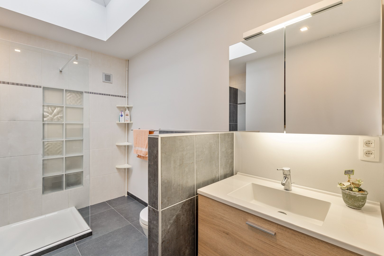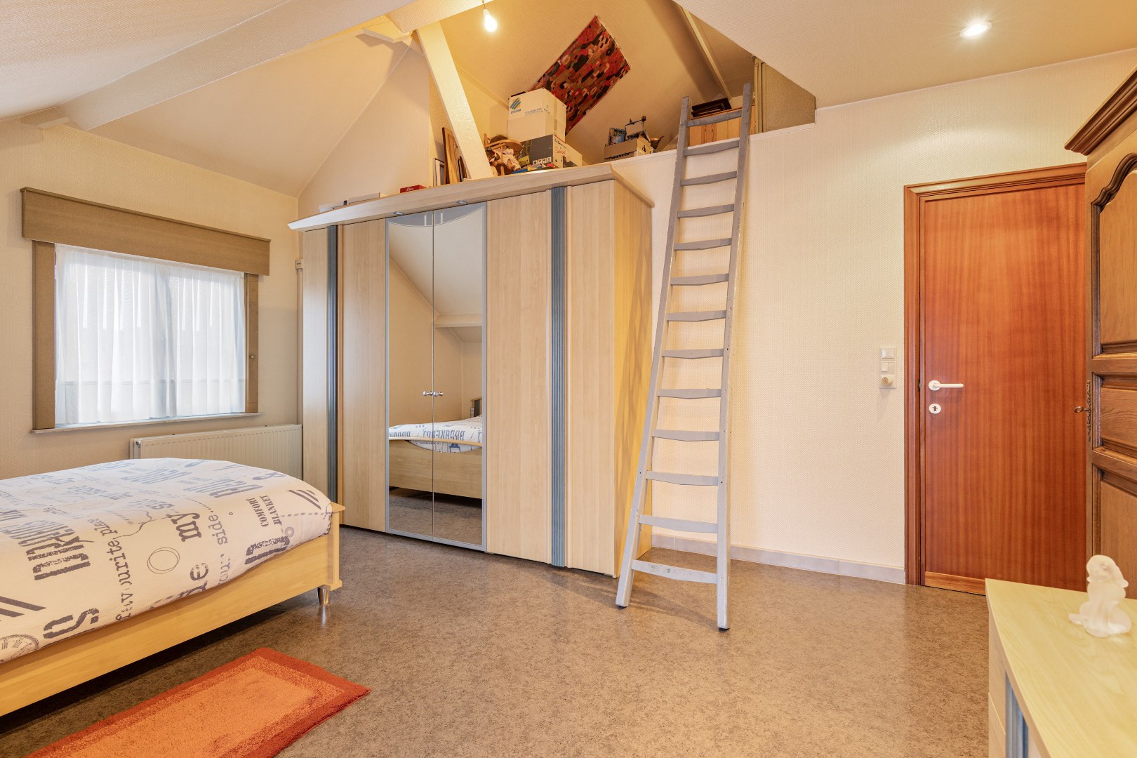 Op de bovenverdieping zijn er drie ruime slaapkamers én een tweede badkamer met ligbad, lavabo en toilet. Vanuit de master bedroom kunnen we via een mezzanine naar een zolderberging.