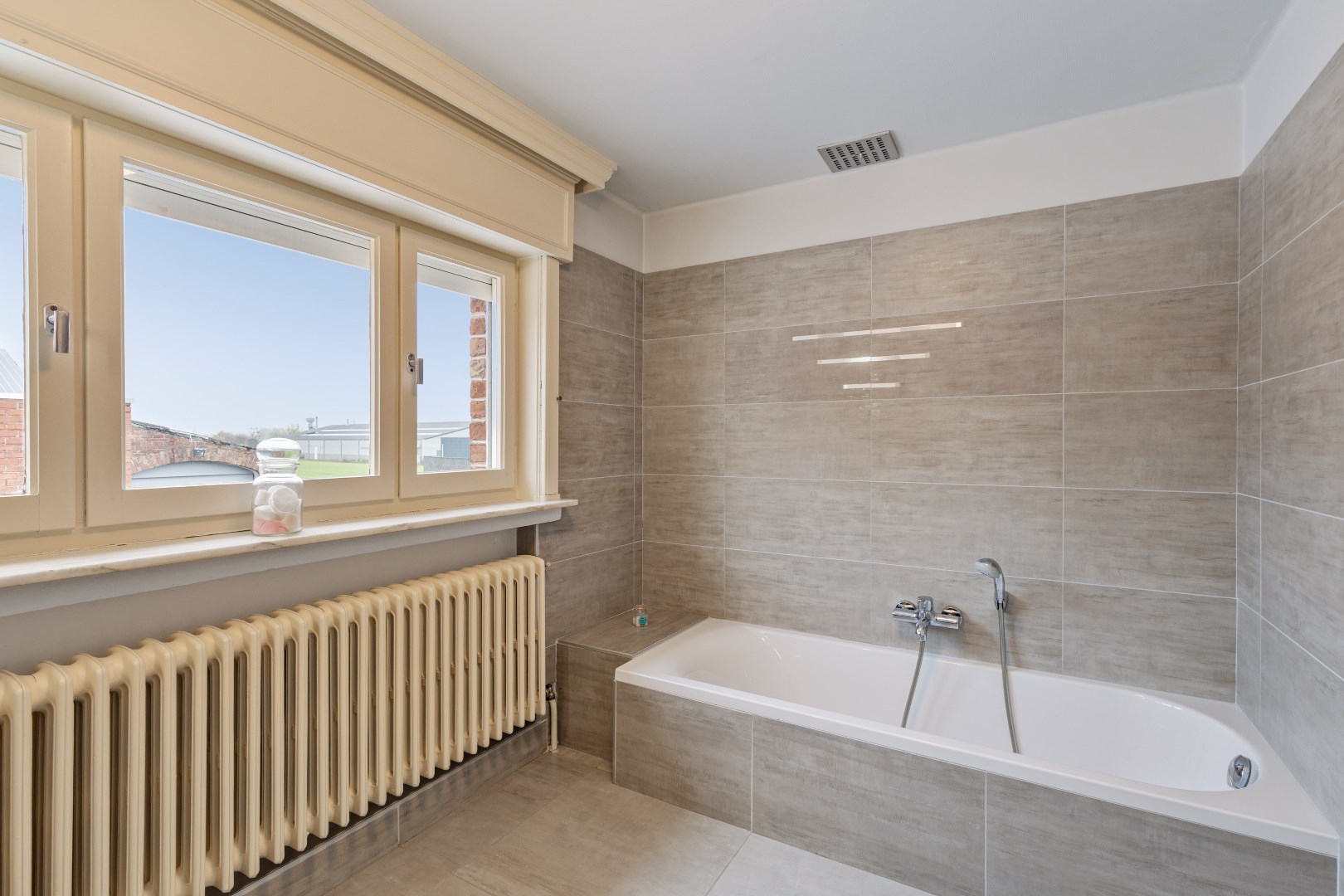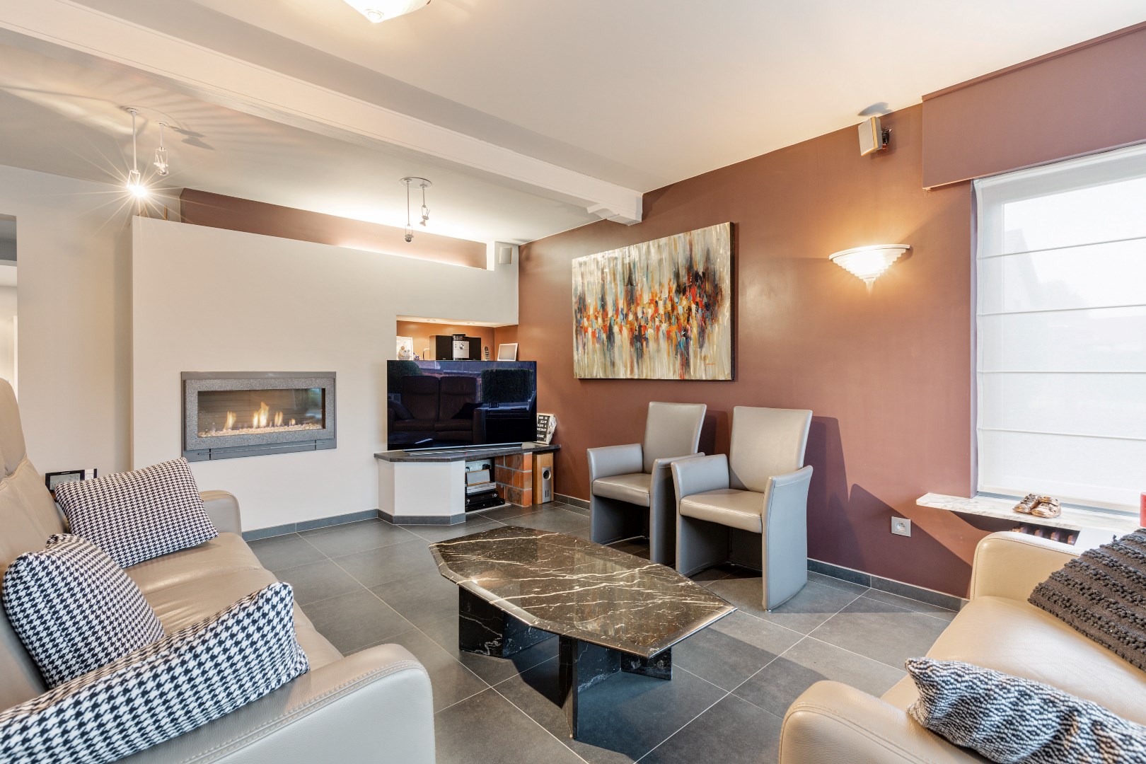 Bij aankomst valt ons meteen op dat dit een heel kloeke eigendom is. We kunnen de wagens parkeren op de lange oprit. De woning werd 12 jaar geleden werd gerenoveerd én uitgebreid! De volledige benedenverdieping onderging toen een metamorfose: ramen, elektriciteit, keuken, deels domotica, …. De leefkeuken en eetkamer werden zelfs uitgebreid.