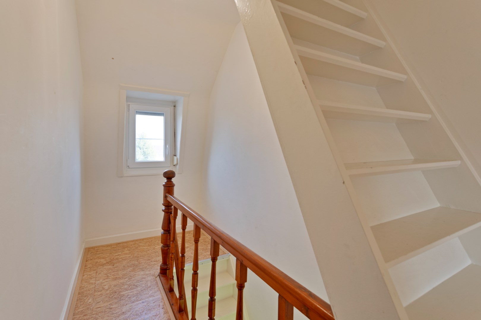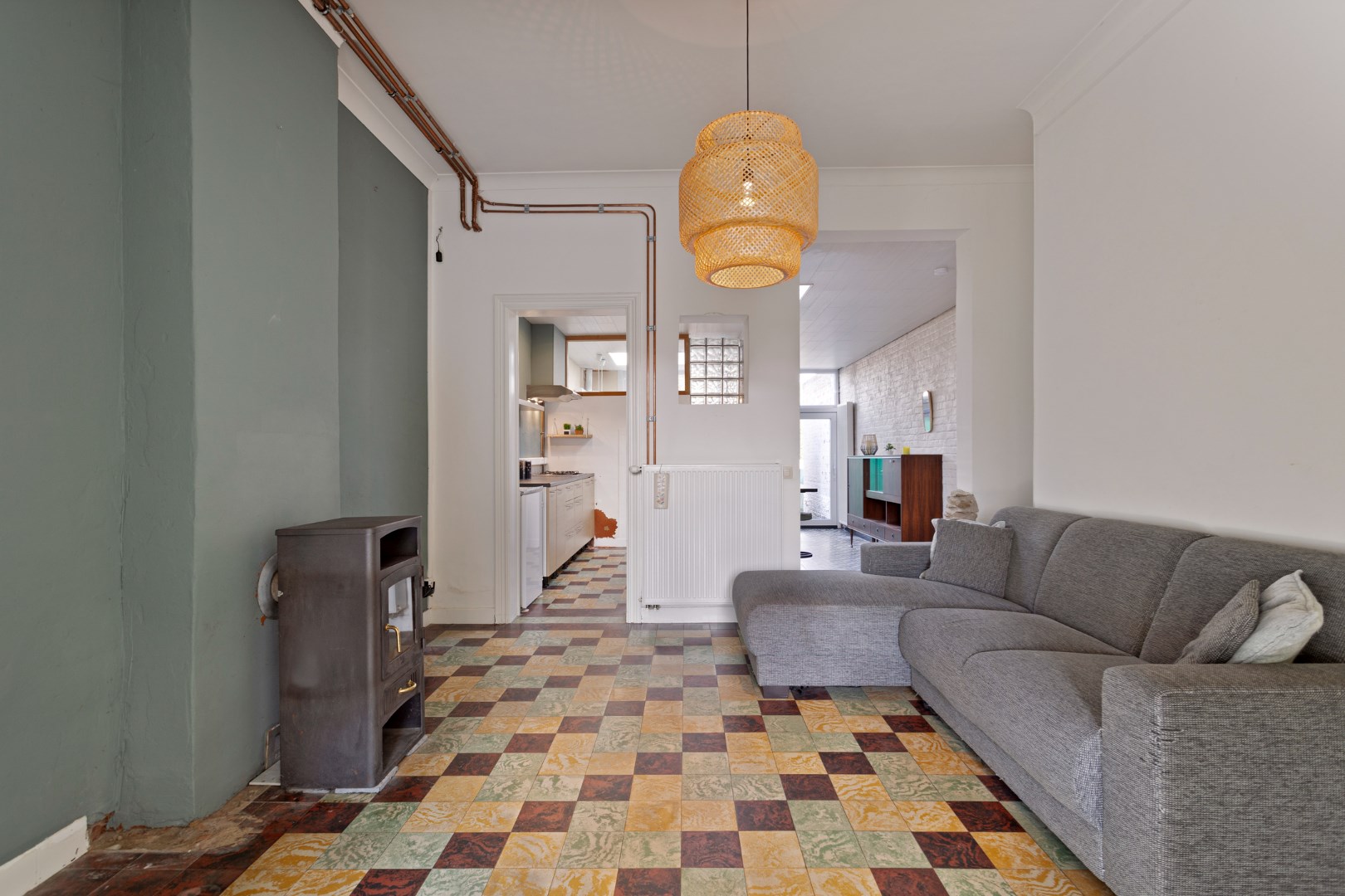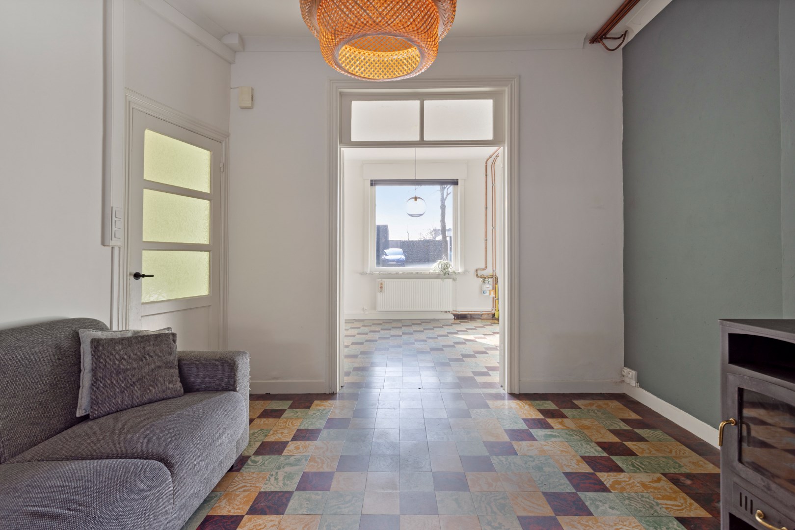 Via de inkomhal komen we in de voorplek of middenplek. De originele vloer in cementtegels en de oorspronkelijke deuren zorgen voor extra uitstraling. De knetterende houtkachel in de zitruimte draagt bij tot de gezelligheid. Ook hier is extra aandacht besteed aan de aparte afwerking. De aanpalende keuken herbergt wederom veel authentieke elementen. De muurtegeltjes en de mooie pompsteen vertellen geschiedenis. De keuken is uitgebouwd, beschikt over een schuifraam achteraan en is heel lichtrijk. De achtergelegen badkamer heeft een lavabo, douche en toilet. Er is hier ook plaats voor een wasmachine en droogkast. Op de stevige bovenverdieping vinden we 2 ruime kamers terug. Een vaste trap breng ons naar de handige en nette bergzolder. Achter de woning is er een ruime berging met daarachter een diepe tuin waar het aangenaam vertoeven is. Hier kan u rustig baden in het zonnetje.