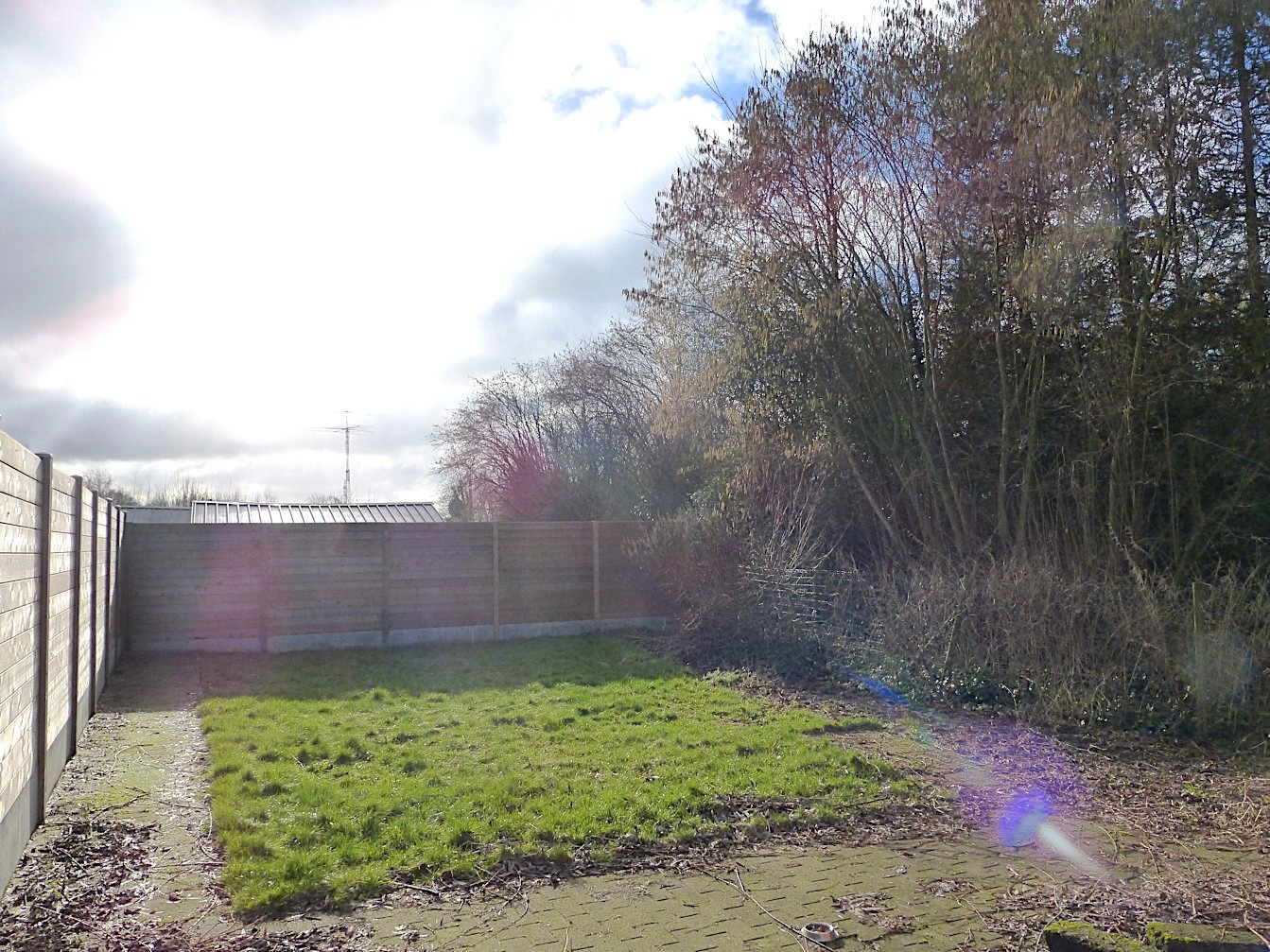 De tuin is omheind en heeft een ideale zuidoriëntatie! Via het pad naast de woning is de tuin toegankelijk vanop de straat.