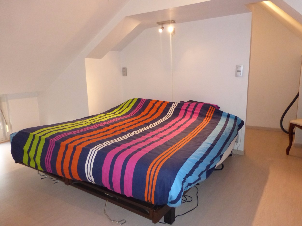 Op de verdieping vinden we een slaapkamer met dressing/babykamer.